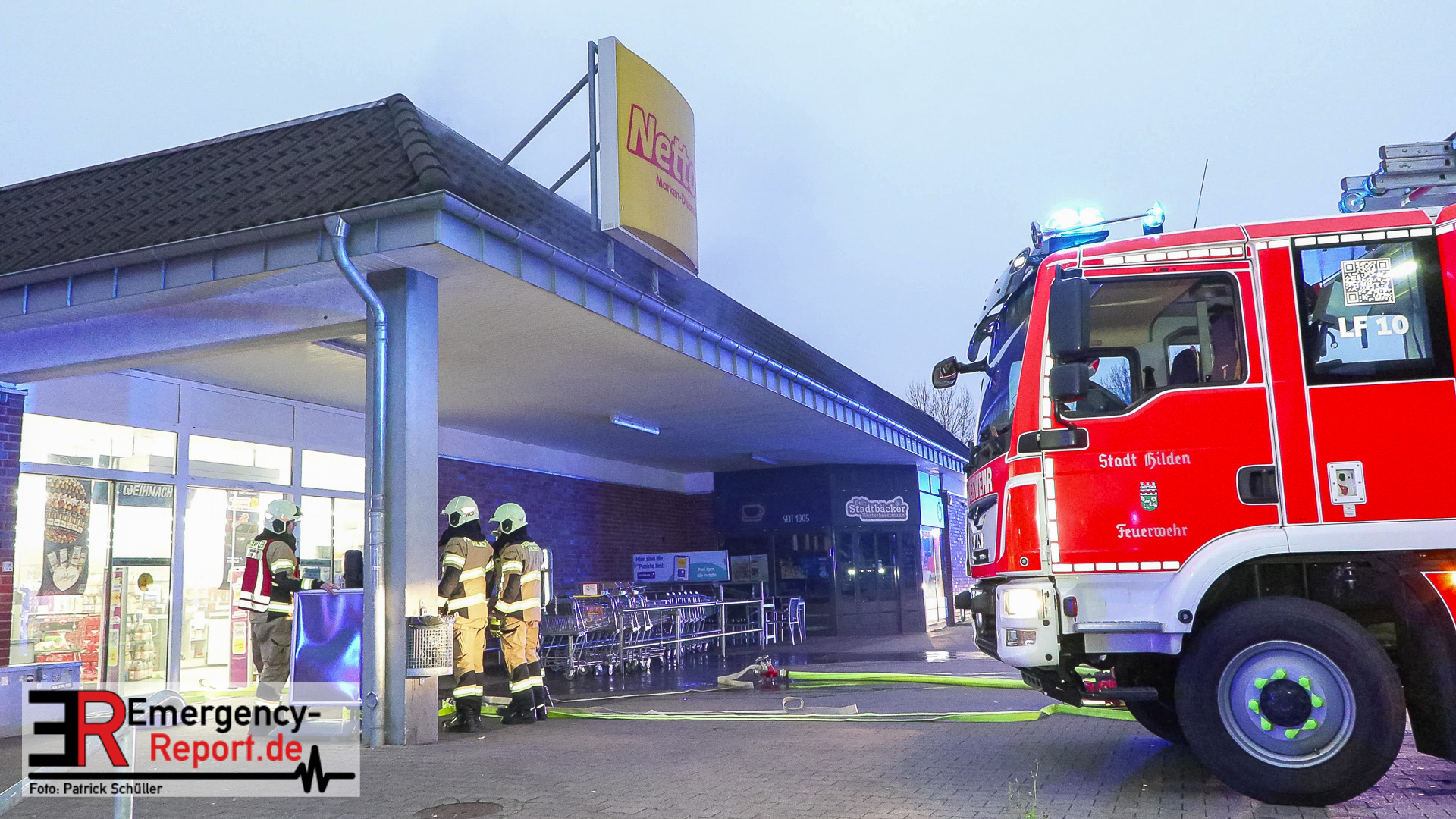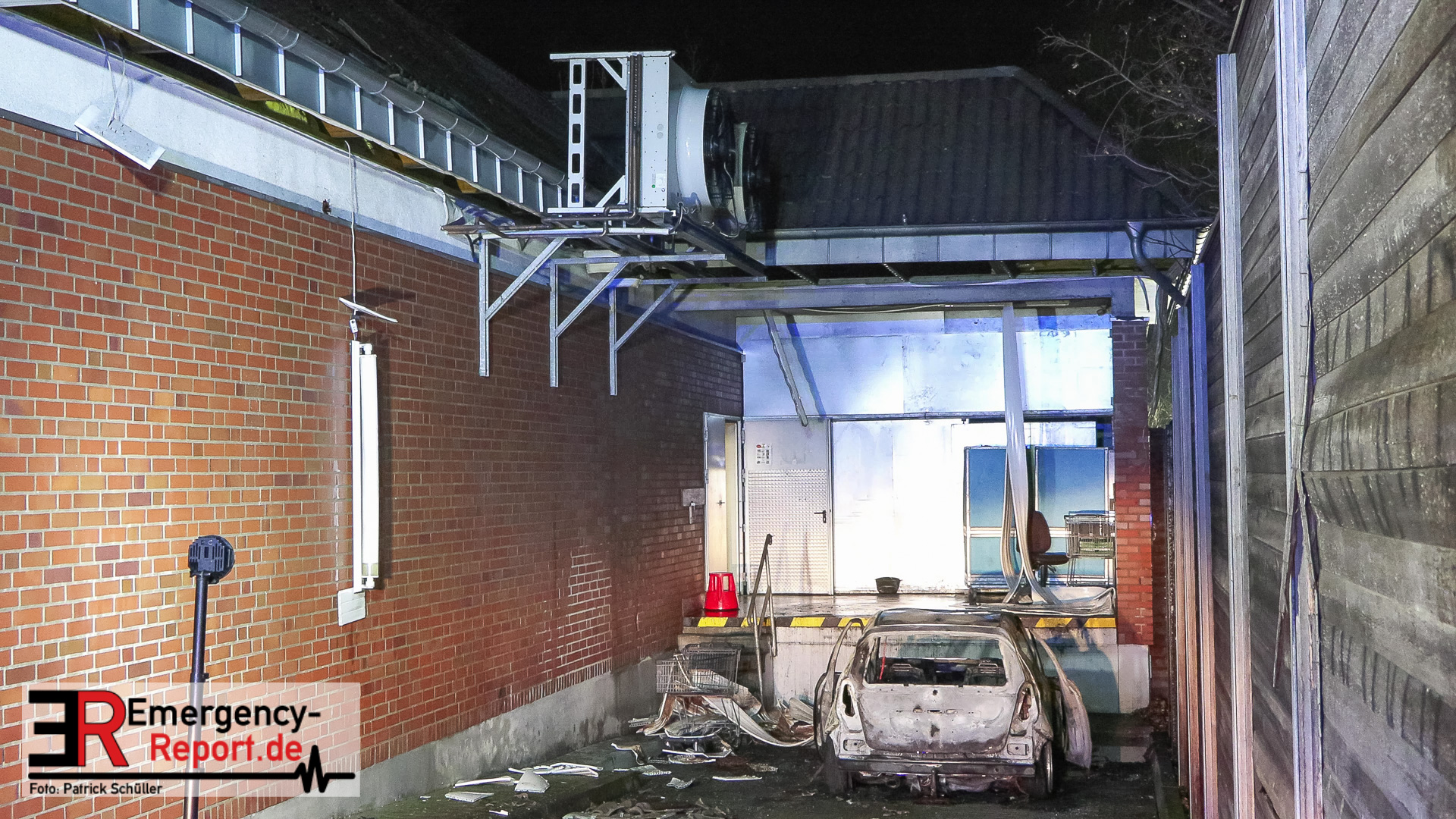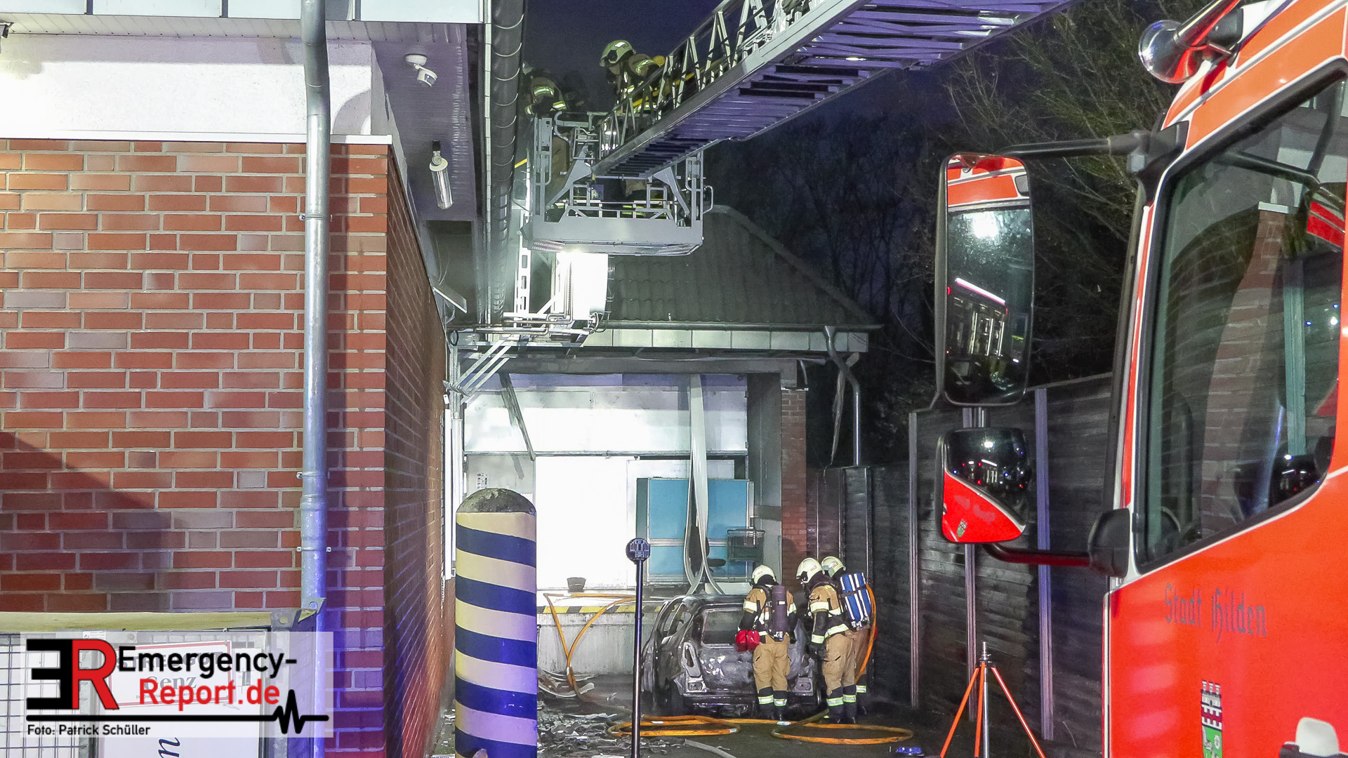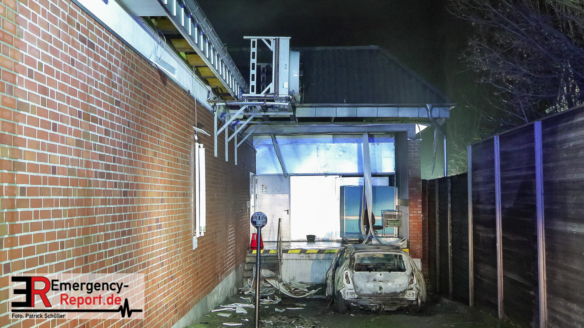 Hilden (ots) – Ein brennender Mercedes Benz in einer Zuliefereinfahrt eines Discounters in Hilden hat am Samstagnachmittag, 13. Dezember 2025, zu einem Großeinsatz der Polizei sowie der Feuerwehr geführt. Das Auto brannte vollständig aus. Das angrenzende Dach des Discounters wurde schwer beschädigt. Die Polizei ermittelt zum Brandgeschehen.