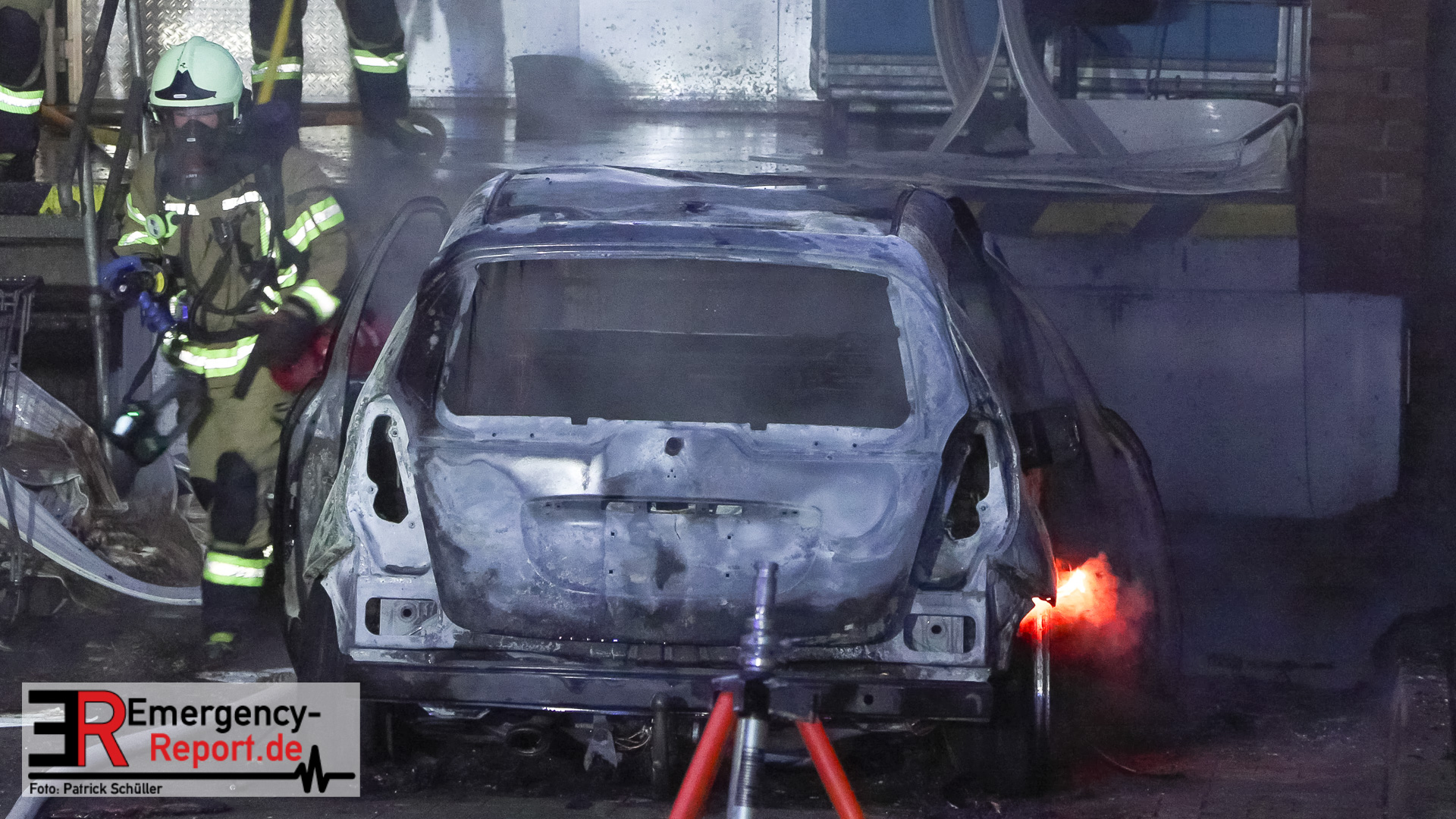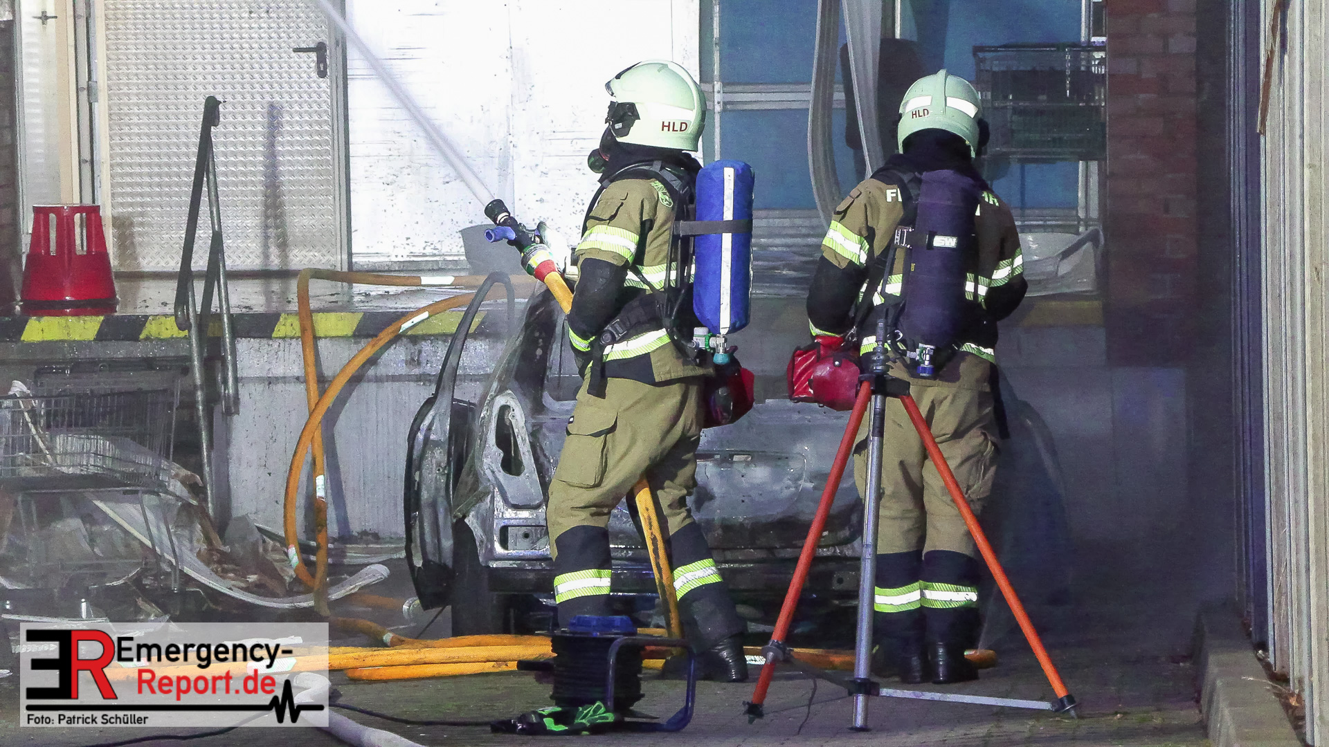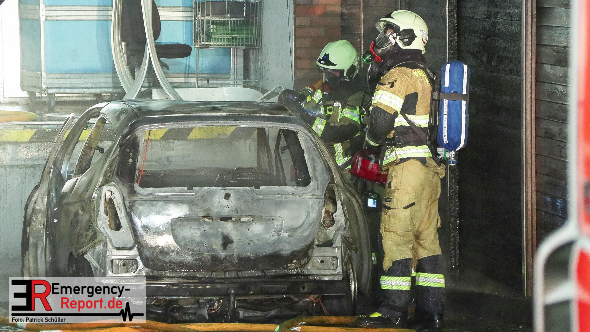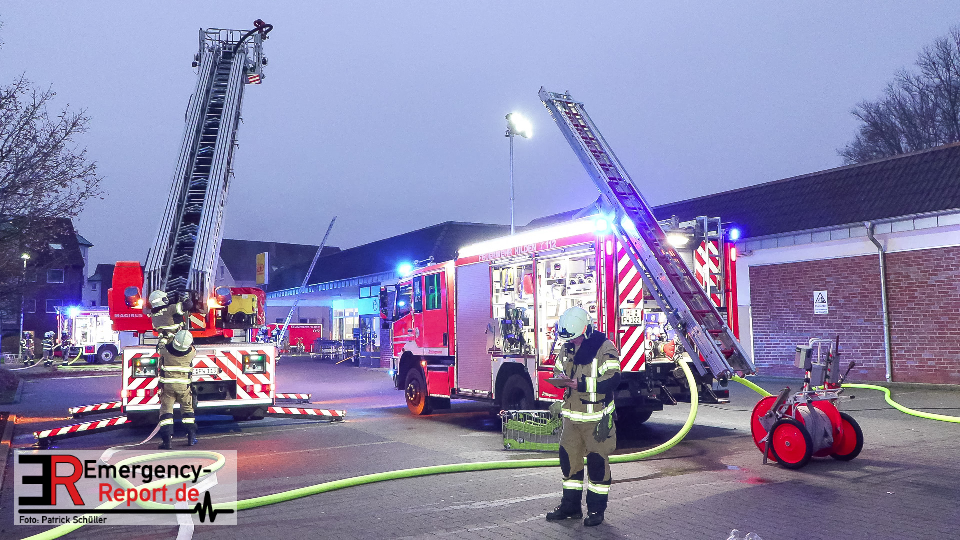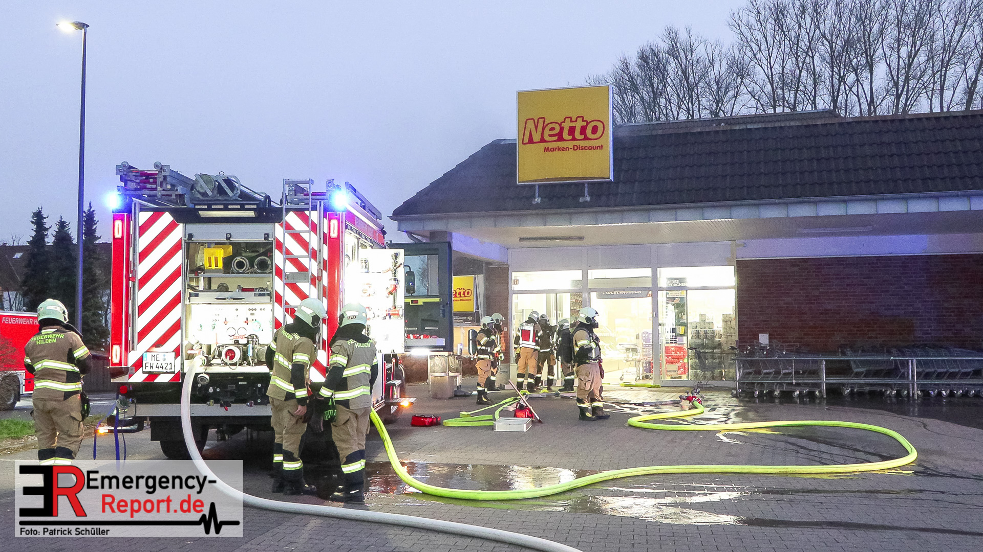 Hilden (ots) – Ein brennender Mercedes Benz in einer Zuliefereinfahrt eines Discounters in Hilden hat am Samstagnachmittag, 13. Dezember 2025, zu einem Großeinsatz der Polizei sowie der Feuerwehr geführt. Das Auto brannte vollständig aus. Das angrenzende Dach des Discounters wurde schwer beschädigt. Die Polizei ermittelt zum Brandgeschehen.