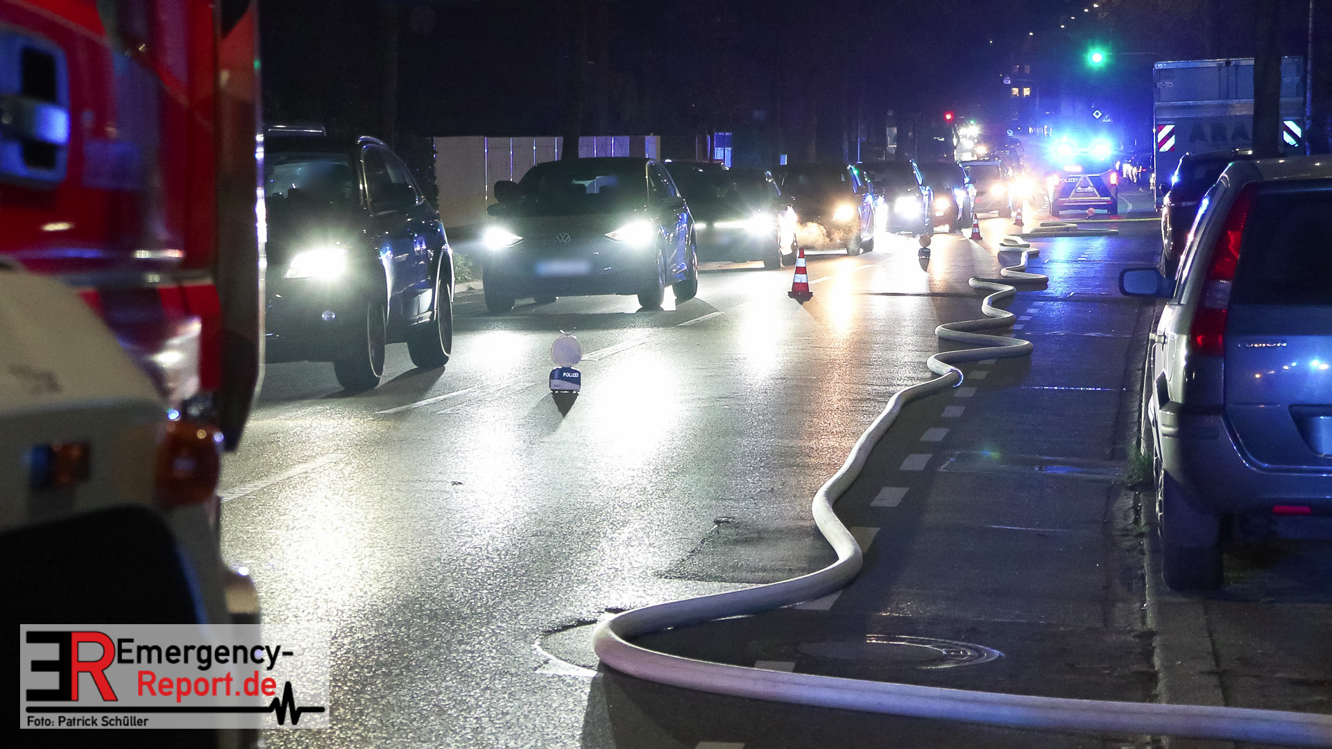 Für die Dauer der Löscharbeiten wurde sowohl der Lehmkuhler Weg als auch die angrenzende Richrather Straße im Bereich der Einsatzörtlichkeit gesperrt.