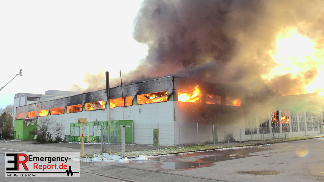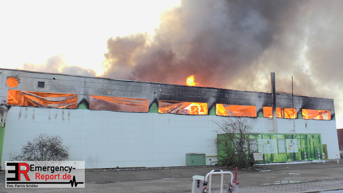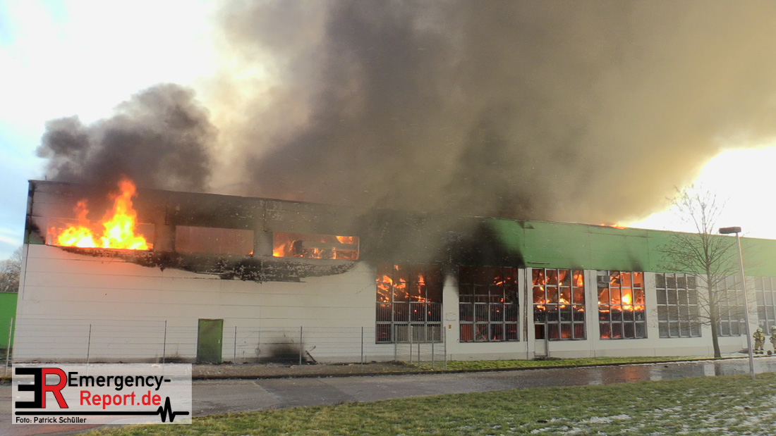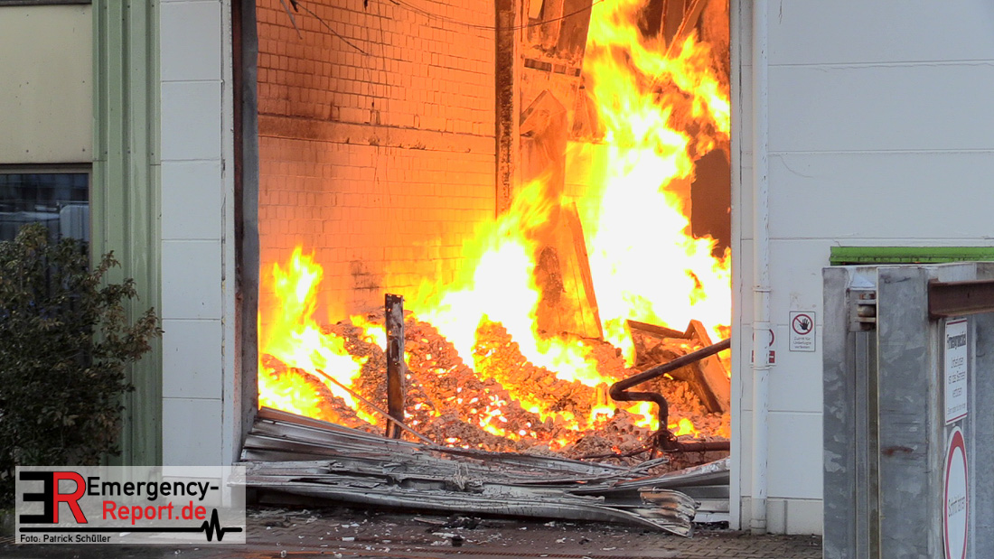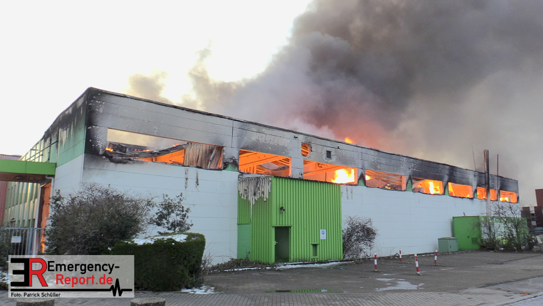 Die Lagerhalle mit den Abmaßen 40 m x 50 m stand in Vollbrand, sodass umgehend überörtliche Unterstützung angefordert wurde. Aufgrund der starken Rauchentwicklung wurde die Bevölkerung über die Warnapp Nina gewarnt. Die Feuerwehr Hilden wird aktuell überörtlich durch Einsatzkräfte der Feuerwehr Erkrath (Löschzug-überörtlich), Feuerwehr Langenfeld (Löschgruppe-überörtlich) sowie durch eine Löschgruppe der Feuerwehr Haan, die den Grundschutz für das Stadtgebiet Hilden auf der Feuer- und Rettungswache Hilden sicherstellt, unterstützt. Des Weiteren befindet sich der Messzug des Kreises Mettmann, der sich aus den Feuerwehren Ratingen und Velbert zusammensetzt im Einsatz.Der Brand ist unter Kontrolle. Aktuell laufen noch aufwändige Nachlöscharbeiten, die sich voraussichtlich noch bis in den frühen Morgen hinziehen werden. Im Einsatz befinden sich zurzeit über 120 Einsatzkräfte der Feuerwehren sowie das THW, das für die Nacht zum Ausleuchten der Einsatzstelle alarmiert wurde. Die Verpflegung wird durch das DRK sichergestellt.