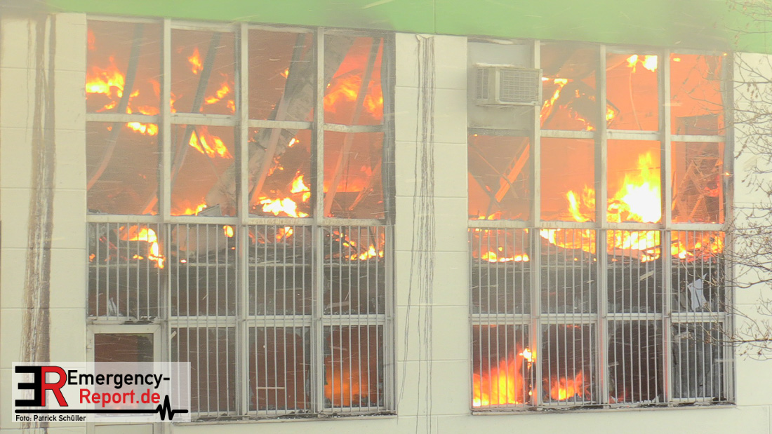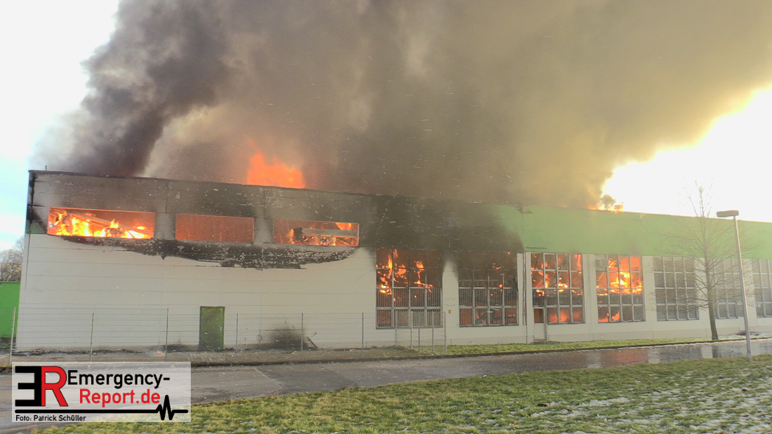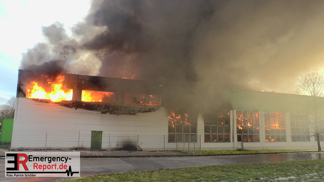 Gegen 16:30 Uhr meldete ein Zeuge einen Brandausbruch in einer Produktions- und Lagerhalle einer Papierfabrik an der Heinrich-Hertz-Straße in Hilden. Bei Eintreffen der von ihm alarmierten Feuerwehr stand die in einer Sackgasse eines Industriegebietes gelegene, circa 40mx50m große Halle bereits in Vollbrand. Trotz eines hohen Kräfteansatzes der Einsatzkräfte der Feuerwehr Hilden sowie überörtlicher Feuerwehrwachen konnte nicht verhindert werden, dass die Halle vollständig ausbrannte.