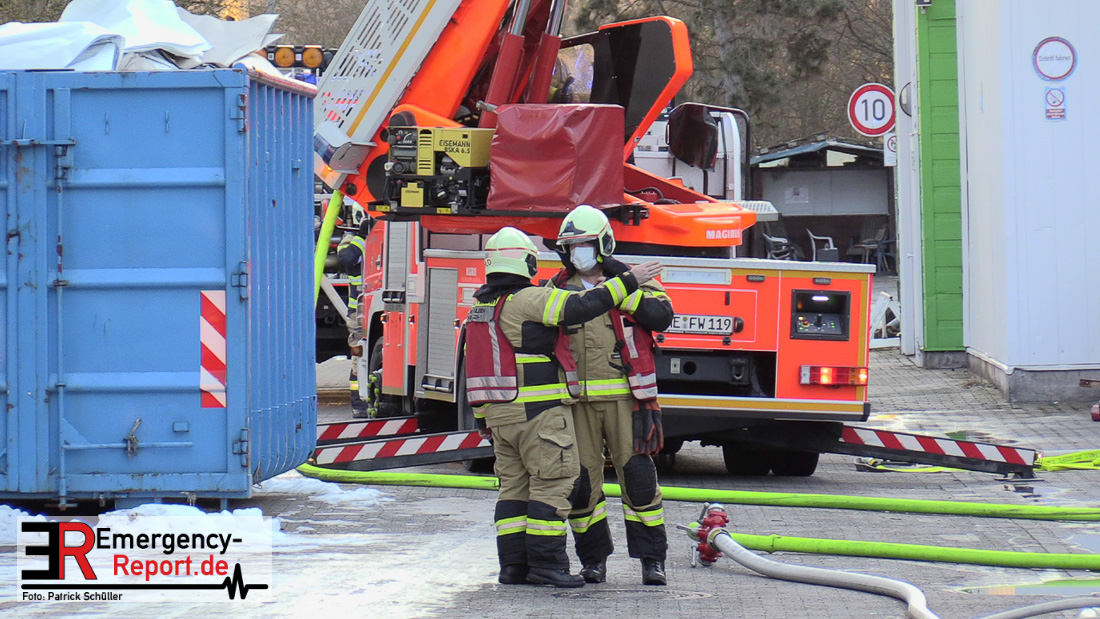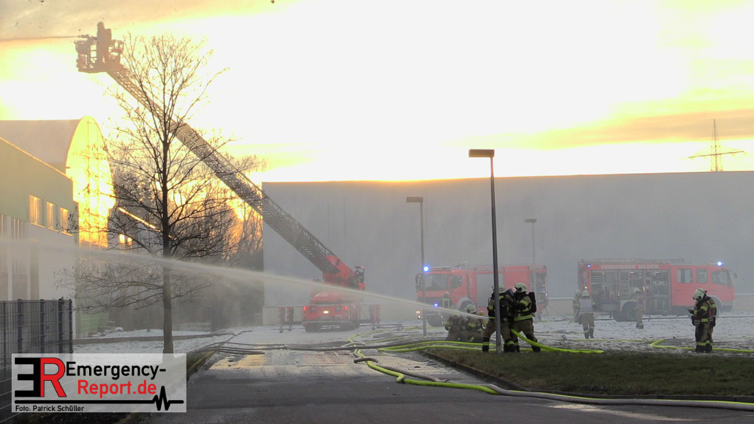 Der Großbrand im Gewerbebetrieb an der Heinrich-Hertz-Straße ist unter Kontrolle. Die Hildener Feuerwehr ist noch mit 22 größtenteils ehrenamtlichen Kräften vor Ort und mit den Nachlöscharbeiten beschäftigt. Im Laufe des heutigen Tages kommt ein Bagger zum Einsatz, um das Brandgut zu räumen. Die Kriminalpolizei hat die Ermittlung der Brandursache aufgenommen. Seit dem späten Nachmittag des gestrigen Tages ist die Feuerwehr im Einsatz. Unterstützung erhielt die Hildener Feuerwehr durch die Kreisleitstelle Mettmann und Kräfte aus Erkrath, Haan, Monheim, Langenfeld und Ratingen. Insgesamt waren ca. 120 Feuerwehrleute zeitgleich vor Ort. Da die gesamte Hildener Wehr im Einsatz war stellte die Haaner Feuerwehr für Hilden den Grundschutz sicher und war hier ebenfalls in weiteren Einsätzen tätig. In der Nacht hat die Monheimer mit der Ratinger Feuerwehr den Einsatz für ca. zweieinhalb Stunden komplett übernommen, damit die Feuerwehrleute aus Hilden eine Verschnaufpause hatten. Dies war nicht nur wegen der langen Einsatzdauer notwendig, sondern auch den eisigen Temperaturen geschuldet.