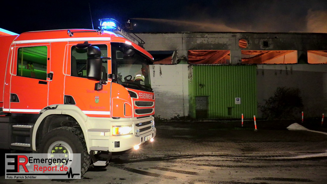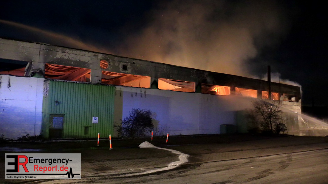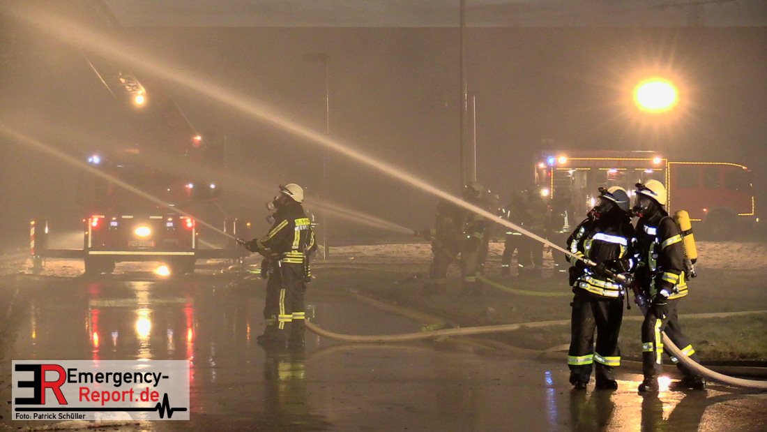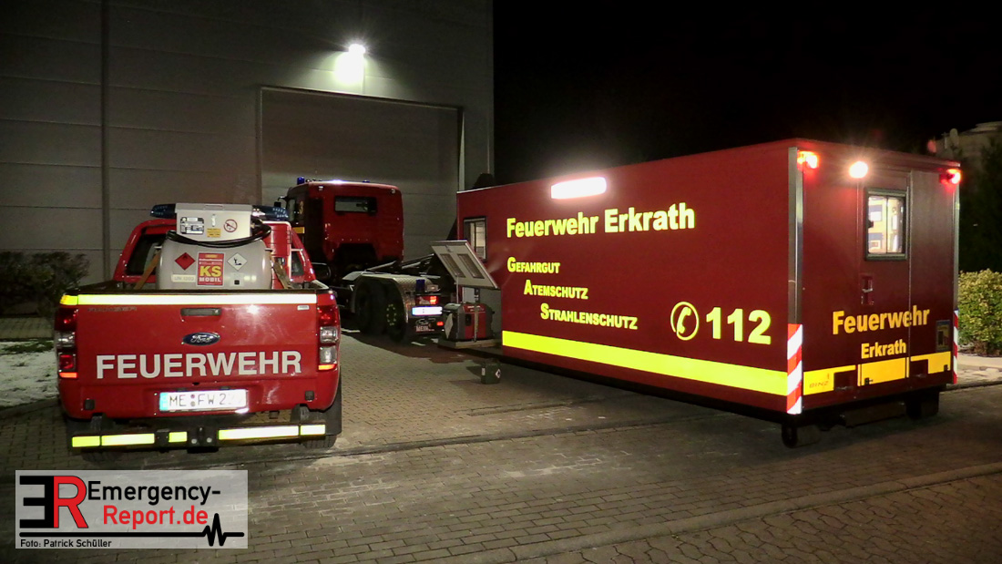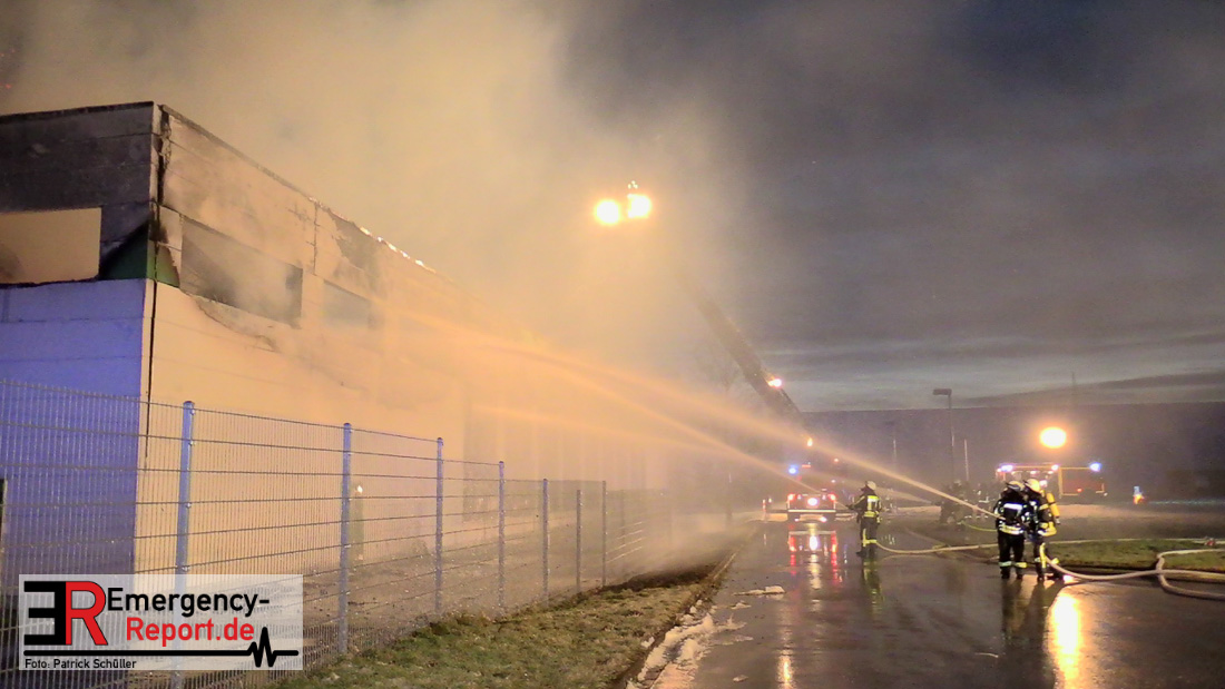 Die Lagerhalle mit den Abmaßen 40 m x 50 m stand in Vollbrand, sodass umgehend überörtliche Unterstützung angefordert wurde. Aufgrund der starken Rauchentwicklung wurde die Bevölkerung über die Warnapp Nina gewarnt. Die Feuerwehr Hilden wird aktuell überörtlich durch Einsatzkräfte der Feuerwehr Erkrath (Löschzug-überörtlich), Feuerwehr Langenfeld (Löschgruppe-überörtlich) sowie durch eine Löschgruppe der Feuerwehr Haan, die den Grundschutz für das Stadtgebiet Hilden auf der Feuer- und Rettungswache Hilden sicherstellt, unterstützt. Des Weiteren befindet sich der Messzug des Kreises Mettmann, der sich aus den Feuerwehren Ratingen und Velbert zusammensetzt im Einsatz.Der Brand ist unter Kontrolle. Aktuell laufen noch aufwändige Nachlöscharbeiten, die sich voraussichtlich noch bis in den frühen Morgen hinziehen werden. Im Einsatz befinden sich zurzeit über 120 Einsatzkräfte der Feuerwehren sowie das THW, das für die Nacht zum Ausleuchten der Einsatzstelle alarmiert wurde. Die Verpflegung wird durch das DRK sichergestellt.