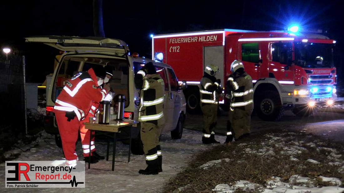 Der Großbrand im Gewerbebetrieb an der Heinrich-Hertz-Straße ist unter Kontrolle. Die Hildener Feuerwehr ist noch mit 22 größtenteils ehrenamtlichen Kräften vor Ort und mit den Nachlöscharbeiten beschäftigt. Im Laufe des heutigen Tages kommt ein Bagger zum Einsatz, um das Brandgut zu räumen. Die Kriminalpolizei hat die Ermittlung der Brandursache aufgenommen. Seit dem späten Nachmittag des gestrigen Tages ist die Feuerwehr im Einsatz. Unterstützung erhielt die Hildener Feuerwehr durch die Kreisleitstelle Mettmann und Kräfte aus Erkrath, Haan, Monheim, Langenfeld und Ratingen. Insgesamt waren ca. 120 Feuerwehrleute zeitgleich vor Ort. Da die gesamte Hildener Wehr im Einsatz war stellte die Haaner Feuerwehr für Hilden den Grundschutz sicher und war hier ebenfalls in weiteren Einsätzen tätig. In der Nacht hat die Monheimer mit der Ratinger Feuerwehr den Einsatz für ca. zweieinhalb Stunden komplett übernommen, damit die Feuerwehrleute aus Hilden eine Verschnaufpause hatten. Dies war nicht nur wegen der langen Einsatzdauer notwendig, sondern auch den eisigen Temperaturen geschuldet.