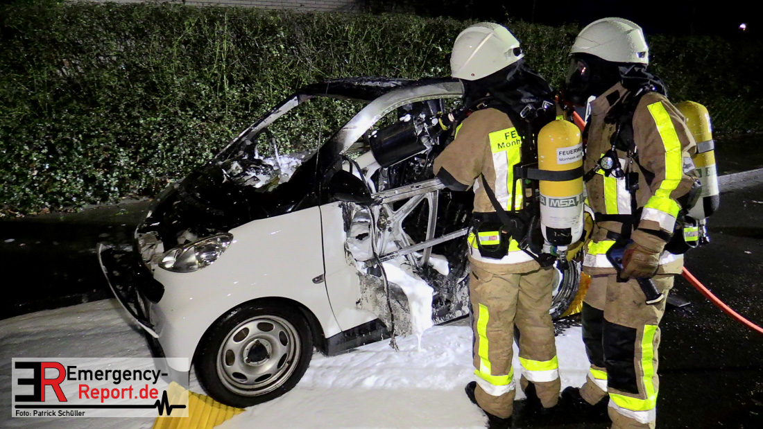 Am Samstagmorgen (14. Dezember 2019), gegen 04:50 Uhr, wurden Feuerwehr und Polizei in Monheim am Rhein zu einem Fahrzeugbrand gerufen. Ein Zeuge bemerkte, dass ein weißer Pkw Smart in Flammen stand und alarmierte sofort die Feuerwehr.