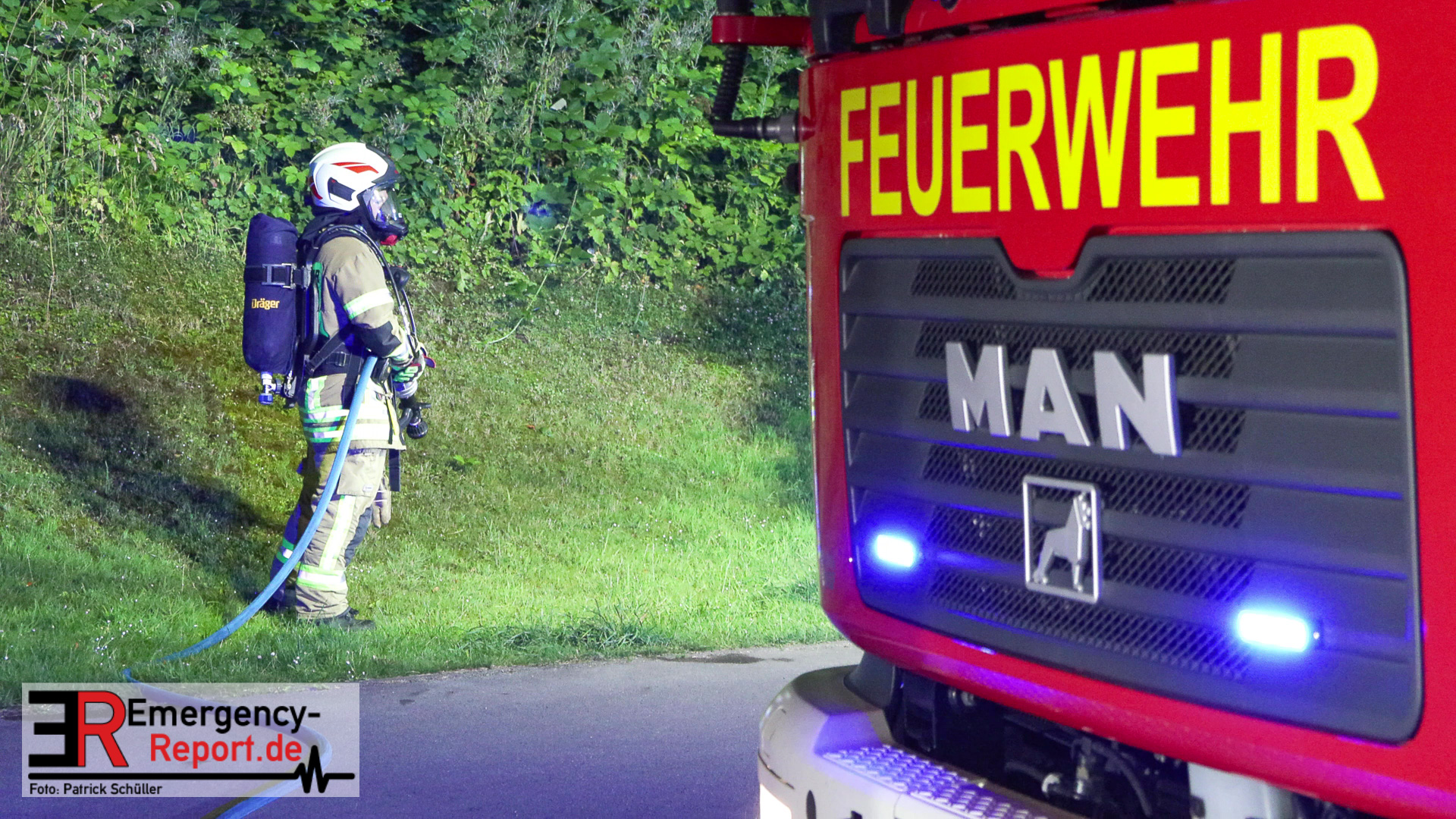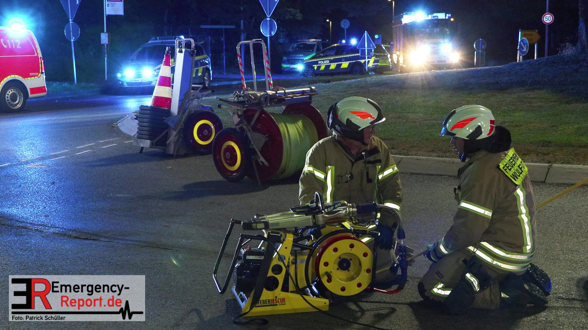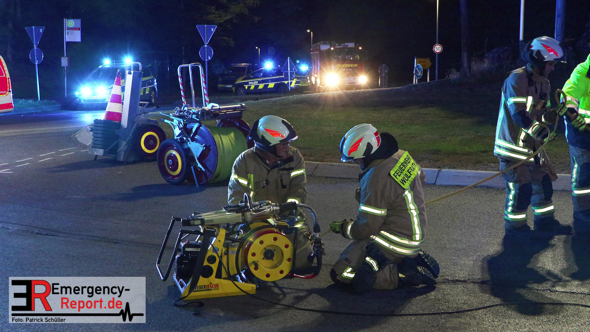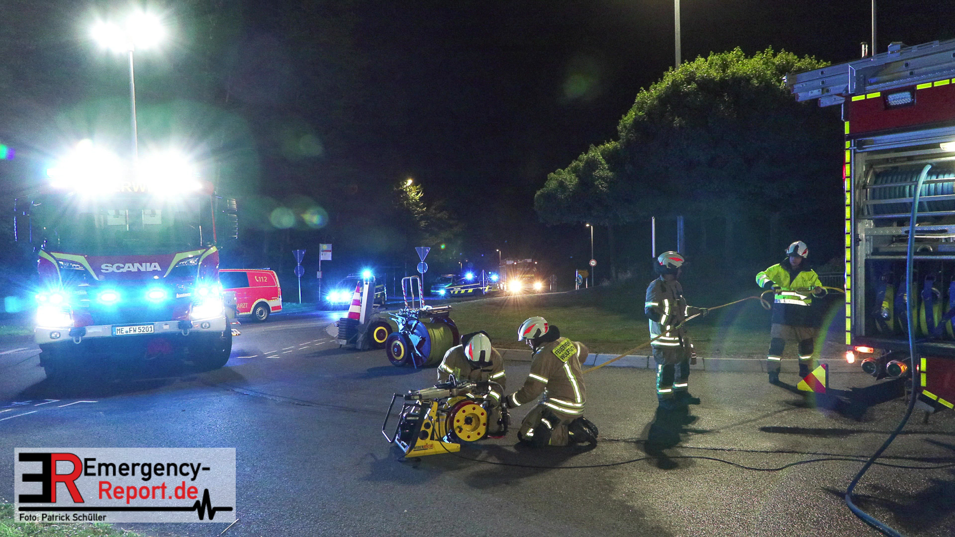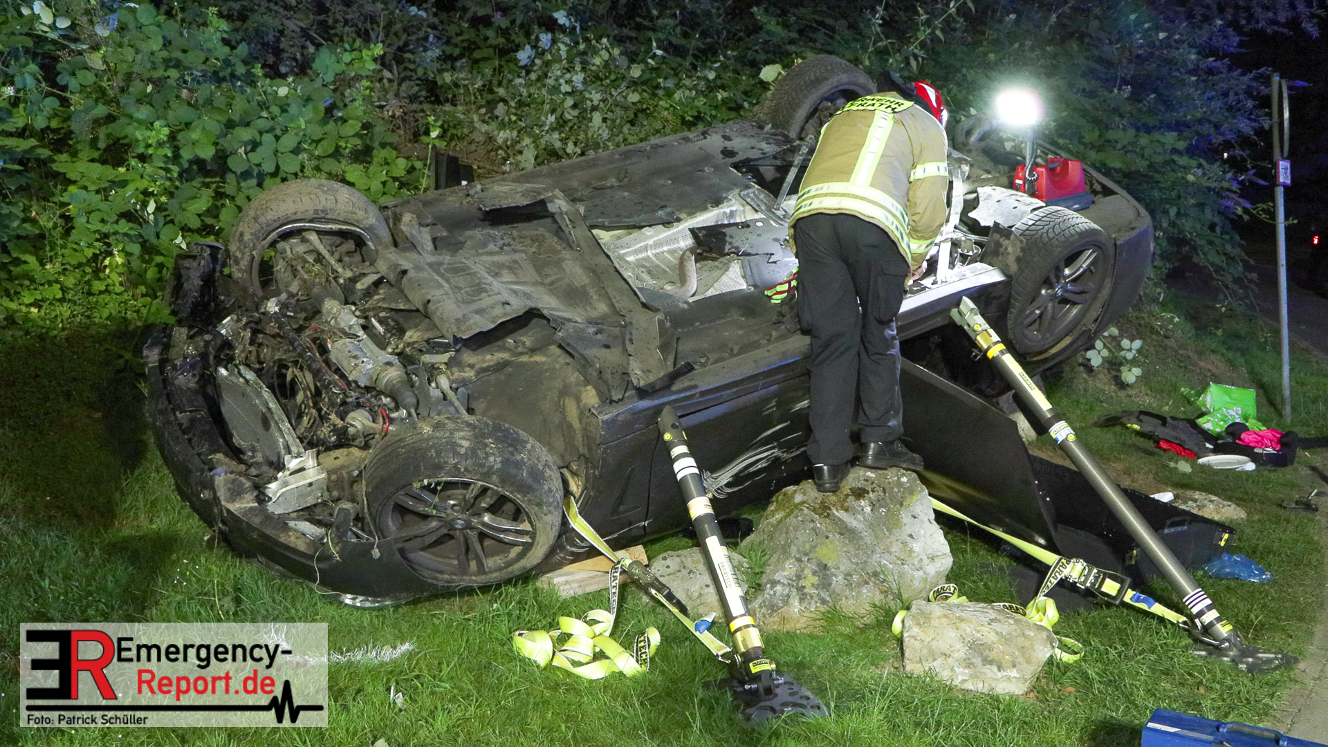 Am nächtlichen Freitagmorgen des 15.07.2022, gegen 03.00 Uhr, befuhr ein 40-jähriger Mann aus Wülfrath, mit seinem dunkelbraunen PKW BMW 420d, die innerörtliche Wilhelmstraße in Wülfrath, aus Richtung Innenstadt kommend, in Fahrtrichtung Velbert / Wuppertal. Bei der Einfahrt in den Kreisverkehr Hammerstein verlor der BMW-Fahrer nach eigenen Angaben die Kontrolle über sein Fahrzeug. Der BMW prallte auf den Bordstein der Mittelinsel und schleuderte über die begrünte Mittelfläche. Dann kam das Fahrzeug kurz zurück auf die Fahrbahn des Kreisverkehrs, bevor er in Höhe der Ausfahrt zum Wanderparkplatz über den dortigen Grünstreifen und Gehweg in die Böschung schleuderte und sich dabei überschlug. Auf dem Dach liegend kam der BMW dort zum Stillstand. In diesem Augenblick setzte ein automatisches Info-System des BMWs sofort einen Alarm an eine Notrufzentrale ab, welche die örtlichen Rettungskräfte alarmierte.