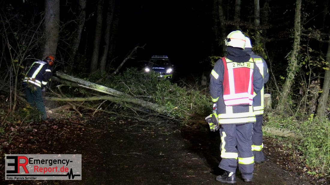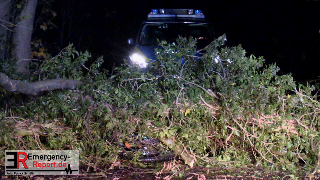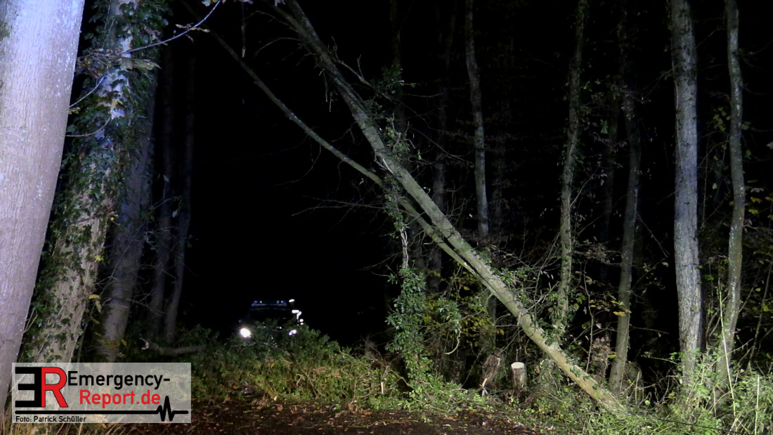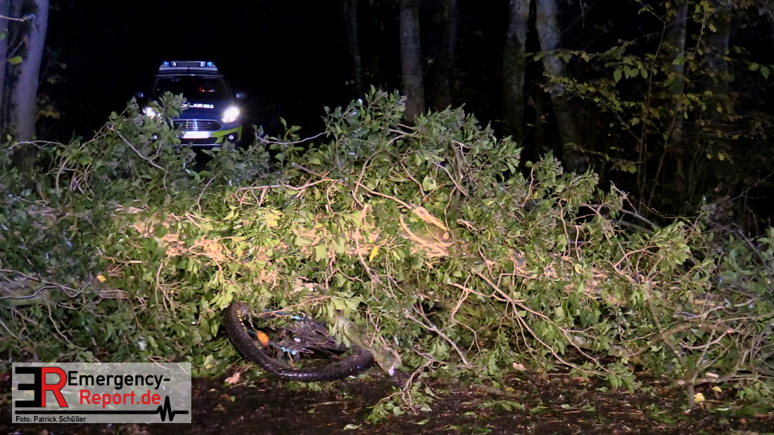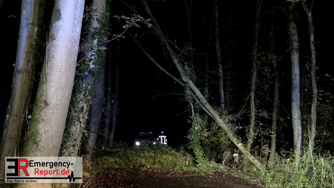 Die Feuerwehr beseitigte anschließend den umgestürzten Baum von der Fahrbahn und fällte noch einen weiteren Baum, der ebenfalls umzustürzen drohte.