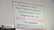 In der Nacht zum 18. Februar 2017 löste gegen vier Uhr die automatische und zur Feuerwehr durchgeschaltete Brandmeldeanlage des Wohn-und Tiefgaragenkomplexes an der Schöneberger Straße aus. Noch auf der Anfahrt wurde die Meldung durch Anrufer auf einen Kellerbrand konkretisiert. Beim Eintreffen der ersten Feuerwehrkräfte war der Treppenraum des Wohngebäudes Schöneberger Straße 1 stark verraucht. Unter Atemschutz drang ein Trupp in das Gebäude vor. Im Kellergeschoß brannte Unrat, der unter der Treppe abgestellt war. Der Brand hatte bereits auf die gesamte Unterverteilung übergegriffen und derart stark beschädigt, dass das Gebäude stromlos geschaltet werden musste. Wie lange die Bewohner ohne Strom auskommen müssen, ist derzeit noch völlig unklar. Die Stadt Monheim am Rhein hat den Bewohnern für das Wochenende die Unterbringung in einem nahe gelegenen Hotel angeboten. Die Feuerwehr war mit zehn Fahrzeugen und 40 Feuerwehrkräften vor Ort. Verletzt wurde Dank des schnellen Meldungseingangs über die Brandmeldeanlage und des dadurch bedingten raschen Eintreffens der Feuerwehr zum Glück niemand.