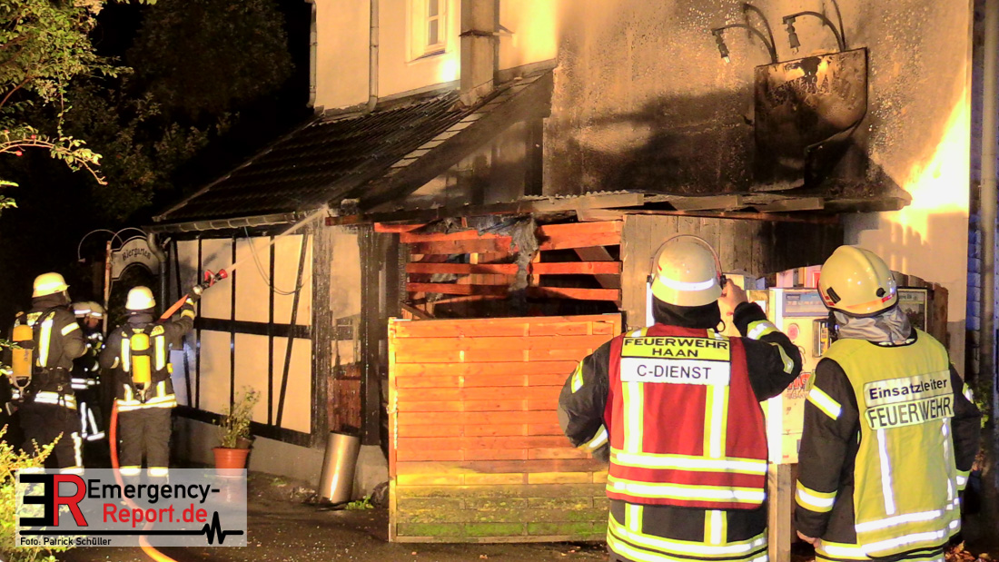 Wie die Feuerwehr Haan bereits berichtete, brannte in der Nacht zu Freitag (18. Oktober 2019) der Anbau eines Restaurants an der Bahnhofstraße in Haan. Gegen 1:20 Uhr vernahm eine Anwohnerin einen starken Rauchgeruch und alarmierte daraufhin die Feuerwehr, welche zeitnah eintraf und den Brand unter Kontrolle brachte.