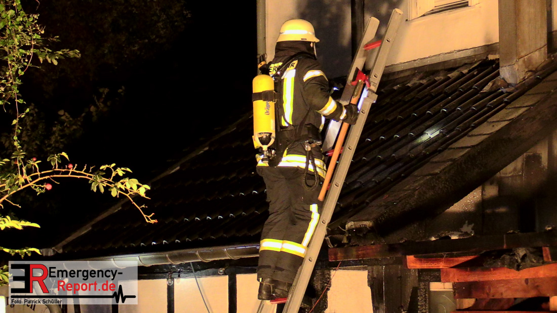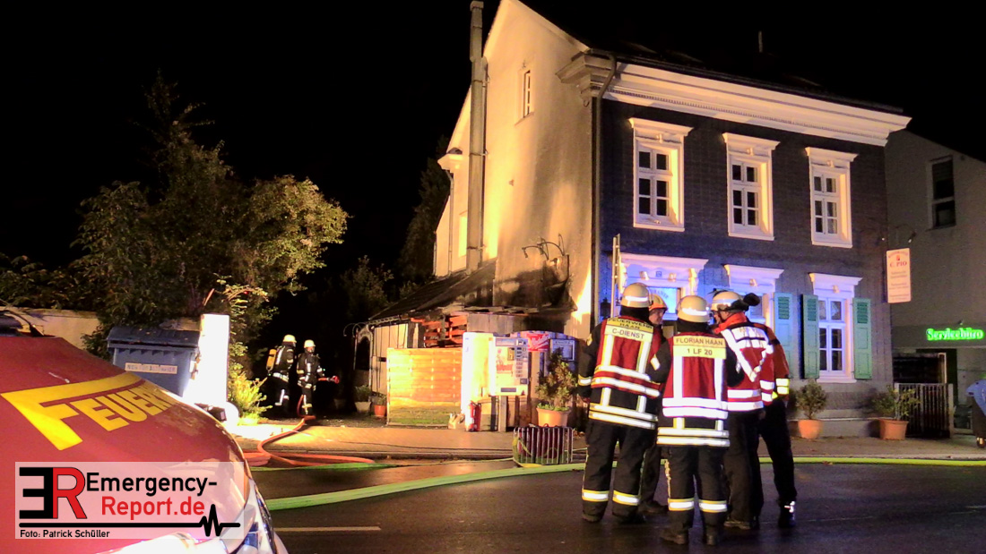 An der Bahnhofstraße brannte in der vergangenen Nacht (18.10.2019) der Anbau eines Restaurants. Das auch als Wohngebäude genutzte Haus wurde dabei beschädigt. Zwei Bewohner wurden wegen des Verdachts auf Rauchgasvergiftungen vor Ort von einem Notarzt behandelt und ins Krankenhaus gebracht. Die Feuerwehr Haan war um 1.29 Uhr alarmiert worden. Beim Eintreffen erster Kräfte brannte an einer Giebelwand ein hölzerner Anbau. Die Flammen hatten bereits auf einen weiteren Anbauteil übergegriffen und schlugen die Fassade empor. Zudem waren Teile des Gebäudes verraucht. Insgesamt drei Atemschutztrupps wurden eingesetzt. Sie hatten das Feuer schnell unter Kontrolle. Mittels Wärmebildkamera wurden im Außenbereich und im Innern des Hauses mögliche betroffene Bereiche kontrolliert. Die Bewohner hatten das Gebäude bereits vor dem Eintreffen der Feuerwehr verlassen und wurden vom Rettungsdienst behandelt, da sie Rauchgase eingeatmet hatten. Ein Rettungswagen transportierte sie ins Krankenhaus. Die Feuerwehr Haan war rund eine Stunde mit 35 Kräften im Einsatz.