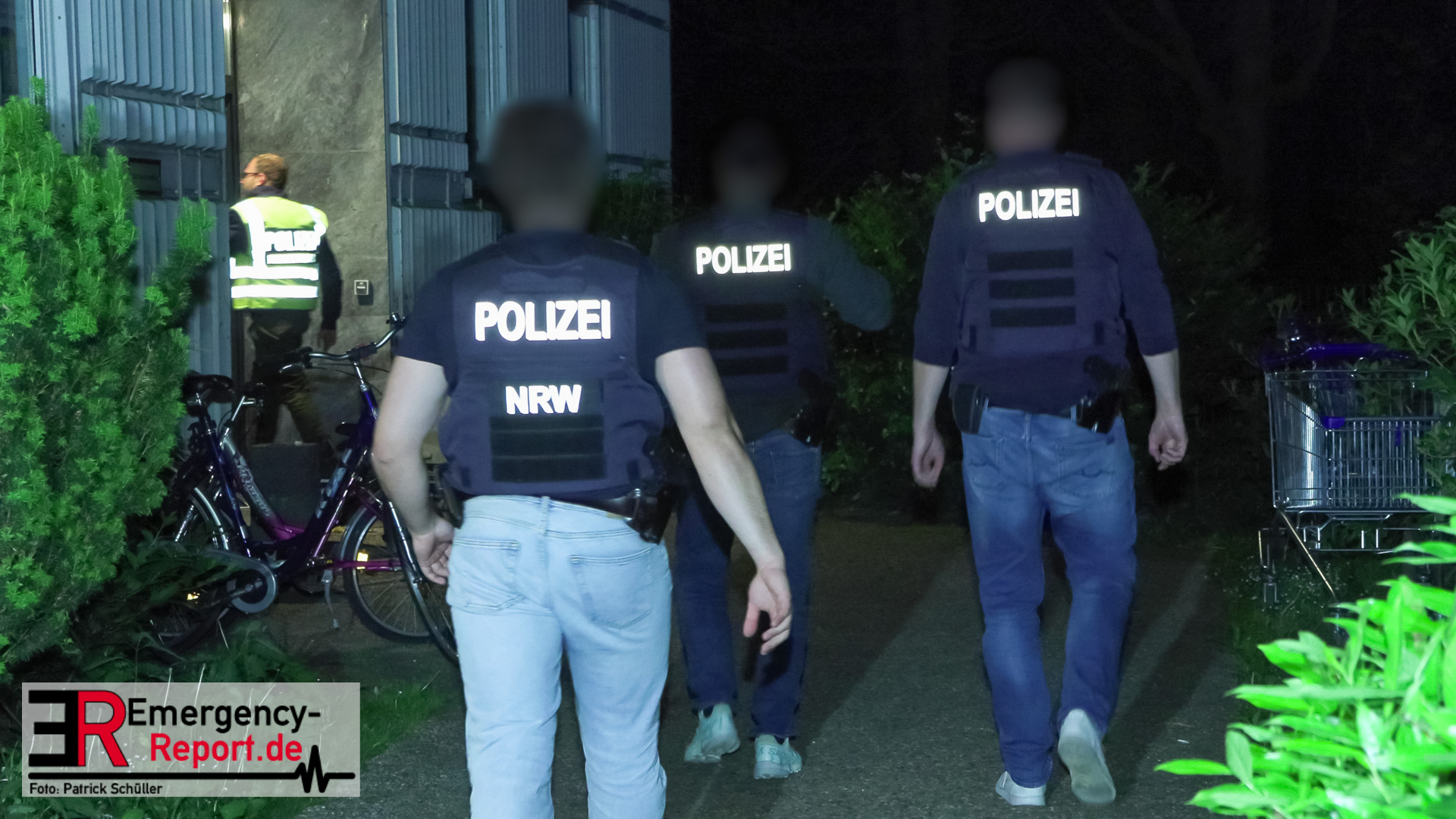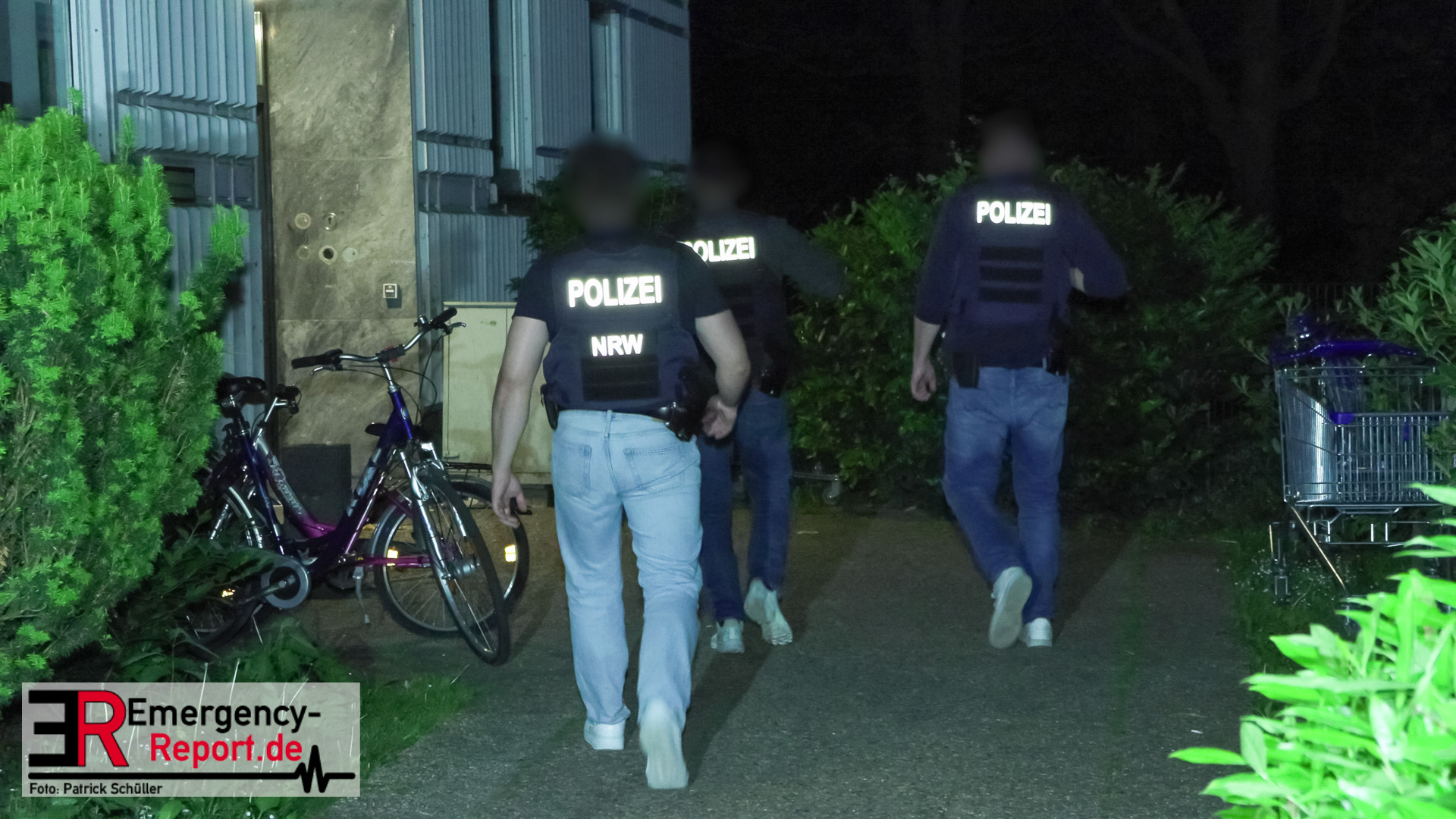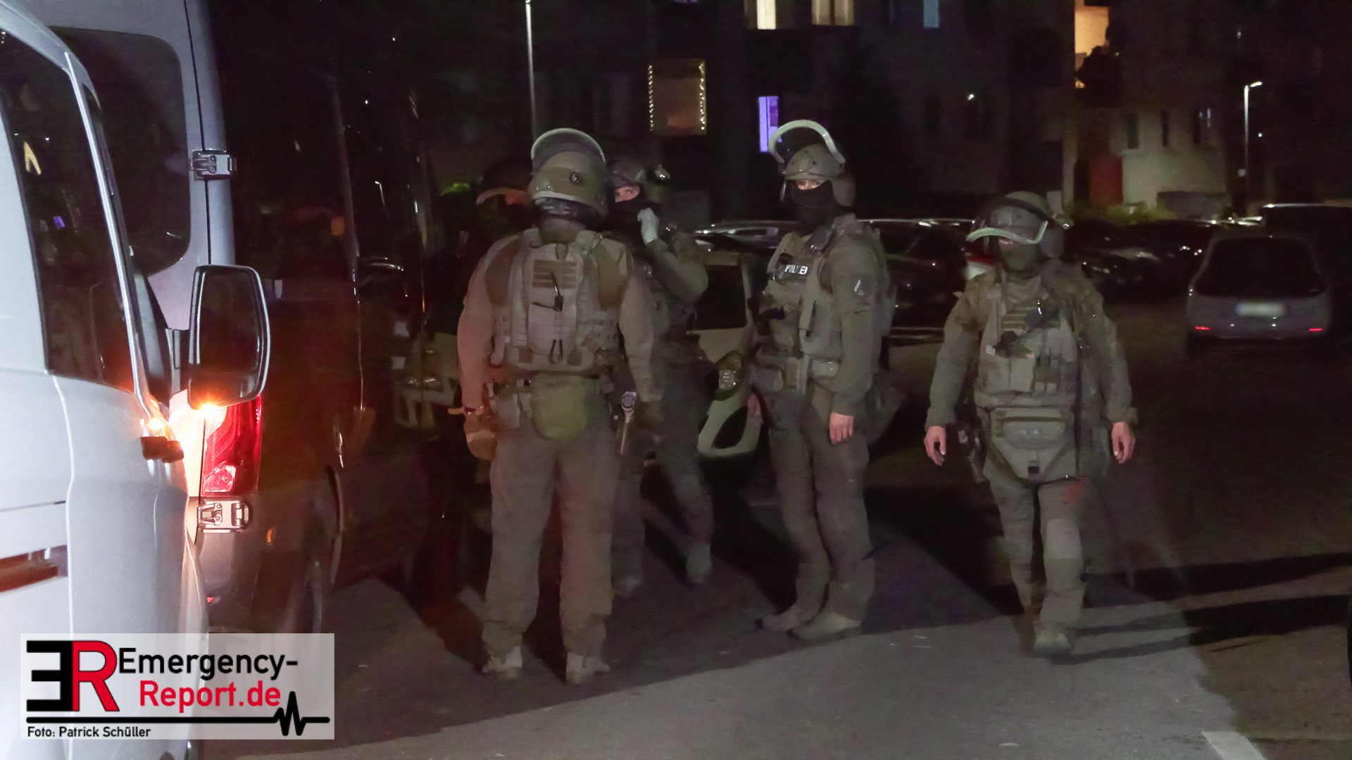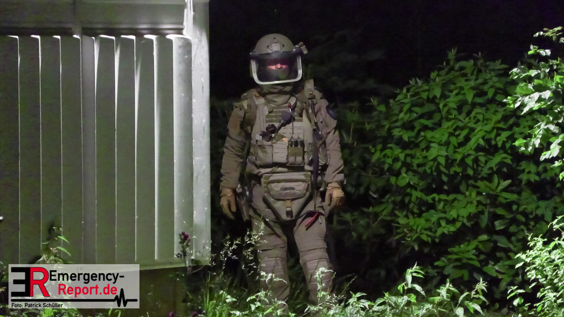 Polizisten des Spezialeinsatzkommandos durchsuchten in Heiligenhaus mehrere Objekte. Dabei konnte eine männliche Person am 19.05.2025, gegen 23:00 Uhr, festgenommen werden.