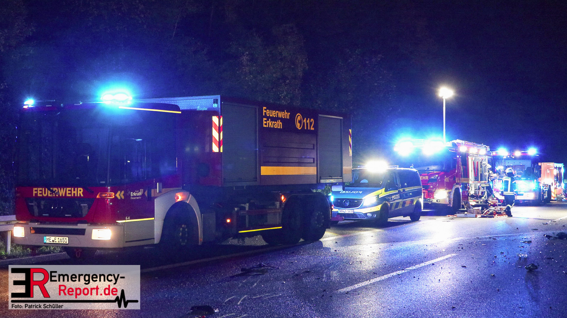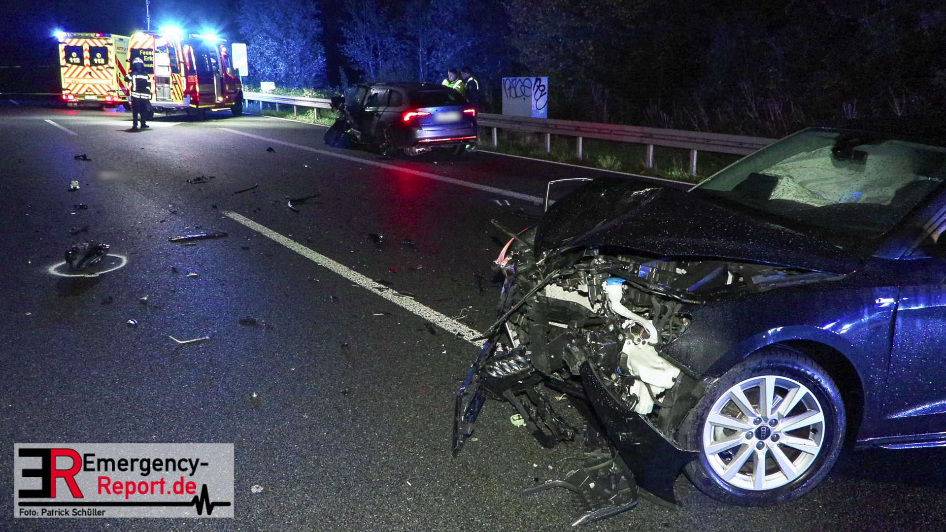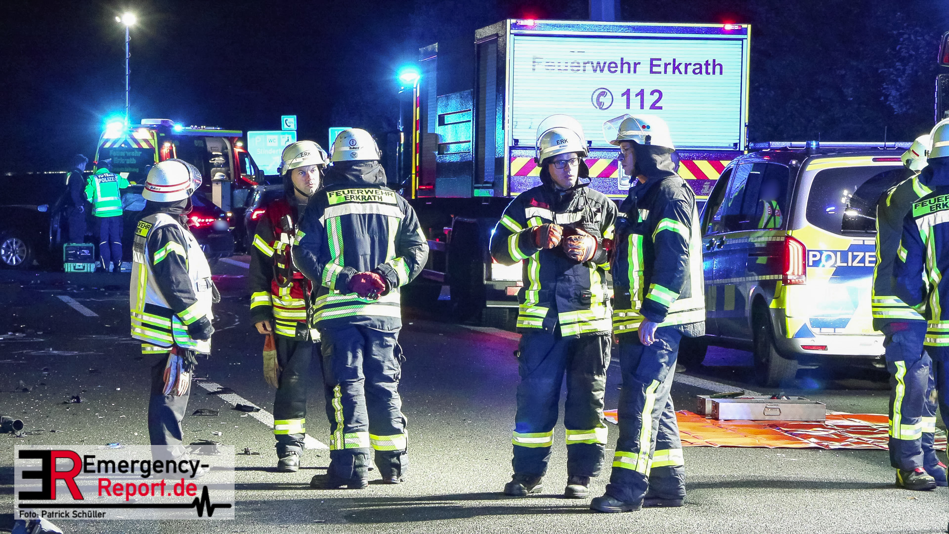 Den ersten Ermittlungen zufolge fuhr der Fahrer eines VW Golf, ein 84-Jähriger aus Duisburg, an der Anschlussstelle Mettmann in Fahrtrichtung Arnheim falsch auf, sodass er dort in Richtung Köln fuhr. Der Fahrer eines Skoda Octavia, ein 27-Jähriger aus Essen, fuhr zu diesem Zeitpunkt auf dem mittleren Fahrstreifen, wechselte auf den linken und prallte dort frontal mit dem entgegenkommenden Golf des 84-Jährigen zusammen. Aufgrund der Wucht des Zusammenpralls drehte sich der Golf um 90 Grad und kam auf dem linken Fahrstreifen in Richtung Arnheim zum Stillstand. Hierbei fiel die Beleuchtung des Golfs aus. Der Skoda schleuderte durch den Aufprall ebenfalls über die Fahrbahn und kam erst auf dem Seitenstreifen zum Stillstand. Der nachfolgende Fahrer eines Audi, ein 73-Jähriger aus Twist, erkannte den unbeleuchteten Golf auf dem linken Fahrstreifen zu spät und kollidierte mit der linken vorderen Seite seines Audi mit der hinteren rechten Seite des VW. Der 84-Jährige verstarb noch an der Unfallstelle. Der 27-Jährige kam mit einem Rettungswagen zur stationären Behandlung in ein Krankenhaus. Der 73-Jährige und seine Beifahrerin wurden ebenfalls mit Rettungswagen zur ambulanten Behandlung in ein Krankenhaus gebracht. Zwei weitere Fahrzeuge wurden durch umherfliegende Trümmerteile beschädigt. Ein Verkehrsunfallaufnahmeteam sicherte vor Ort die Unfallspuren. Die A 3 in Richtung Arnheim blieb für die Rettungsmaßnahmen, die Unfallermittlungen und Reinigungsarbeiten bis gegen 04:45 Uhr gesperrt. Die Ermittlungen zur Unfallursache dauern an.