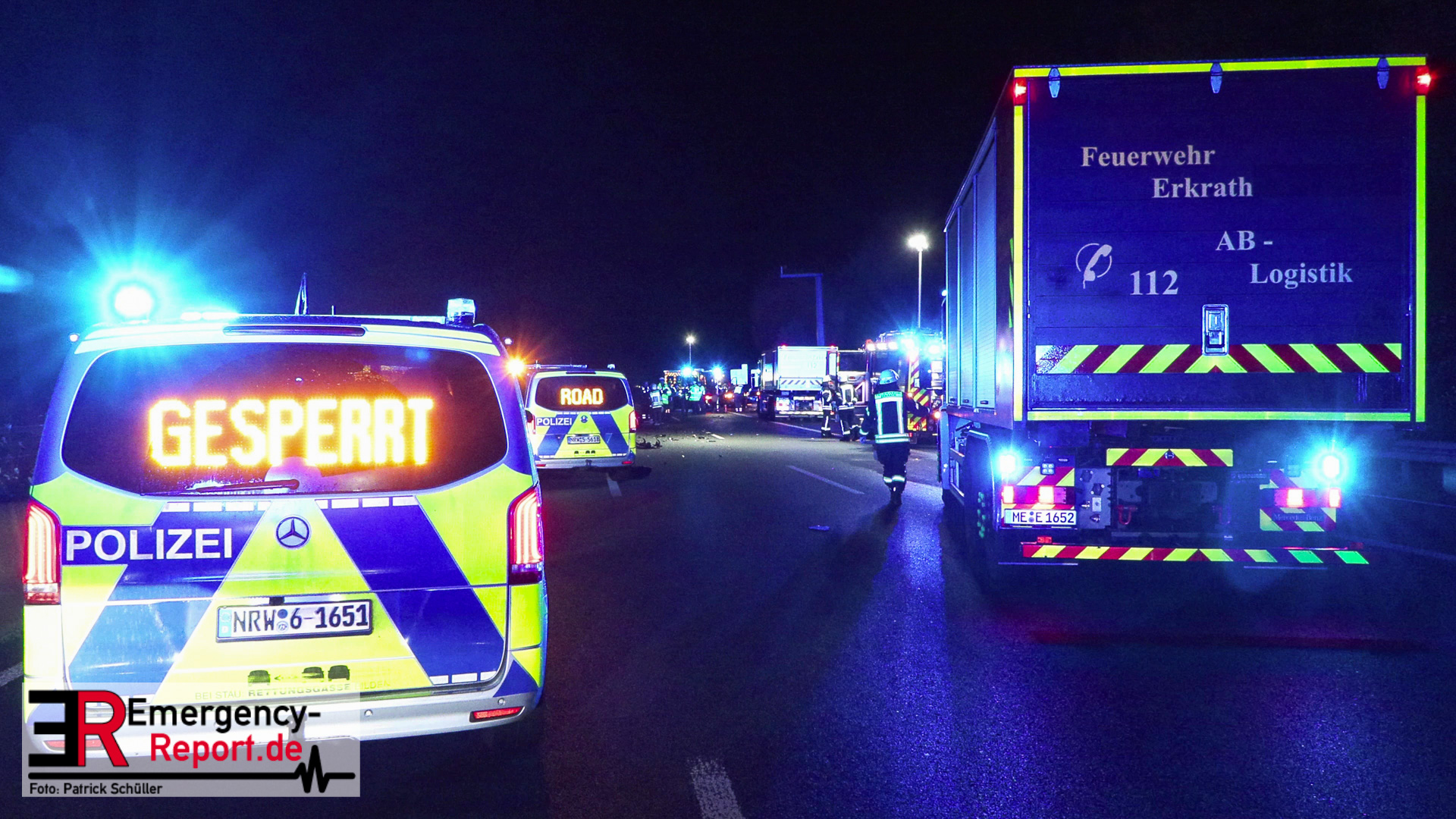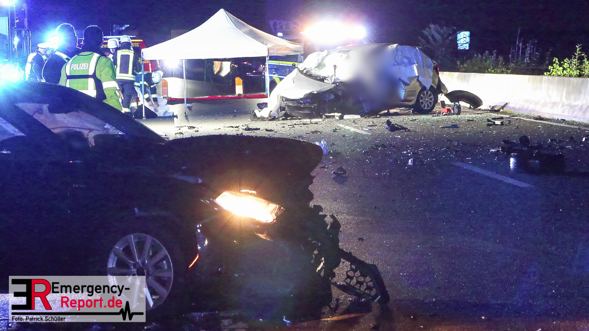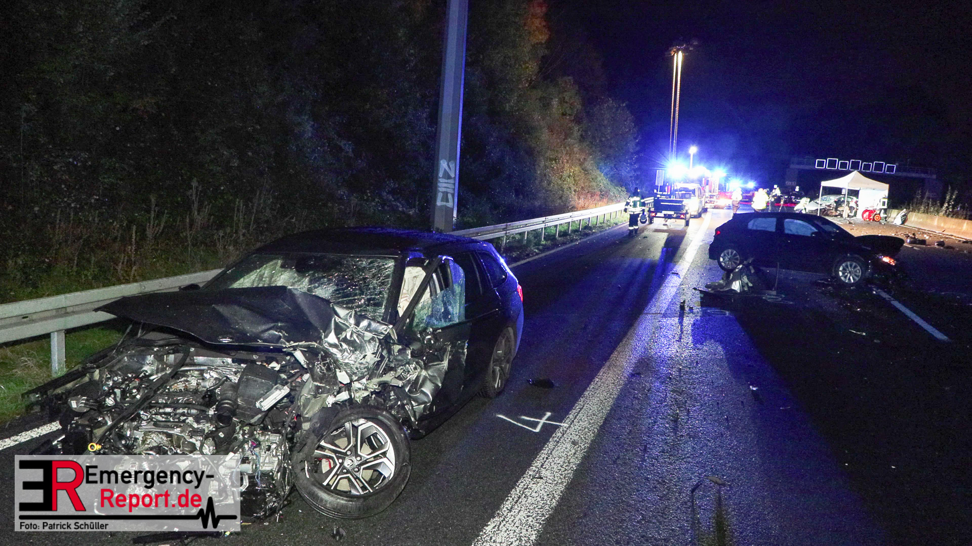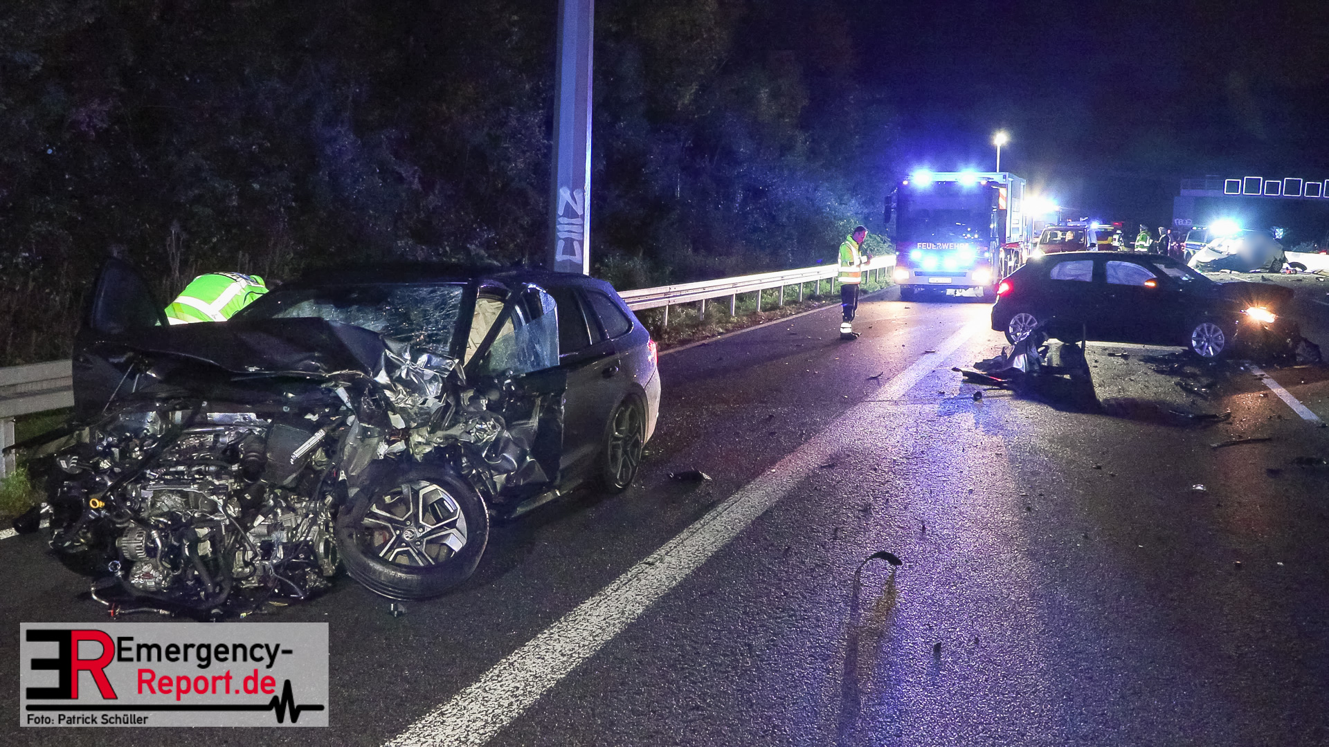 Den ersten Ermittlungen zufolge fuhr der Fahrer eines VW Golf, ein 84-Jähriger aus Duisburg, an der Anschlussstelle Mettmann in Fahrtrichtung Arnheim falsch auf, sodass er dort in Richtung Köln fuhr. Der Fahrer eines Skoda Octavia, ein 27-Jähriger aus Essen, fuhr zu diesem Zeitpunkt auf dem mittleren Fahrstreifen, wechselte auf den linken und prallte dort frontal mit dem entgegenkommenden Golf des 84-Jährigen zusammen. Aufgrund der Wucht des Zusammenpralls drehte sich der Golf um 90 Grad und kam auf dem linken Fahrstreifen in Richtung Arnheim zum Stillstand. Hierbei fiel die Beleuchtung des Golfs aus. Der Skoda schleuderte durch den Aufprall ebenfalls über die Fahrbahn und kam erst auf dem Seitenstreifen zum Stillstand. Der nachfolgende Fahrer eines Audi, ein 73-Jähriger aus Twist, erkannte den unbeleuchteten Golf auf dem linken Fahrstreifen zu spät und kollidierte mit der linken vorderen Seite seines Audi mit der hinteren rechten Seite des VW. Der 84-Jährige verstarb noch an der Unfallstelle. Der 27-Jährige kam mit einem Rettungswagen zur stationären Behandlung in ein Krankenhaus. Der 73-Jährige und seine Beifahrerin wurden ebenfalls mit Rettungswagen zur ambulanten Behandlung in ein Krankenhaus gebracht. Zwei weitere Fahrzeuge wurden durch umherfliegende Trümmerteile beschädigt. Ein Verkehrsunfallaufnahmeteam sicherte vor Ort die Unfallspuren. Die A 3 in Richtung Arnheim blieb für die Rettungsmaßnahmen, die Unfallermittlungen und Reinigungsarbeiten bis gegen 04:45 Uhr gesperrt. Die Ermittlungen zur Unfallursache dauern an.