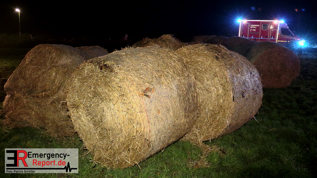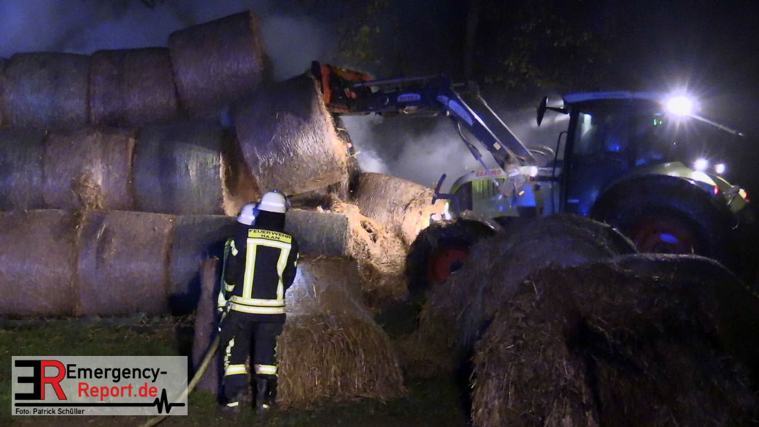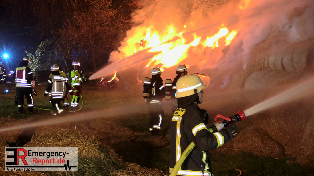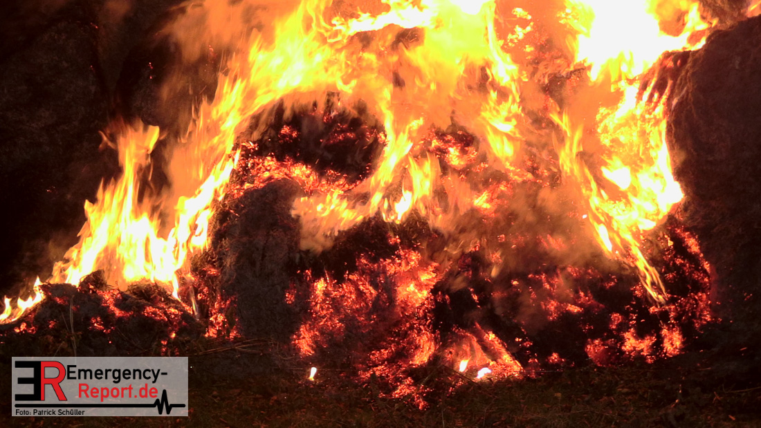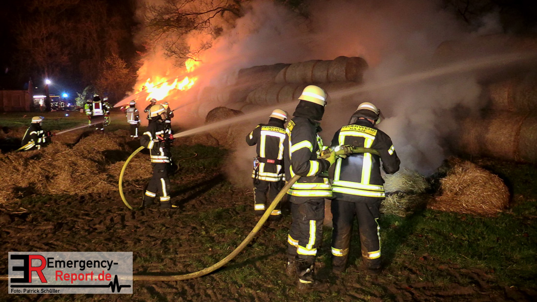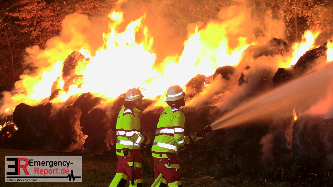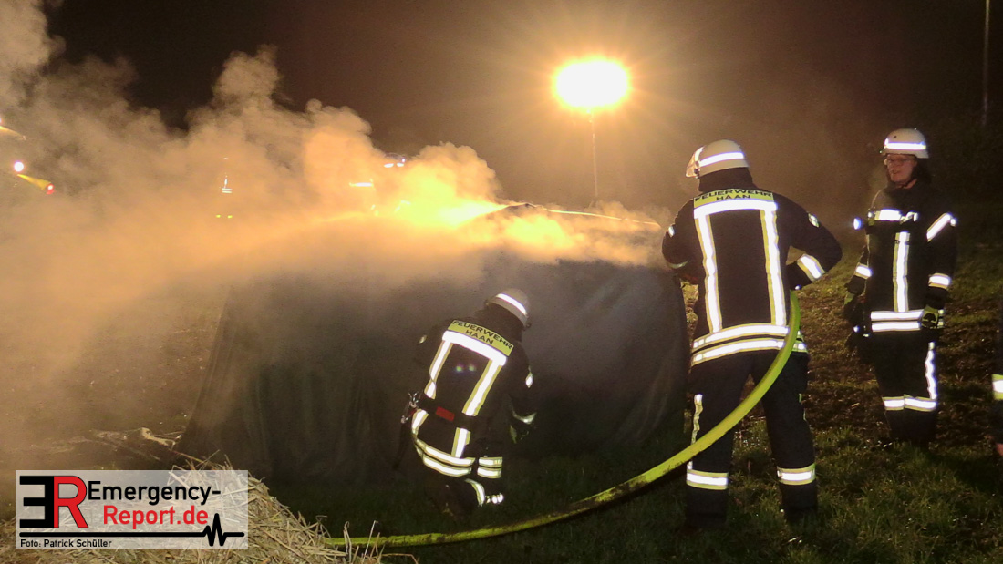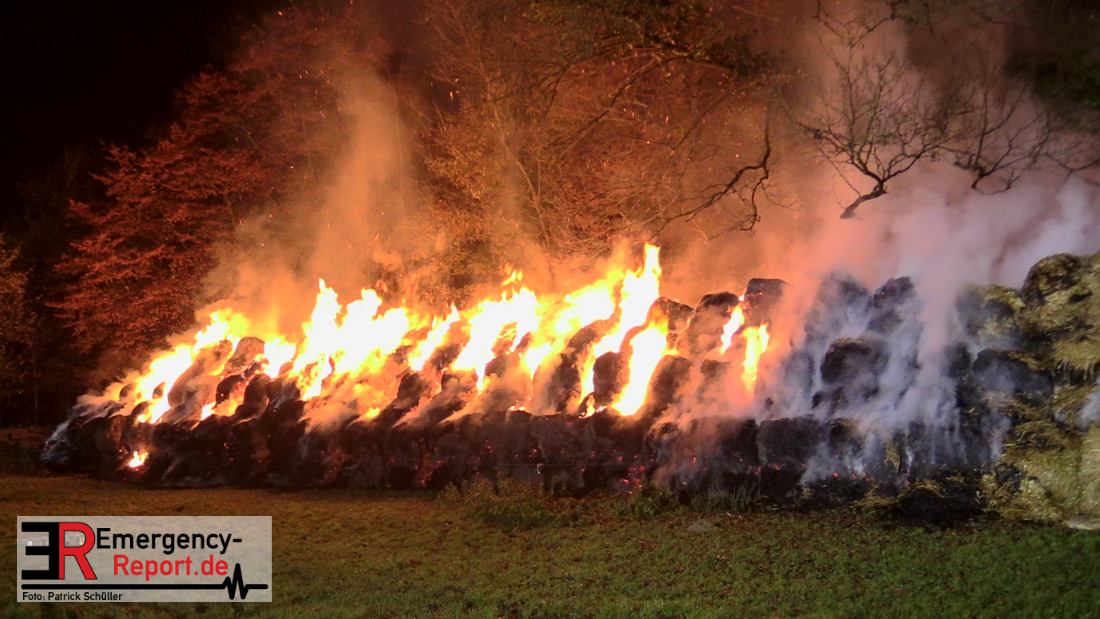 Beim Eintreffen der ersten Kräfte brannte ein Teil, einer aus 400 Ballen bestehenden Strohmiete auf einem Feld, sodass eine Alarmstufenerhöhung durchgeführt wurde. In diesem Zuge wurde ebenfalls Sirenenalarm ausgelöst, um alle verfügbaren Einsatzkräfte zu alarmieren. Gleichzeitig wurde die Bevölkerung über die gängigen Warnapps vor möglichen Geruchsbelästigungen gewarnt und gebeten Fenster und Türen geschlossen zu halten.