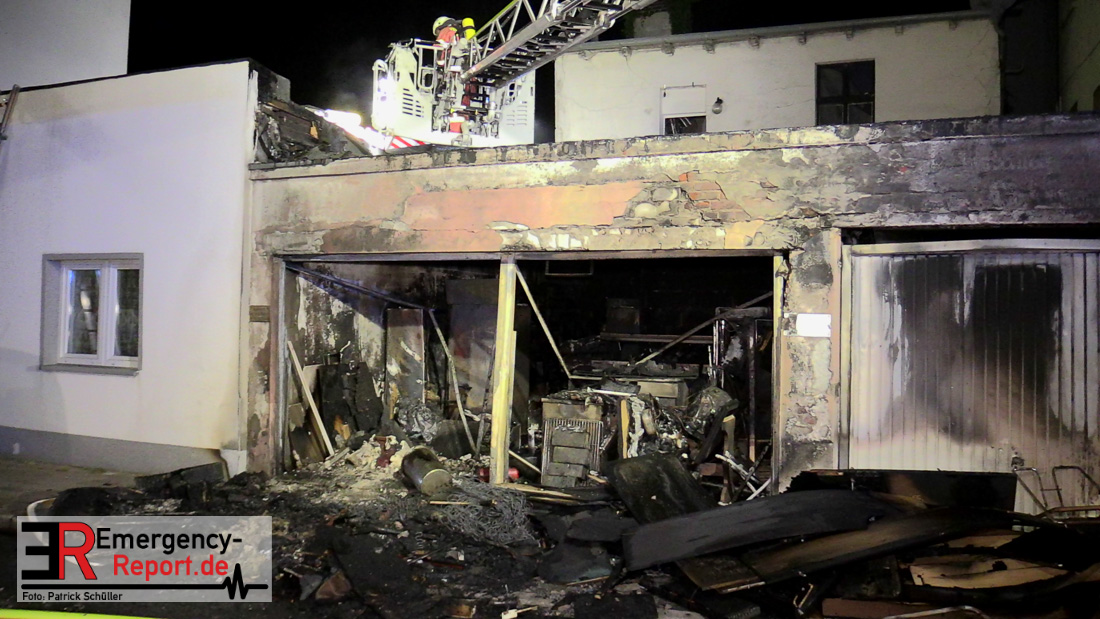 Beim schnellen Eintreffen erster Polizeikräfte am Einsatzort brannte der Sperrmüll vor den Garagen bereits in voller Ausdehnung und mit meterhohen Flammen. Diese griffen auch schon auf das Garagengebäude über und konnten mit eigenen Mitteln nicht mehr bekämpft werden. Da die Flammen drohten auch auf das Wohngebäude mit der Nummer 27 überzugreifen, wurden alle Bewohner dort noch vor Eintreffen der Feuerwehr vorsorglich aus den Wohnungen geholt und ins Freie gebracht. Da das Feuer bei Eintreffen der Feuerwehr auch noch drohte auf die Fassade und das Dach des Hauses mit der Nummer 25 überzugreifen, wurden auch dortige Bewohner von Feuerwehr und Polizei in Sicherheit gebracht. Hierdurch war im Lauf des gesamten Einsatzes auch kein Personenschaden zu beklagen. Trotz des schnellen und wirksamen Löscheinsatzes der Velberter Feuerwehr brannten die zwei zum Haus Nr. 27 gehörenden Garagen nahezu komplett aus. Haus-, Dach- und Fassadenteile des Hauses Nr. 27 wurden vom Feuer unmittelbar beschädigt. Jalousien einer Erdgeschosswohnung, im gegenüberliegenden Gebäude mit der Hausnummer 32, wurden, genauso wie Außenputz der Fassade, von der Hitze des Brandes beschädigt. Gleich mehrere geparkte Fahrzeuge auf der Straße wurden durch Brandhitze oder abgeplatzten Fassadenputz in Mitleidenschaft gezogen. Der insgesamt entstandene Gebäude- und Sachschaden kann aktuell noch nicht genauer beziffert werden.