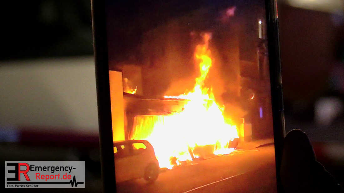 Ein Feuer in der Innenstadt erforderte in der vergangenen Nacht (21.06.2020) den umfangreichen Einsatz von hauptamtlicher Wache und drei freiwilligen Löschzügen. Die Feuerwehr war um 23.16 Uhr zur Nordstraße alarmiert worden, weil dort vor zwei Garagen deponierter Sperrmüll brenne und auch eine angrenzende Gaststätte betroffen sei. Als die Einsatzkräfte kurz darauf eintrafen, stellte sich heraus, dass sowohl der Sperrmüll wie auch die Garagen bereits in voller Ausdehnung brannten. Ins rechts neben den Garagen stehende Wohn- und Geschäftshaus mit der Gaststätte im Erdgeschoss war Rauch in den Treppenraum gezogen; weil die Flammen auf dieses Gebäude ebenso wie auf ein links neben den Garagen stehendes Wohnhaus überzugreifen drohten, hatte die Polizei schon beide Häuser geräumt. Die Hitzeentwicklung war so stark, dass mehrere geparkte Fahrzeuge erheblich in Mitleidenschaft gezogen wurden. Noch am Wohnhaus auf der gegenüberliegenden Straßenseite kam es zu Hitzeschäden an den Jalousien und zu Putzabplatzungen an der Fassade.