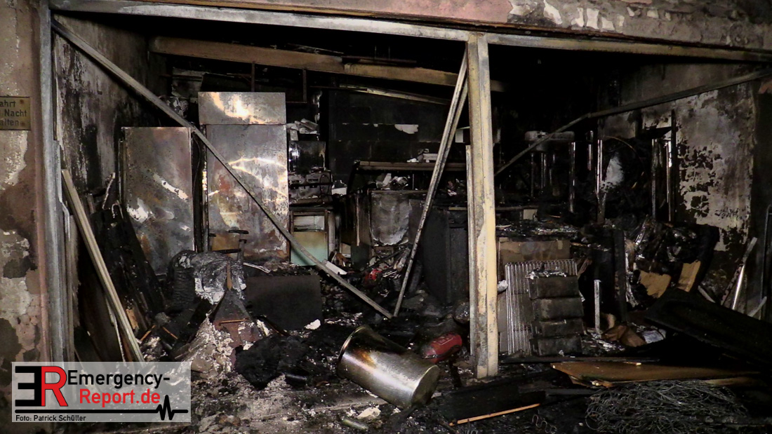 Des weiteren wurde das rechts neben den Garagen stehende Wohn- und Geschäftshaus mit einem Drucklüfter entraucht, die Bewohner konnten anschließend in ihre Wohnungen zurückkehren. Für den größten Teil der Feuerwehr war der Einsatz gegen 3.30 Uhr mit der Übergabe des Brandortes an die Polizei beendet. Die Besatzung des Rüstwagens blieb noch eine weitere Dreiviertelstunde vor Ort, bis die Technischen Betriebe den Bereich von den einsturzgefährdeten Garagen mit Absperrmaterial gesichert hatten.