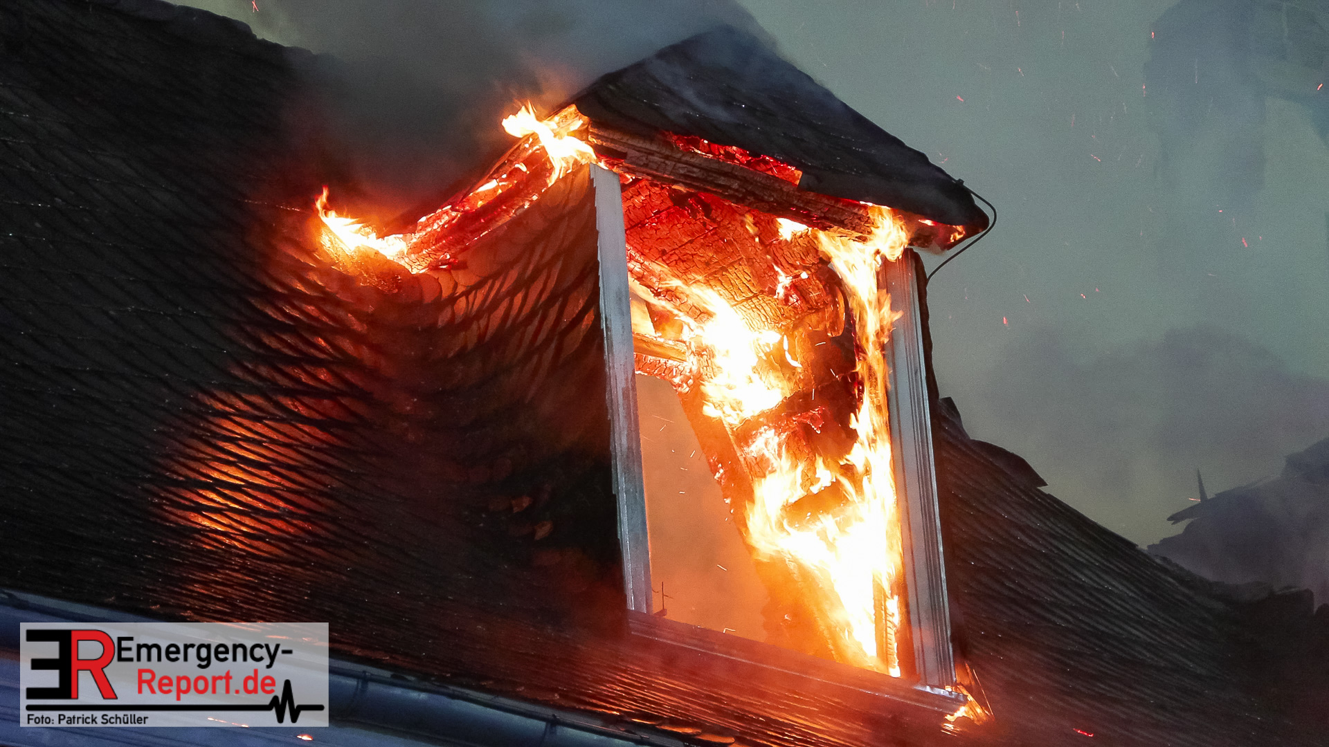 Kurze Zeit später stand der Dachstuhl komplett im Vollbrand. Die Einsatzleitung alarmierte Kräfte aus allen drei Stadtteilen und bildete insgesamt vier Abschnitte.