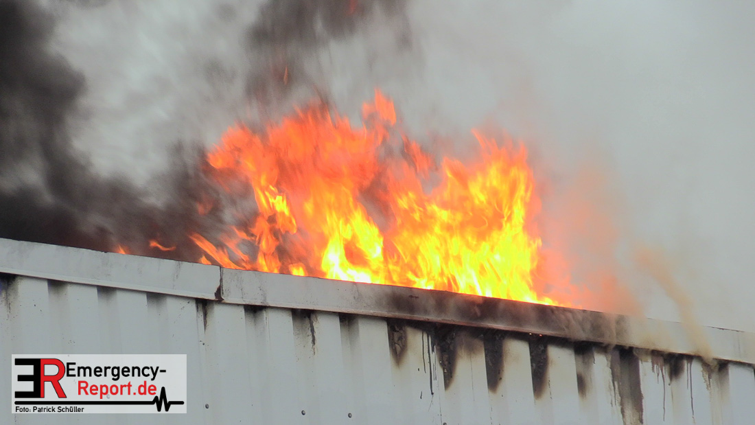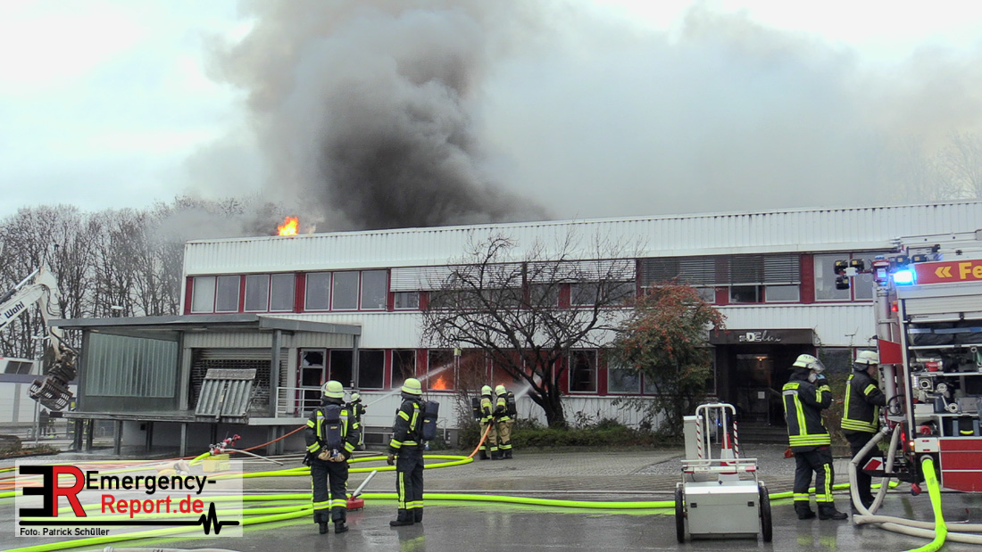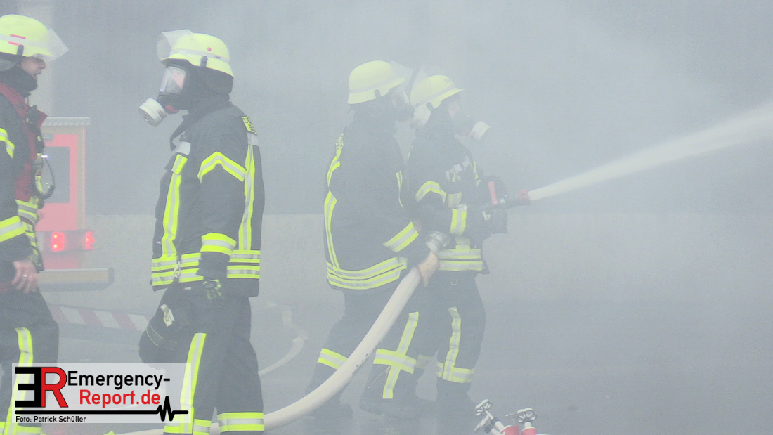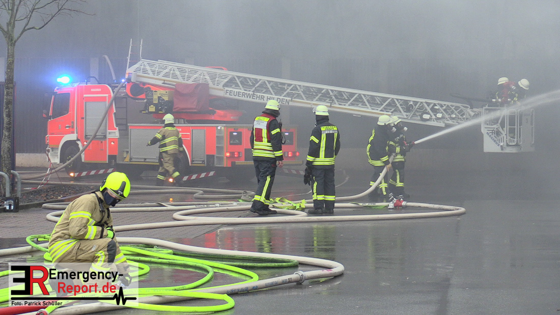 Die Feuerwehr Erkrath wurde heute Mittag (21.12.2020) um 12:12 Uhr zu einer ausgelösten automatischen Brandmeldeanlage einer Firma für Malerbedarf an der Röntgenstraße in Erkrath-Hochdahl alarmiert. Bereits bei Eintreffen der ersten Einsatzkräfte der sich unmittelbarer Nähe befindlichen Feuer- und Rettungswache wurde in Vollbrand befindliche Lagerhalle mit einer massiven Rauchentwicklung vorgefunden. Zuvor hatten sich zwei kleinere Verpuffungen ereignet. Es wurde sofort Vollalarm für die Feuerwehr Erkrath ausgelöst.