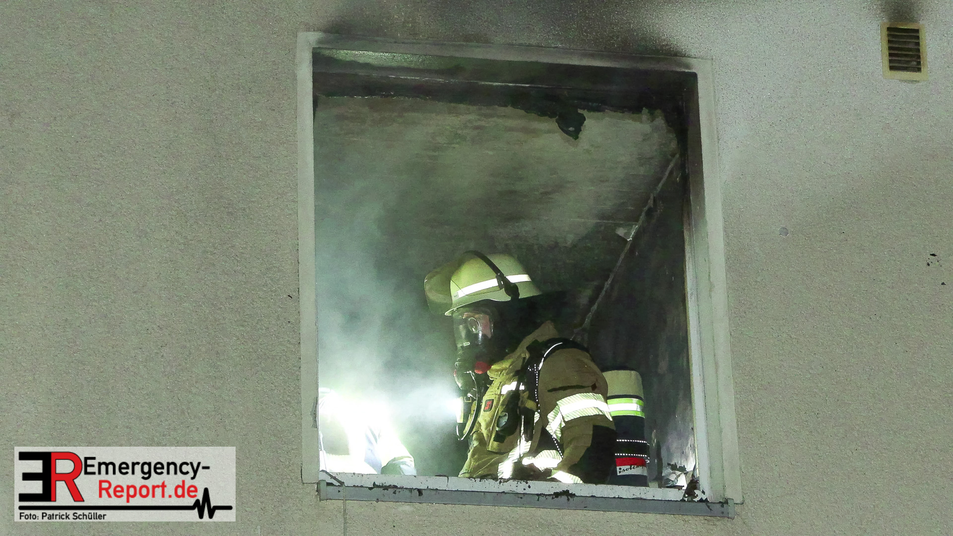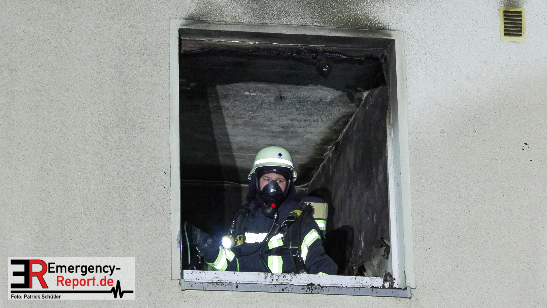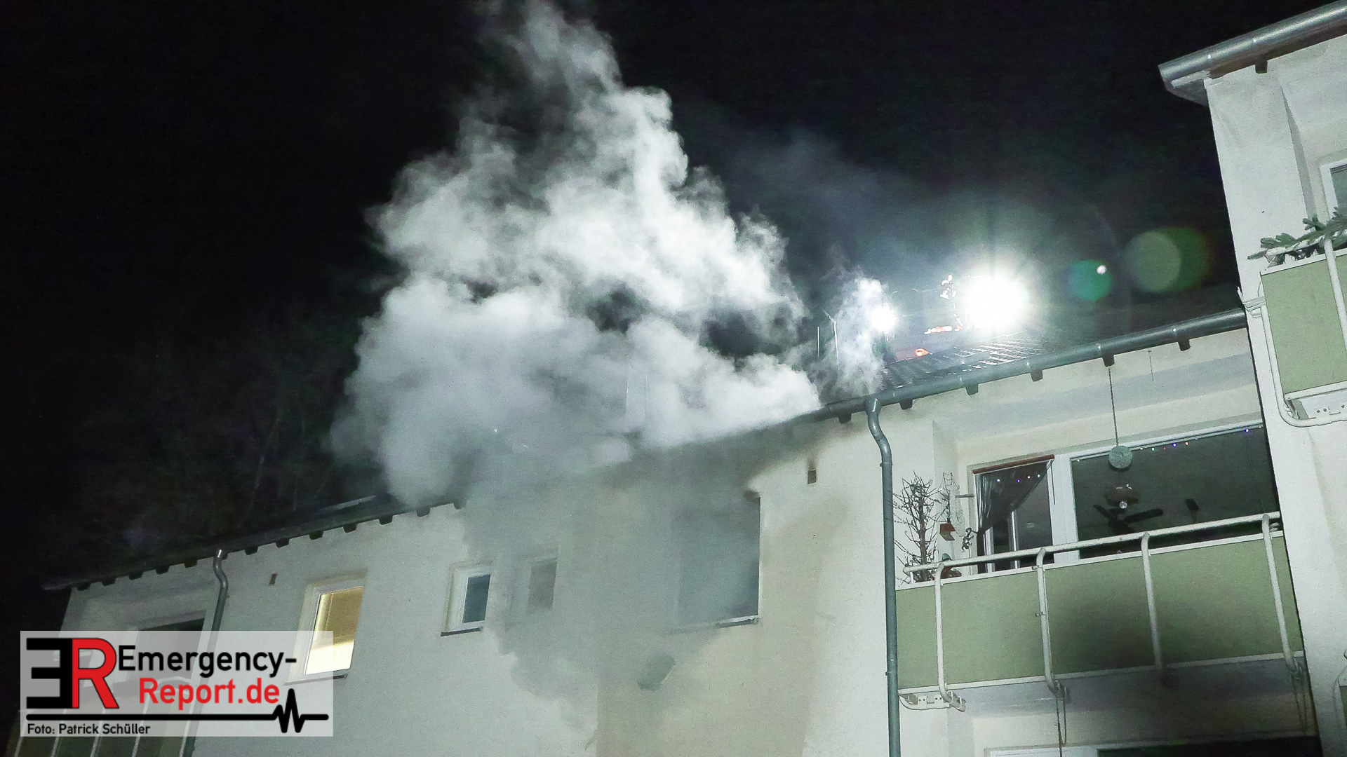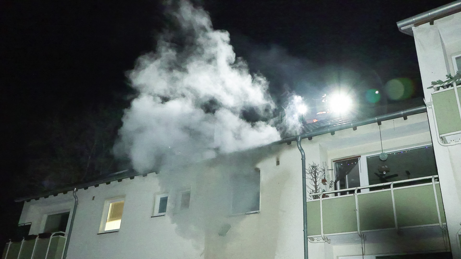 Bei Eintreffen an der Einsatzstelle traten durch zerborstene Scheiben auf der Rückseite des Gebäudes bereits Flammen aus der Küche nach draußen. Aus diesem Grund fand parallel zu einer Evakuierung der restlichen Bewohner eine erste Löschmaßnahme über einen Fensterimpuls statt. Im Anschluss wurde der Brand über einen Innenangriff erfolgreich bekämpft. Das Dach sowie die angrenzenden Wohnungen wurden kontrolliert, waren aber durch den Brand nicht in Mitleidenschaft gezogen worden.