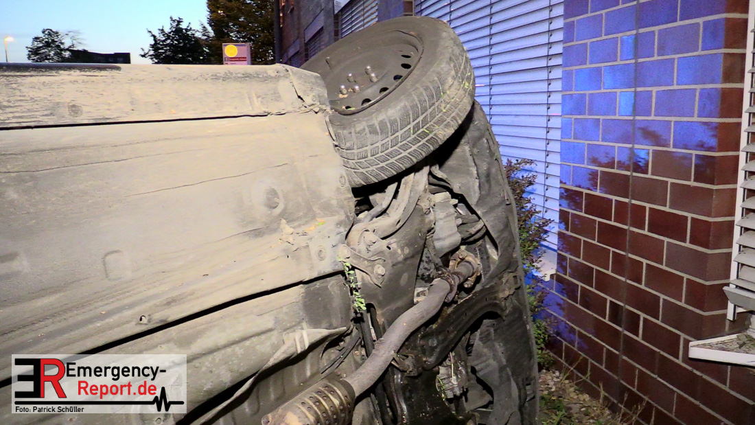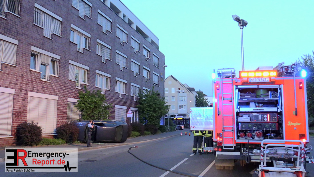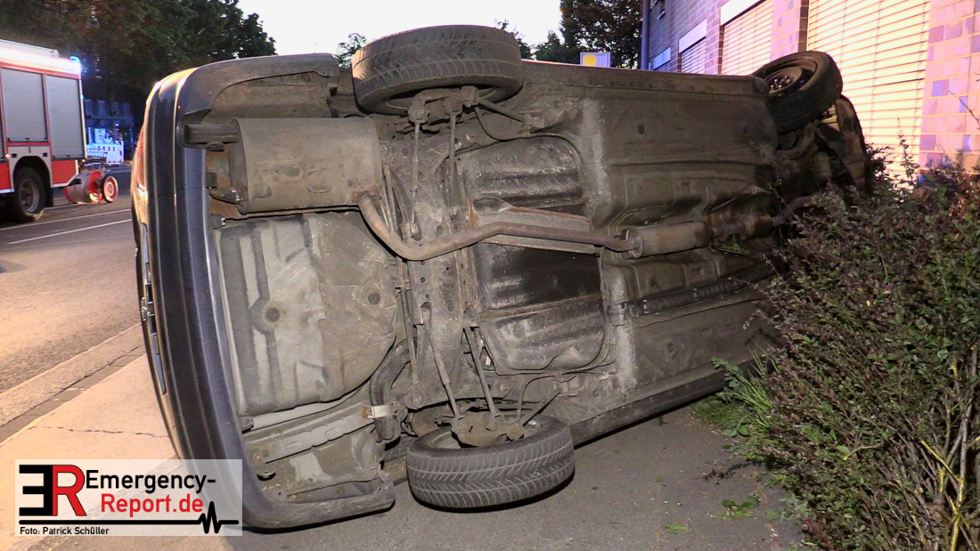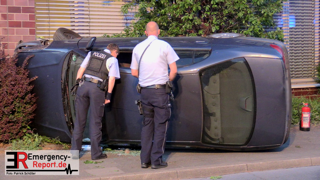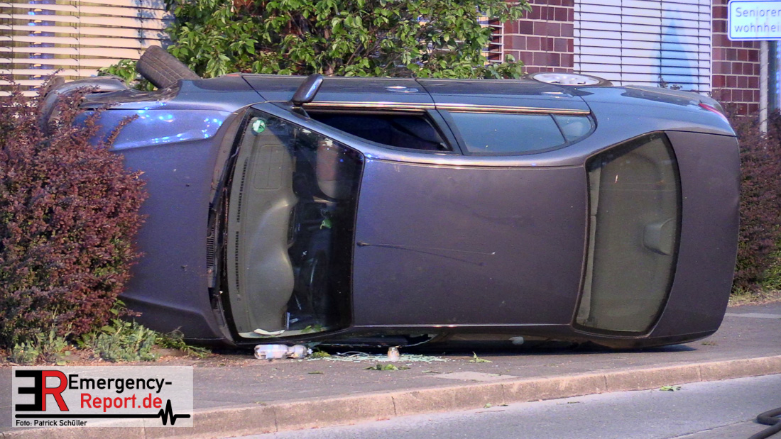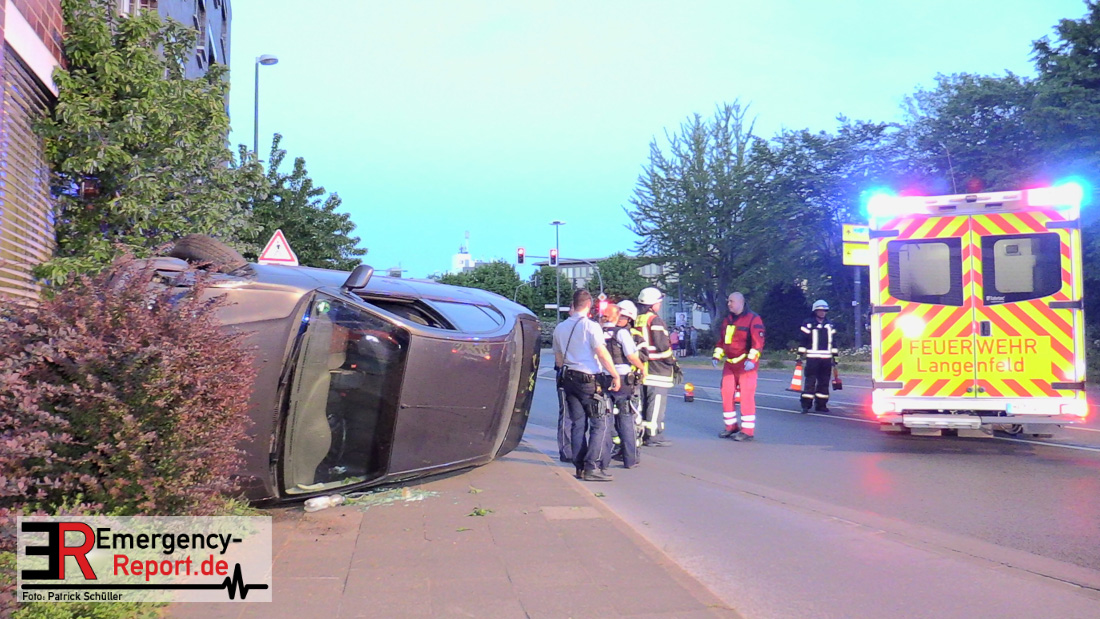 Am 22.04.2019, gegen 20.30 Uhr, befuhr eine 20-jährige Erkratherin mit einem Pkw Toyota die Richrather Straße in Langenfeld in Richtung Innenstadt. An der Kreuzung Richrather Straße, Solinger Straße, Theodor-Heuss-Straße bog sie nach rechts in die Theodor-Heuss-Straße ab und verlor aus ungeklärter Ursache die Kontrolle über das Fahrzeug. Während des Abbiegevorgangs touchierte das Fahrzeug zunächst eine Verkehrsinsel und kam dann im weiteren Verlauf von der Fahrbahn nach rechts ab, wo es mit einem Baum kollidierte und dann mit der Hauswand des dortigen Altenheims. Das Fahrzeug kippte hierbei auf die Fahrerseite. Die Fahrzeugführerin und ihre 16-jährige Beifahrerin aus Erkrath konnten sich selbständig aus dem Fahrzeug befreien und waren nur leicht verletzt. Der Anprall am Gebäude war so stark, dass Ziegelsteine in das Gebäude gedrückt und ein Fensterrahmen verformt wurden. Der entstandene Sachschaden liegt im niedrigen fünfstelligen Bereich. Das Fahrzeug, welches einen Totalschaden erlitt, musste von einem Abschleppdienst aufgerichtet und abtransportiert werden. Die Insassinnen des Unfallwagens wurden vorsorglich ins Krankenhaus verbracht und dort untersucht. Für die Dauer der Unfallaufnahme wurde die Theodor-Heuss-Straße gesperrt.