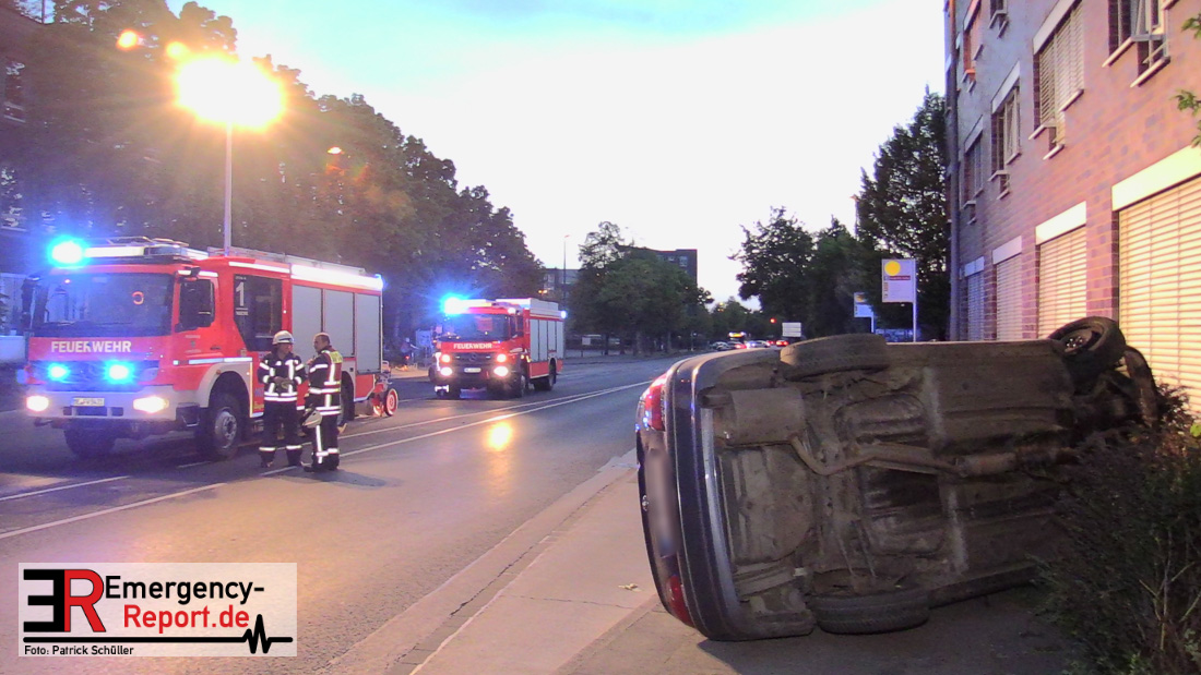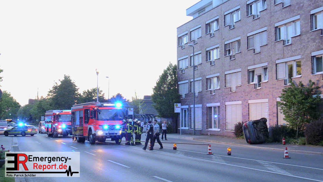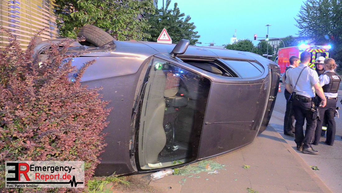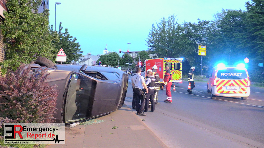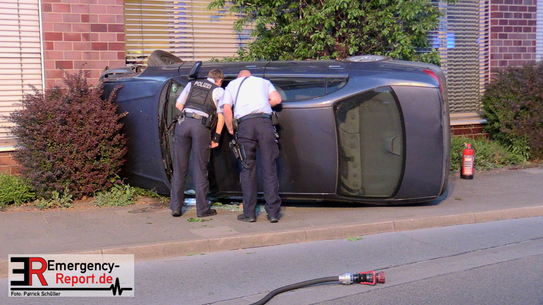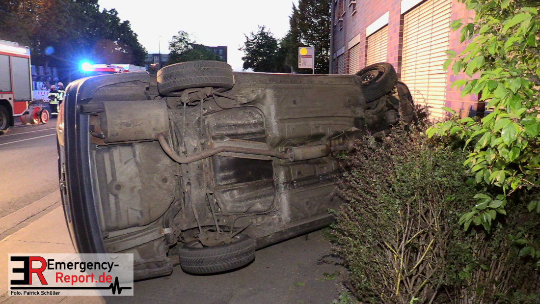 Am 22.04.2019, gegen 20.30 Uhr, befuhr eine 20-jährige Erkratherin mit einem Pkw Toyota die Richrather Straße in Langenfeld in Richtung Innenstadt. An der Kreuzung Richrather Straße, Solinger Straße, Theodor-Heuss-Straße bog sie nach rechts in die Theodor-Heuss-Straße ab und verlor aus ungeklärter Ursache die Kontrolle über das Fahrzeug. Während des Abbiegevorgangs touchierte das Fahrzeug zunächst eine Verkehrsinsel und kam dann im weiteren Verlauf von der Fahrbahn nach rechts ab, wo es mit einem Baum kollidierte und dann mit der Hauswand des dortigen Altenheims. Das Fahrzeug kippte hierbei auf die Fahrerseite. Die Fahrzeugführerin und ihre 16-jährige Beifahrerin aus Erkrath konnten sich selbständig aus dem Fahrzeug befreien und waren nur leicht verletzt. Der Anprall am Gebäude war so stark, dass Ziegelsteine in das Gebäude gedrückt und ein Fensterrahmen verformt wurden. Der entstandene Sachschaden liegt im niedrigen fünfstelligen Bereich. Das Fahrzeug, welches einen Totalschaden erlitt, musste von einem Abschleppdienst aufgerichtet und abtransportiert werden. Die Insassinnen des Unfallwagens wurden vorsorglich ins Krankenhaus verbracht und dort untersucht. Für die Dauer der Unfallaufnahme wurde die Theodor-Heuss-Straße gesperrt.