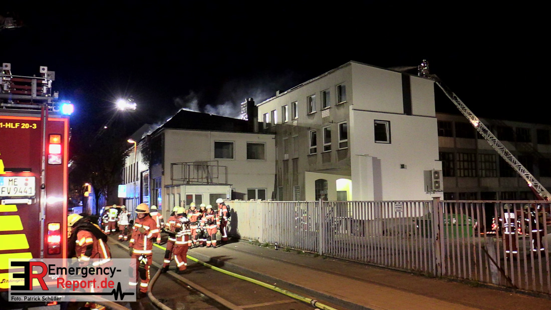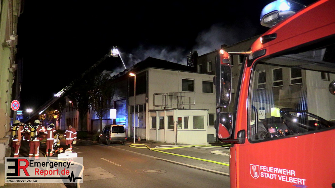 Beim Eintreffen der Einsatzkräfte brannte der Dachstuhl auf der gesamten Länge von etwa 18 Metern in voller Ausdehnung. Das Feuer drohte, begünstigt durch die Sheddach-Bauweise, auf benachbarte, zum Glück ebenfalls leerstehende Wohn- und Verwaltungsgebäude längs der Sternbergstraße sowie in Richtung Nordstraße überzugreifen. Aufgrund dieser Lage wurde umgehend Sirenenalarm für Velbert-Mitte ausgelöst, des weiteren Verstärkung aus Neviges und Langenberg nachgefordert. Mit Hilfe von zwei Drehleitern wurde eine Riegelstellung aufgebaut, mit der es gelang, die Ausbreitung des Brandes zu verhindern. Daneben wurden zwei Einsatzabschnitte – Frontseite Sternbergstraße und Innenhof des Areals – gebildet.