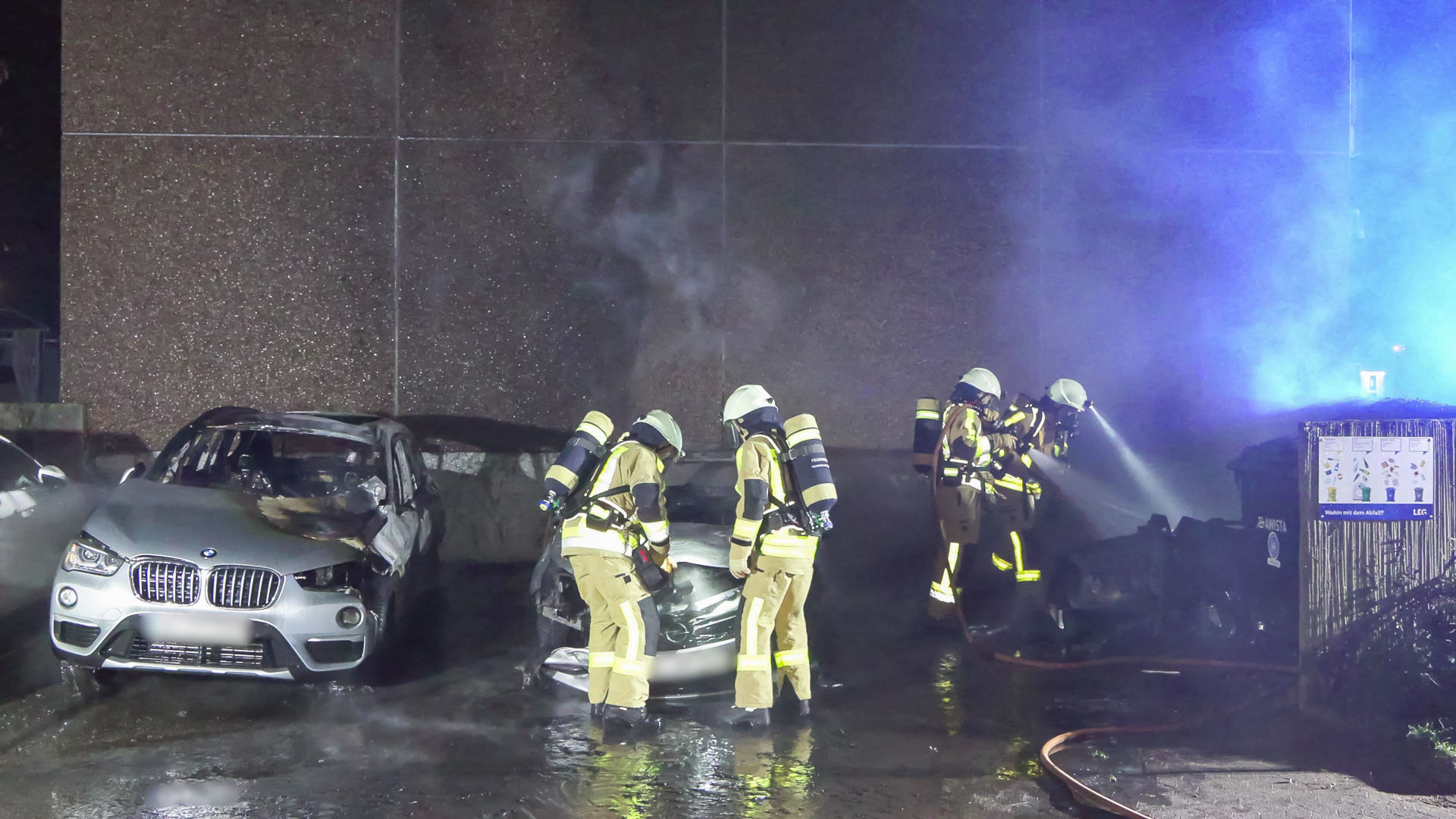 In der Nacht auf Sonntag, 23. Februar 2025, wurden zwei Autos sowie drei Müllcontainer in Monheim am Rhein durch einen Brand stark beschädigt. Die Polizei ermittet wegen Brandstiftung und bittet um Hinweise.