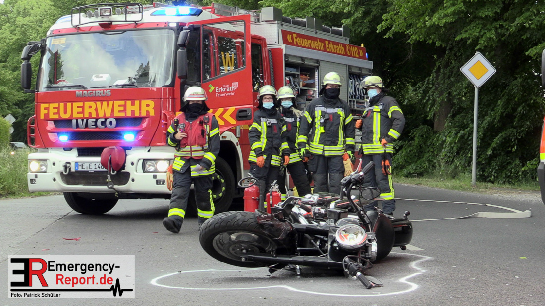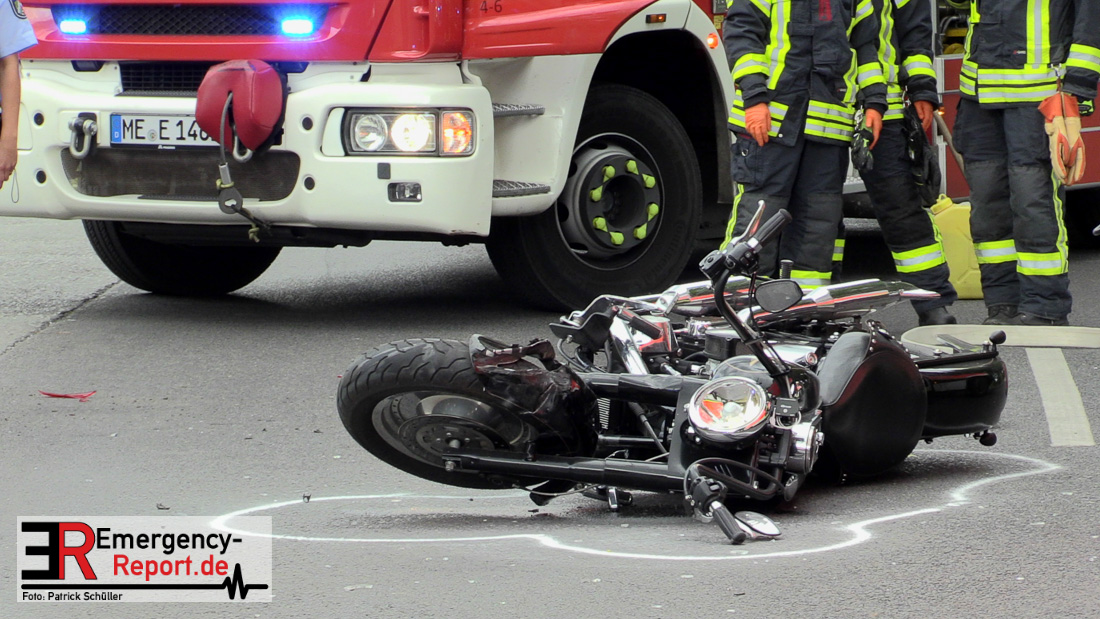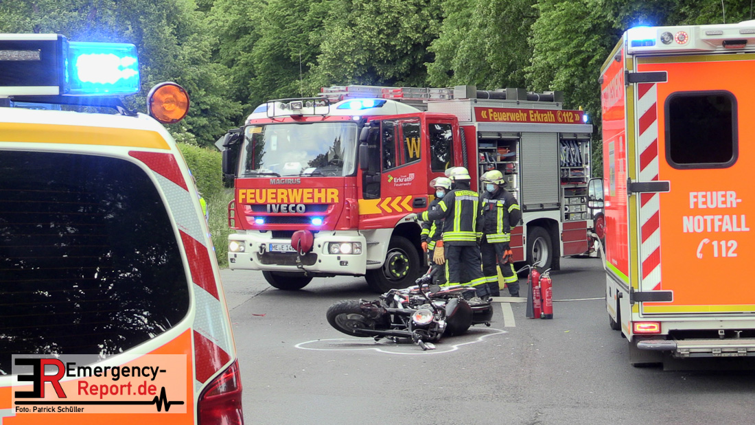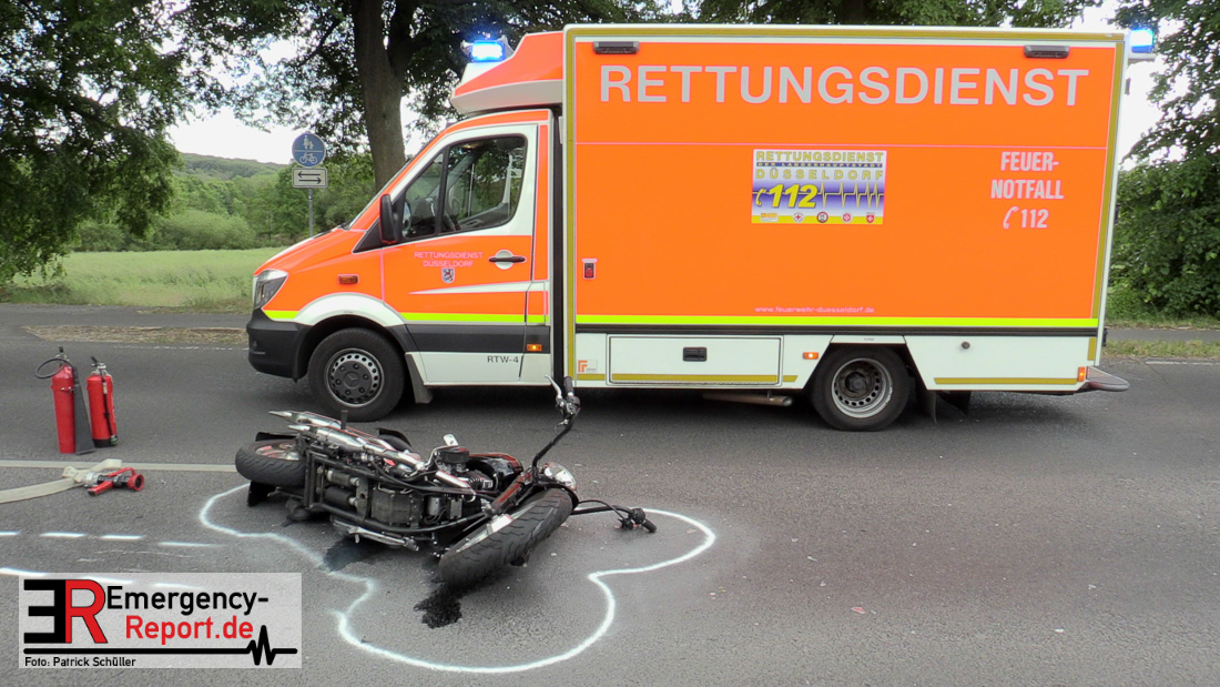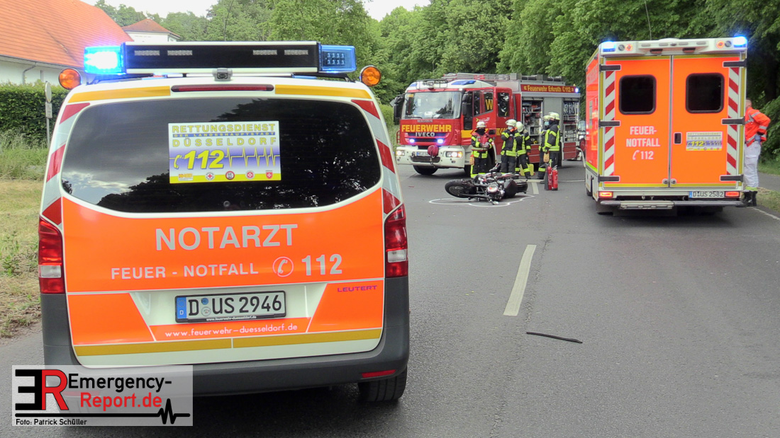 Am Samstag, den 23.05.2020, gegen 17:10 Uhr, kam es in Erkrath, auf der Düsseldorfer Straße, in Höhe Haus Morp, zu einem Verkehrsunfall, bei dem ein Kradfahrer schwer verletzt wurde.