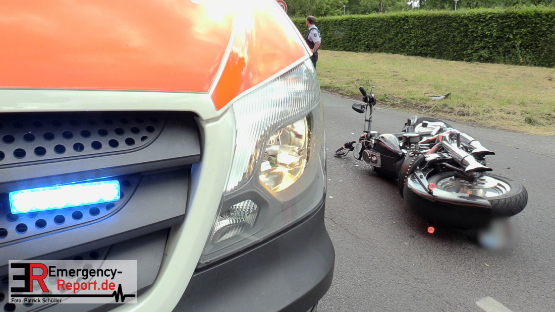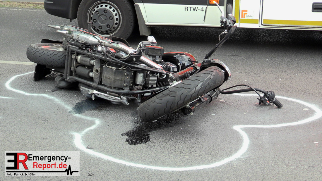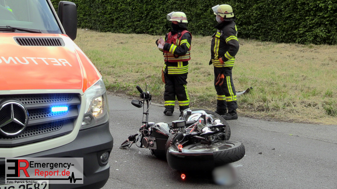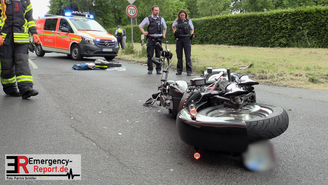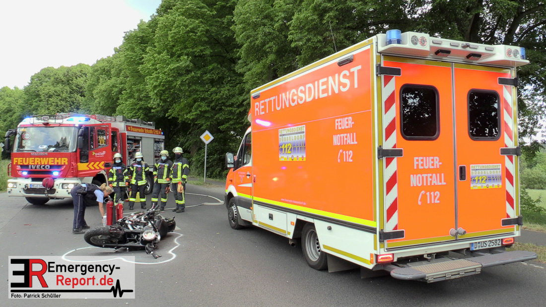 Am Samstag, den 23.05.2020, gegen 17:10 Uhr, kam es in Erkrath, auf der Düsseldorfer Straße, in Höhe Haus Morp, zu einem Verkehrsunfall, bei dem ein Kradfahrer schwer verletzt wurde.