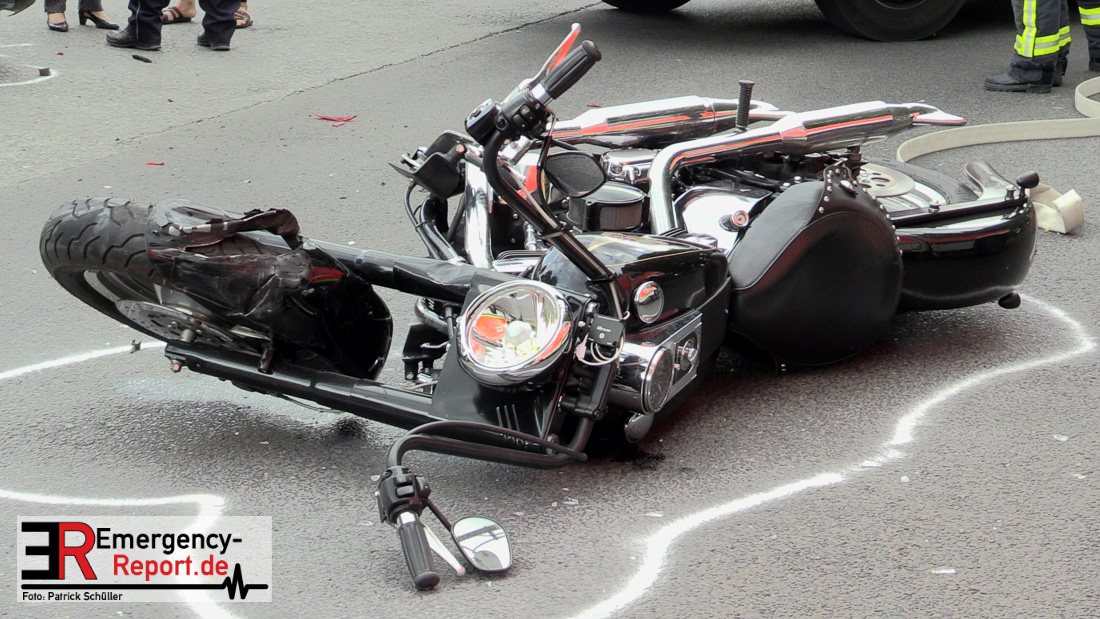 Dabei missachtete sie einen 55 jährigen Düsseldorfer, welcher mit seinem Harley-Davidson Krad die Düsseldorfer Straße in Gegenrichtung befuhr. Der Düsseldorfer leitete eine sofortige Vollbremsung ein. Trotz dieser kam es zum Zusammenstoß der beiden Fahrzeuge, bei welchem der Kradfahrer schwer verletzt wurde.