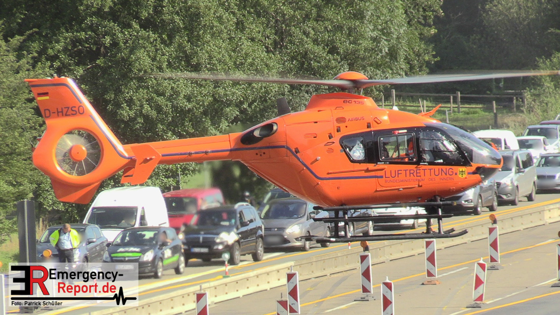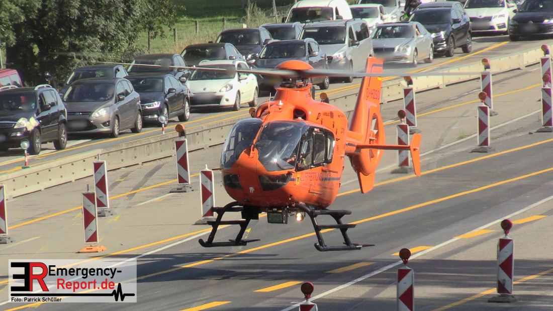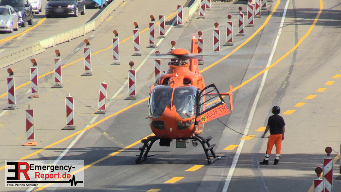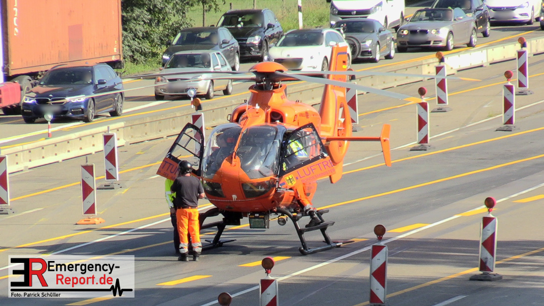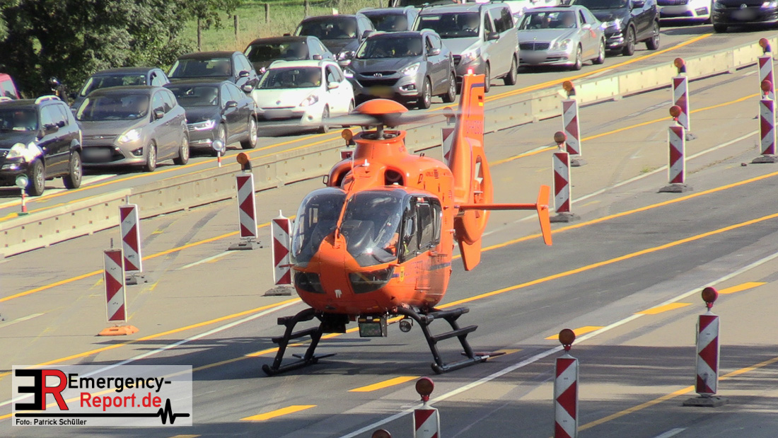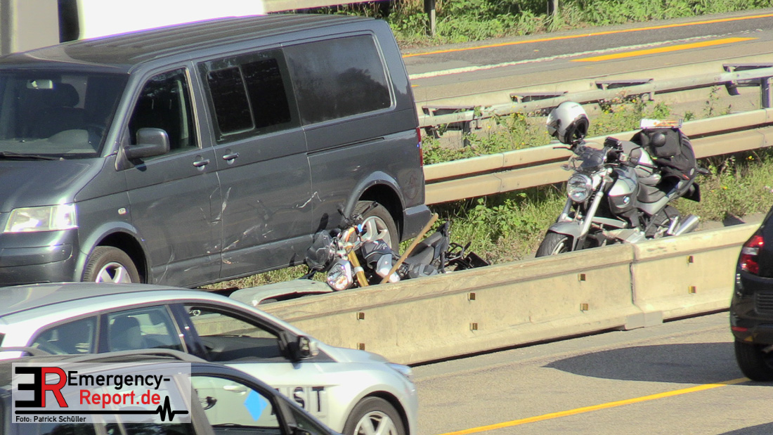 Ein niederländischer Motorradfahrer geriet mit seinem Krad zwischen einem Fahrzeug mit Anhänger und der baustellenbedingten Mittelstreifenbegrenzung und wurde mehrere Meter mitgeschliffen. Der Kradfahrer wurde schwer verletzt aber nicht eingeklemmt. Nach der Erstversorgung vor Ort wurde er mit einem Rettungswagen in ein Krankenhaus transportiert. Durch die Feuerwehr Erkrath wurden größere Mengen Betriebsstoffe abgebunden und aufgenommen. Die Berufsfeuerwehr Solingen musste nicht mehr tätig werden.