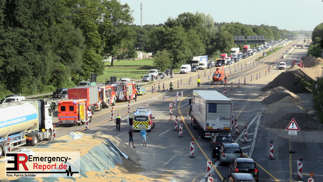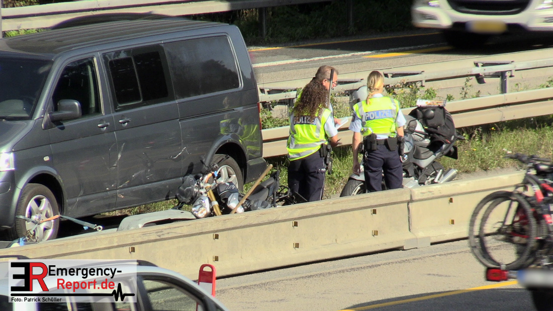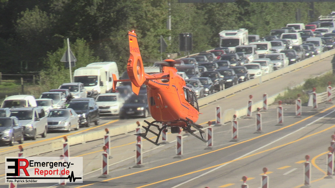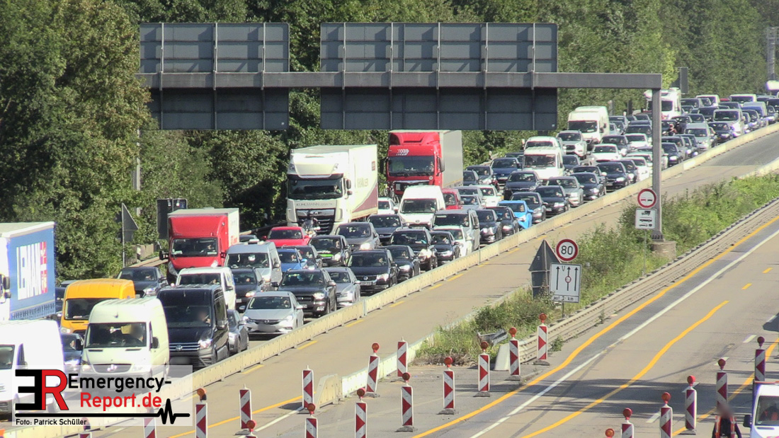 Aus ungeklärter Ursache erfasste gestern ein Lkw-Gespann, bei Hilden auf der A3 in Richtung Oberhausen, einen Motorradfahrer und schleifte diesen mehrere Meter mit sich. Der 72-jährige Motorradfahrer erlitt schwere Verletzungen. Der 72-Jährige aus Hengelo in den Niederlanden und ein Zeuge fuhren mit ihren Motorrädern hintereinander auf dem linken von drei Fahrstreifen der A3 in Höhe des Autobahnkreuzes Hilden in Richtung Oberhausen. Der Fahrer eines Transporters mit Hänger, ein 80-Jähriger aus Emmen in den Niederlanden, fuhr zunächst auf dem mittleren Fahrstreifen. Beim Fahrstreifenwechsel auf den linken Fahrstreifen übersah er das neben ihm fahrende Zweirad und stieß mit der linken Seite seines Anhängers gegen das Motorrad des 72-Jährigen. Der Kradfahrer geriet hierdurch nach rechts in eine Schräglage und wurde zwischen Anhänger und der Stahlleitwand eingeklemmt und mehrere Meter mitgeschleift. Der 72-Jährige wurde mit einem Rettungswagen zur stationären Behandlung in ein Krankenhaus gebracht Ein Rettungshubschrauber war zunächst auch an der Unfallörtlichkeit eingesetzt. Der Verkehr staute sich zeitweilig bis auf fünf Kilometer hinter der Unfallstelle zurück.