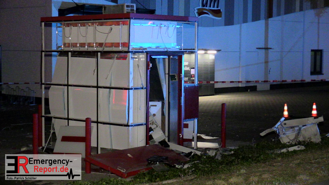 Beim Eintreffen erster Einsatzkräfte auf dem Kundenparkplatz eines Einkaufszentrums am Hugo-Zade-Weg 2, fanden diese dort einen freistehenden Geldautomaten (überdachtes SB-Terminal) vor, der offensichtlich gerade erst von einer Sprengung total zerstört worden war. In unmittelbarer Nähe wartete ein PKW Audi in dunklem Silbergrau, wahrscheinlich Typ A7, mit Viersener Kennzeichen. Beim Erkennen der sich nähernden Polizei bestiegen zwei männliche Personen eiligst dieses Fahrzeug, in dem sich offenbar eine dritte Person als Fahrer befand. Mit sehr hoher Geschwindigkeit flüchtete dieses Fahrzeug sofort in Richtung A 59. Auf der Autobahn in Fahrtrichtung Düsseldorf-Garath konnten die verfolgenden Polizeikräfte den Anschluss zu dem mit Höchstgeschwindigkeit flüchtenden Audi nicht lange halten. Die drei Tatverdächtigen im Audi entkamen trotz intensiven und überregionalen Fahndungsmaßnahmen in unbekannte weitere Richtung.