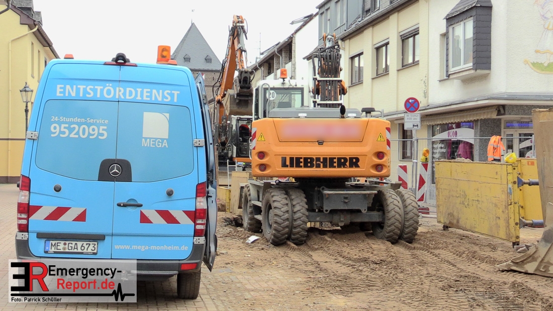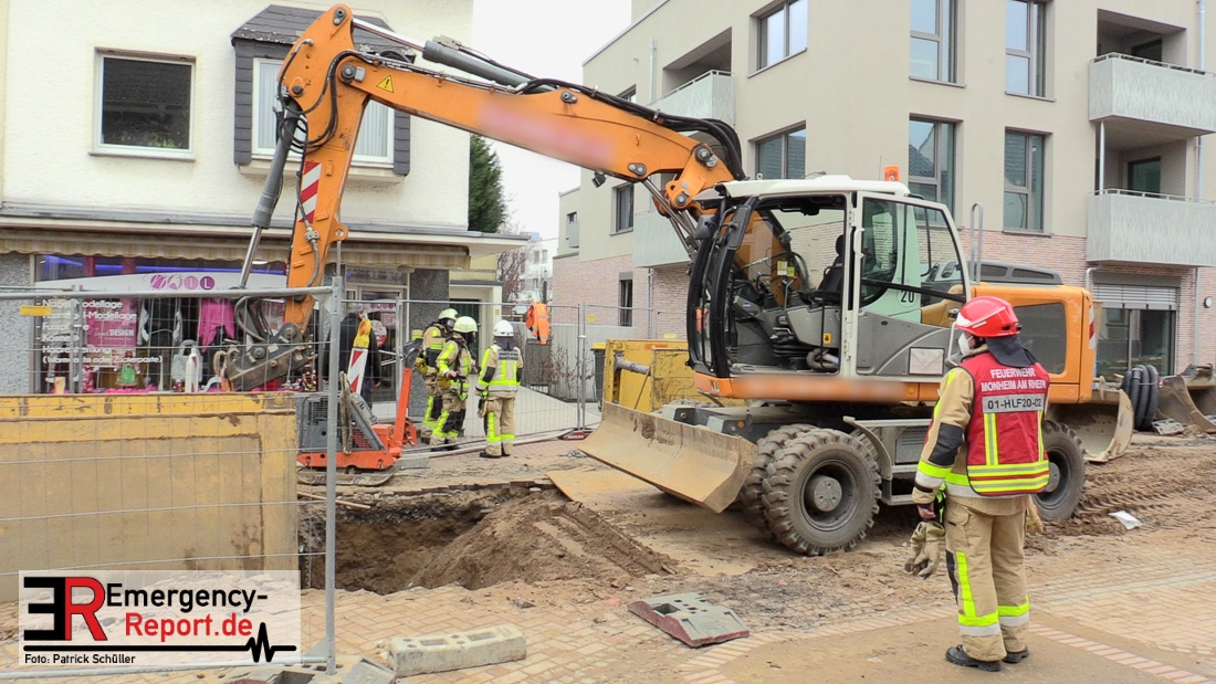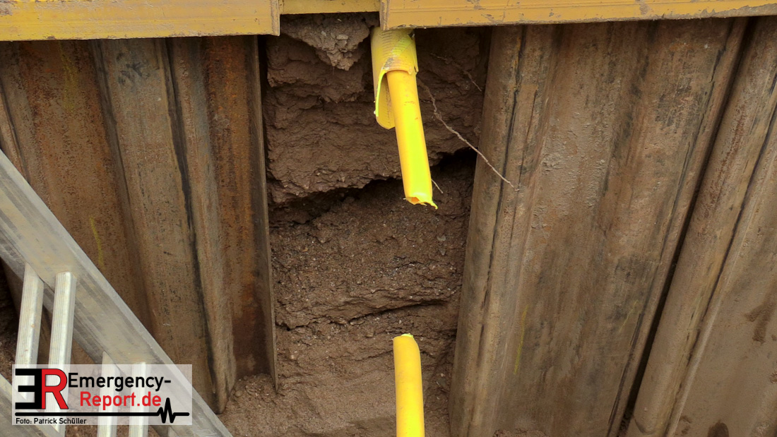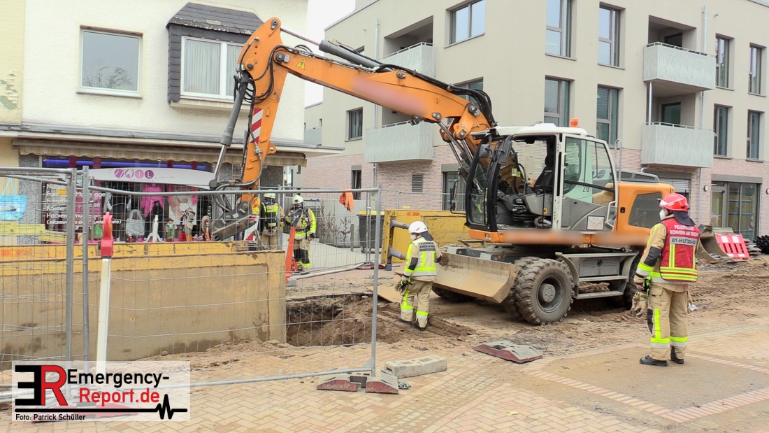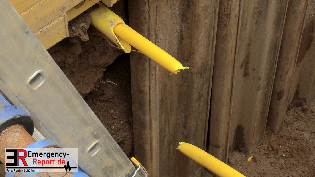 Bei Bauarbeiten wurde eine Gasleitung, mit einem Bagger, beschädigt und Gas strömte aus. Bei Eintreffen der ersten Kräfte war die Gasleitung bereits abgeschiebert.