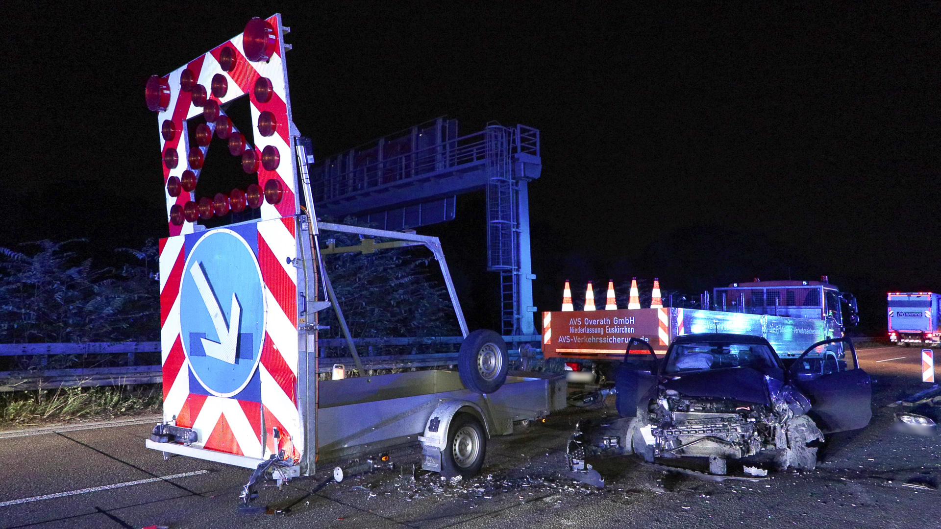 24.09.2022 – BAB 3 bei Langenfeld – PKW krachte gegen Verkehrssicherungsanhänger und LKW-Auflieger