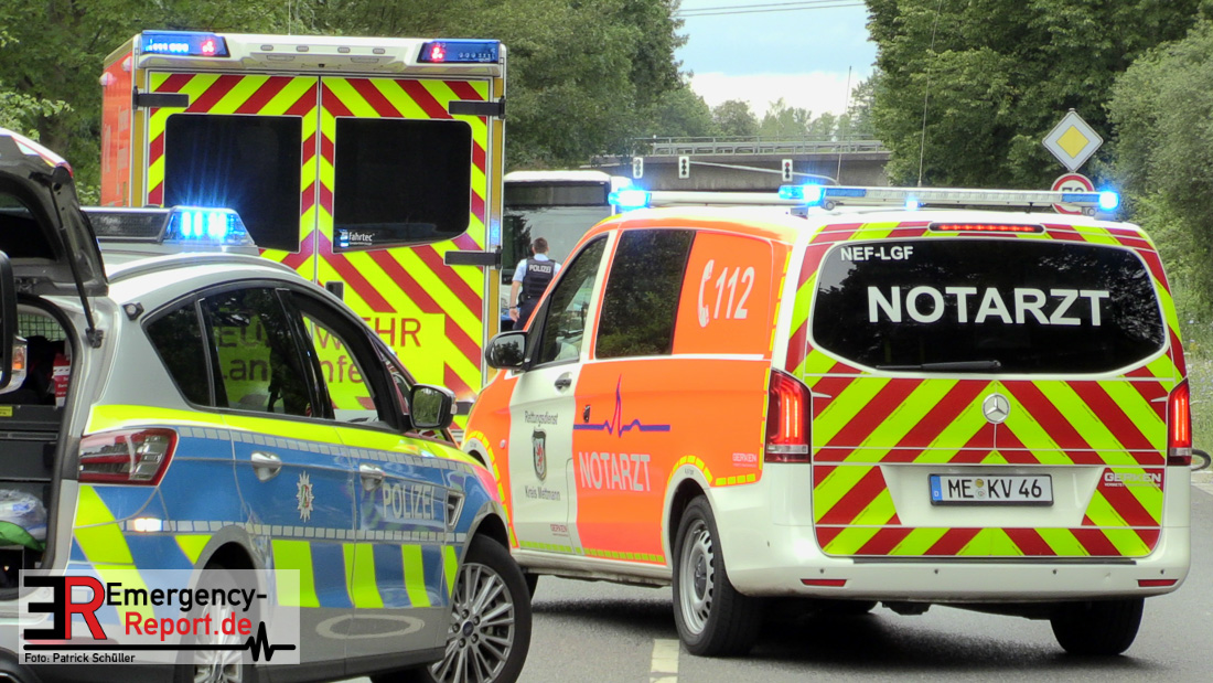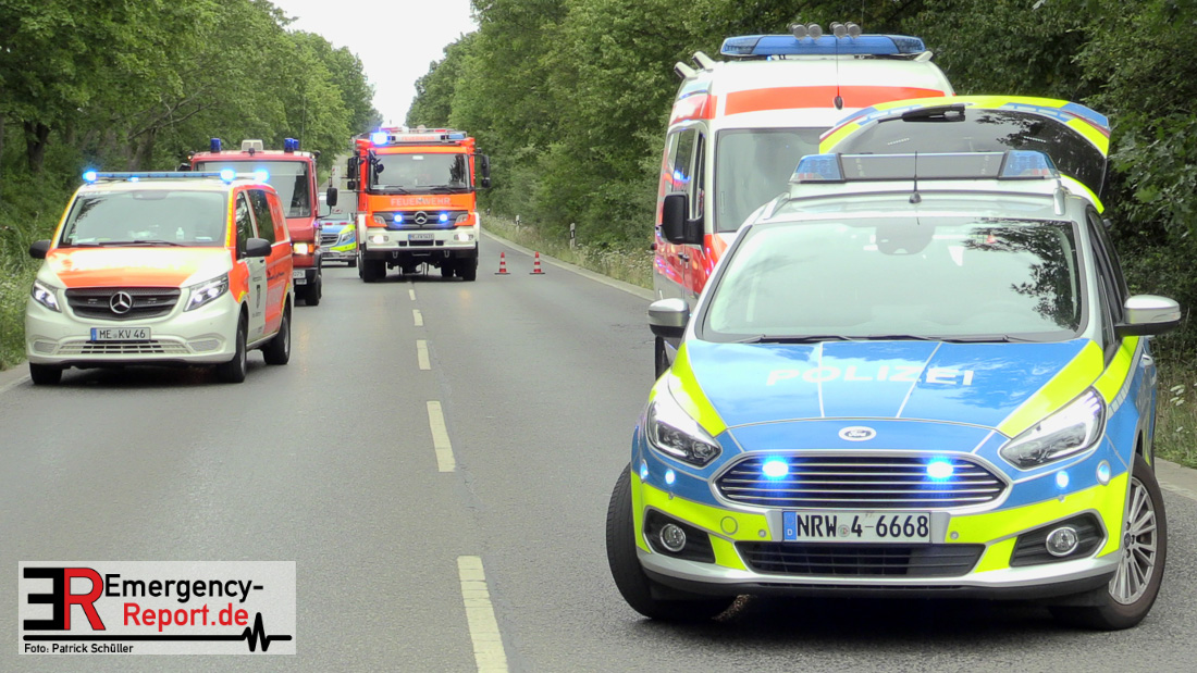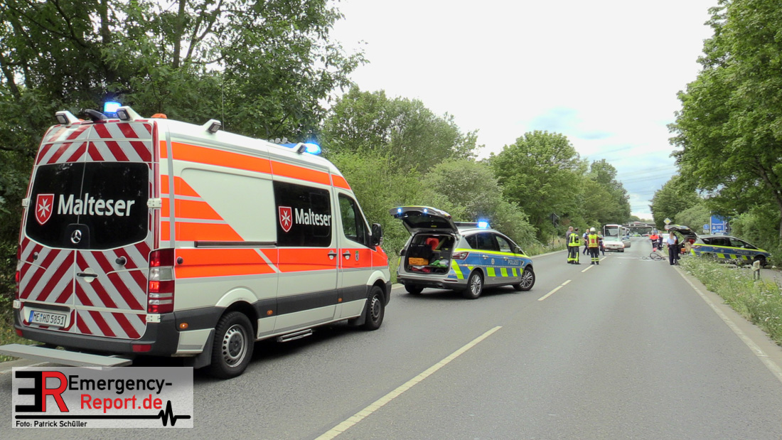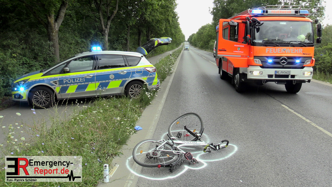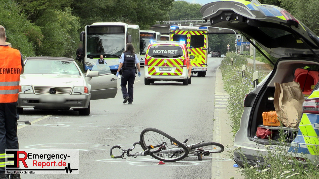 Am 25.07.2020, gegen 14:15 h, befuhr eine 71-jährige Frau aus Burscheid mit ihrem PKW Mercedes die Knipprather Straße in Fahrtrichtung Langenfeld. Zu dieser Zeit befuhr ein 83- jähriger Leverkusener mit seinem Fahrrad einen befestigten Feldweg in Richtung Knipprather Wald. Nach bisherigem Ermittlungsstand und Zeugenaussagen überquerte der 83- jährige die Kreuzung des Feldweges mit der Knipprather Straße ohne auf den fließenden Verkehr zu achten. Der Radfahrer, der keinen Helm trug, wurde von dem PKW Mercedes aufgeladen und prallte mit dem Kopf gegen die Windschutzscheibe. Die durch den Aufprall entstandenen Kopfverletzungen waren so schwer, dass er sofort mittels Rettungswagen einem Krankenhaus zugeführt werden musste. Hier erlag er leider seinen schwersten Verletzungen. Bei dem Unfall erlitten die 71-jährige Fahrzeugführerin sowie ihre 83-jährige Beifahrerin aus Monheim einen Schock und mussten ambulant medizinisch versorgt werden. Eine weitere Zeugin, die sich mit ihrem Fahrzeug hinter dem Mercedes befand, eine 52-jährige Frau aus Monheim erlitt ebenfalls einen Schock. Auch sie musste ambulant medizinisch betreut werden. Die Fahrbahn war für die Dauer der Unfallaufnahme, für ca. zwei Stunden, voll gesperrt. An den Fahrzeugen entstand Sachschaden in noch unbekannter Höhe. Sie wurden durch ein Abschleppunternehmen von der Fahrbahn entfernt und durch die Polizei zur weiteren Ermittlungszwecken sichergestellt. Die weiteren Ermittlungen übernimmt das Verkehrskommissariat Süd. Zeugen werden gebeten sich jederzeit unter der Rufnummer der Polizei Langenfeld 02104-9826310 zu melden.