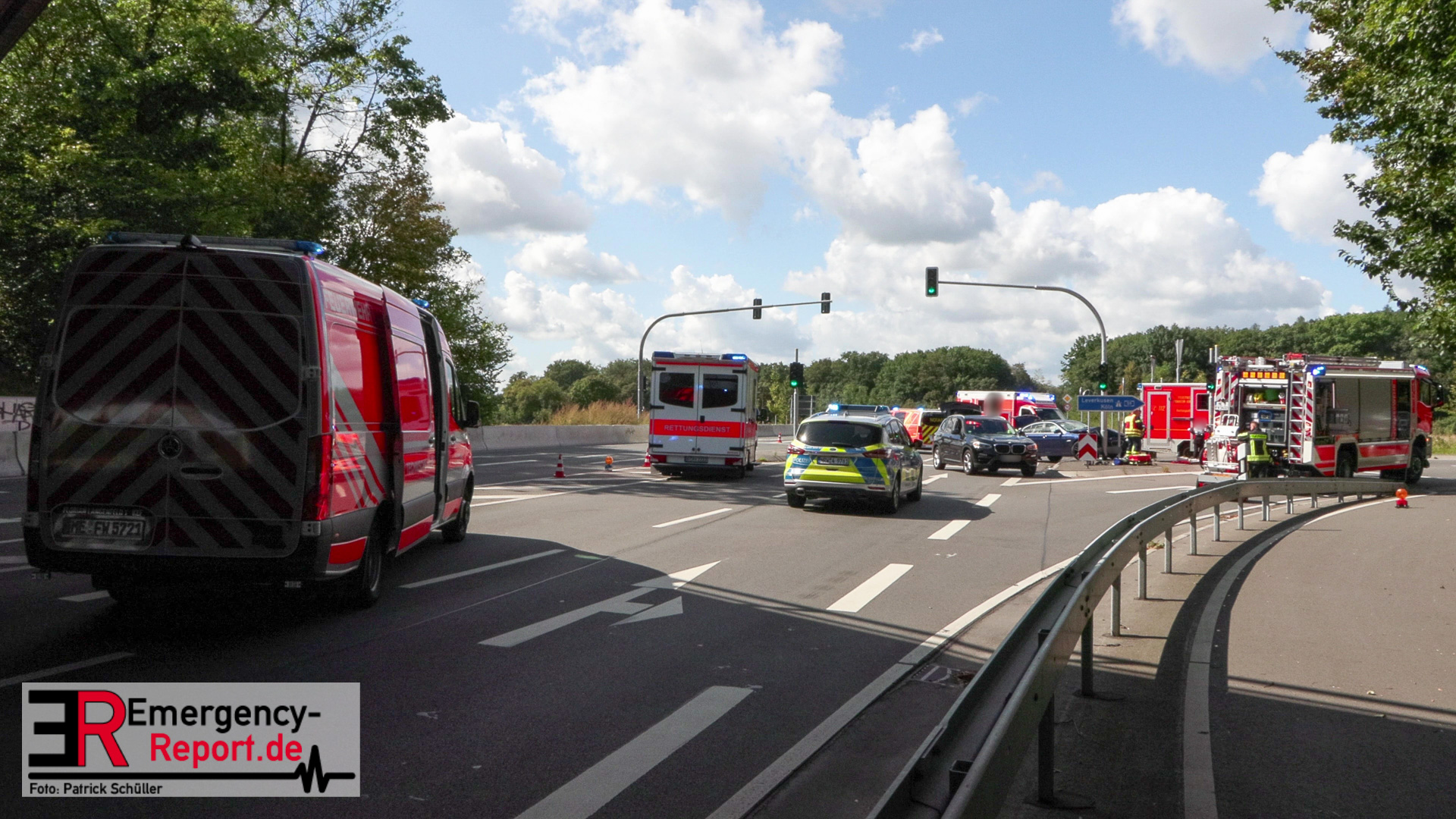 Der 37 Jahre alte Kölner war in Begleitung seiner beiden Insassen um etwa 11:20 Uhr mit seinem BMW 530D auf der Knipprather Straße in Richtung Langenfeld unterwegs. In Höhe der Auffahrt zur A59 beabsichtigte er auf die Autobahn einzubiegen und verlor mutmaßlich aufgrund der erhöhten Geschwindigkeit die Kontrolle über das Auto. Er kam nach rechts von der Fahrbahn ab und kollidierte mit einer Ampel.
