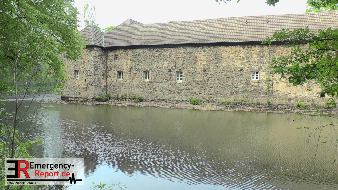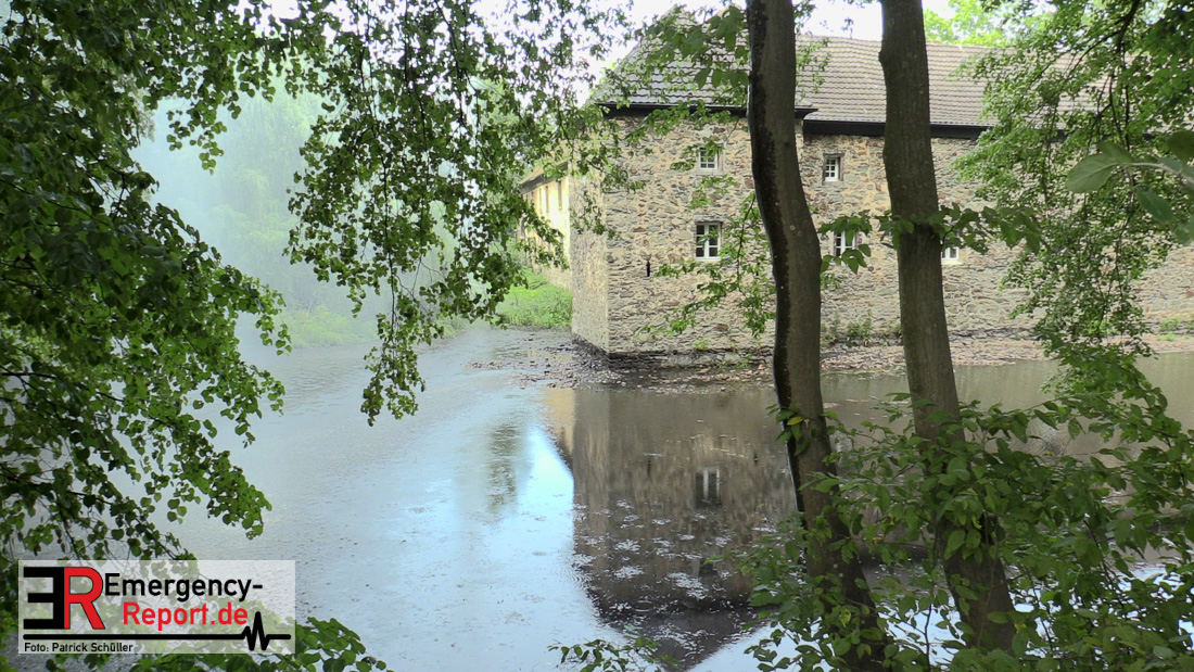 Die Löschgruppe Wiescheid der Freiwilligen Feuerwehr Langenfeld war vom Nachmittag des 26.06.2020 bis zum späten Abend an der Wasserburg im Einsatz. Aufgrund der anhaltenden Trockenheit befand sich im Wassergraben um die Burg nur wenig Wasser. Um ein Fischsterben zu verhindern wurde der Graben durch die Feuerwehr aufgefüllt.