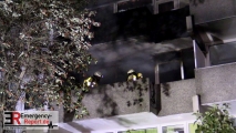 Feuerwehr und Polizei hatten den Einsatzort schon mehr als drei Stunden verlassen, als sie am Mittwochmorgen, um 03.55 Uhr, von einer neuen Brandmeldung an den gleichen Ort zurückgerufen wurden. Bereits auf der Anfahrt erster Einsatzkräfte war eine deutliche Rauchentwicklung wahrnehmbar. Wie sich bei Eintreffen der Einsatzkräfte herausstellte, stand im 2. Obergeschoss die Wohnung vom Vorabend in Vollbrand und das Feuer drohte schon auf das dritte Obergeschoss überzugreifen. Mit einem professionellen Innen- und Außenangriff konnte die Feuerwehr den Brand schnell unter Kontrolle bringen, eine weitere Ausbreitung des Feuers auf andere Wohnungen verhindern und das Feuer bis gegen 05.30 Uhr auch vollkommen löschen. Anschließend wurden Lüftungsmaßnahmen im gesamten Gebäude durchgeführt und viele Bewohner, die sich nach Brandentdeckung selbständig, rechtzeitig und unverletzt ins Freie gerettet hatten, konnten wieder in ihre Wohnungen zurückkehren. Mieter von zwei Wohnungen unmittelbar über und unter der Brandwohnungen konnten aber vorerst nicht in ihre Wohnungen zurückkehren und kamen ersatzweise bei Freunden und Bekannten unter.