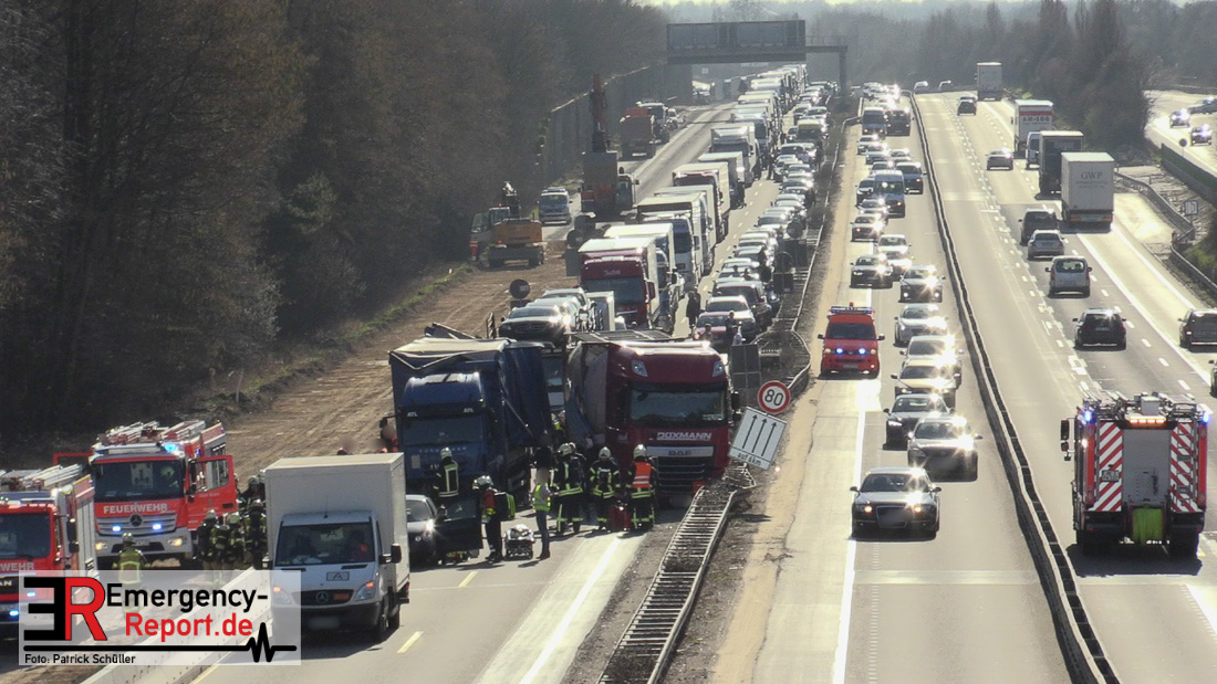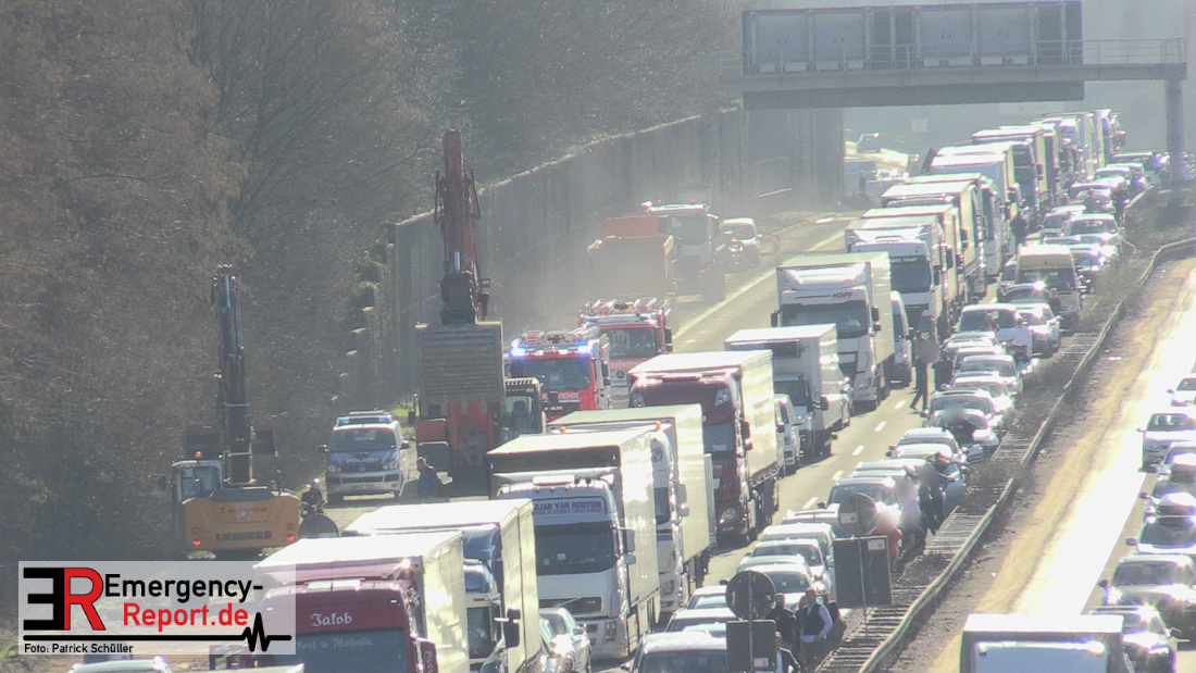 Nach einem Verkehrsunfall auf der A 3 mit einem Schwerverletzten in Fahrtrichtung Oberhausen zwischen Raststätte Ohligser Heide und dem AK Hilden unter Beteiligung von zwei Lkw kommt es zu einer Vollsperrung. Die Ladung eines beteiligten Gefahrguttransporters wird derzeit gesichert. Es besteht keine Gefahr durch austretende Stoffe. Durch den Unfall kommt es zu einem Stau ab Leverkusen-Opladen.
