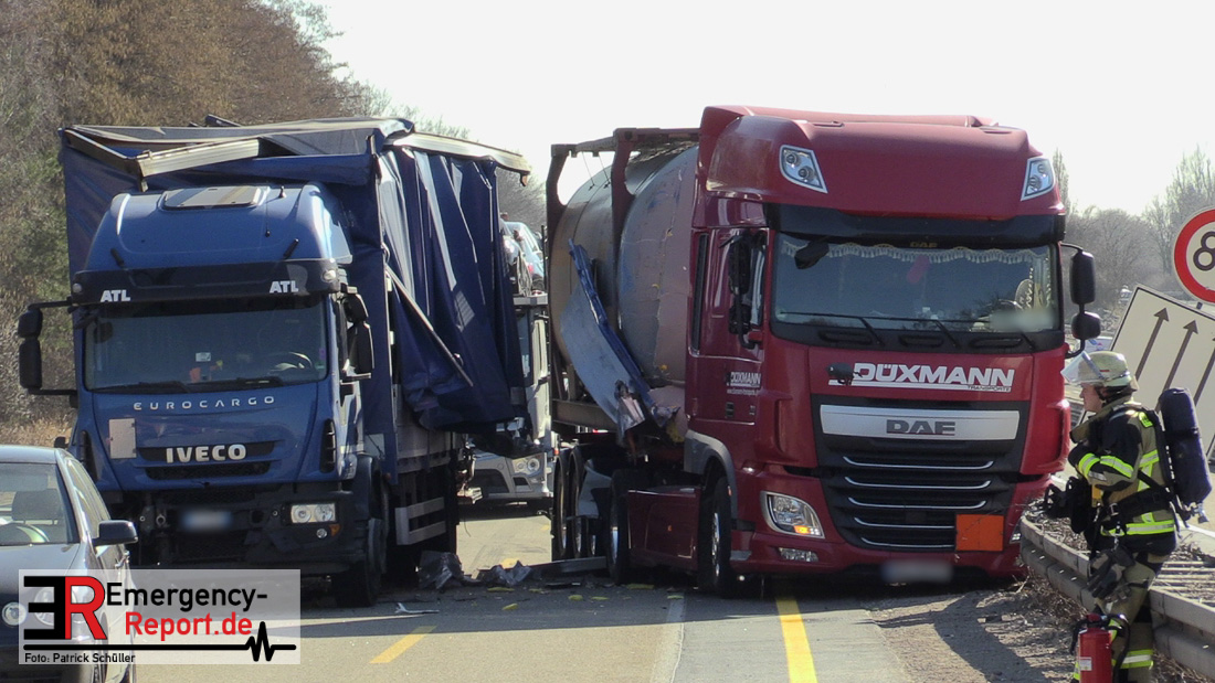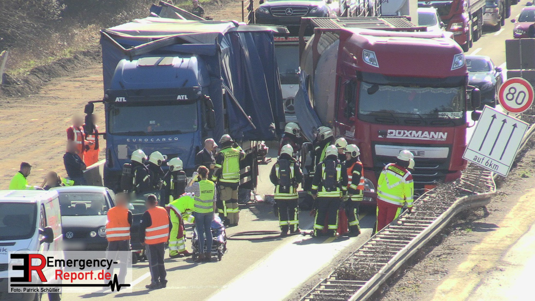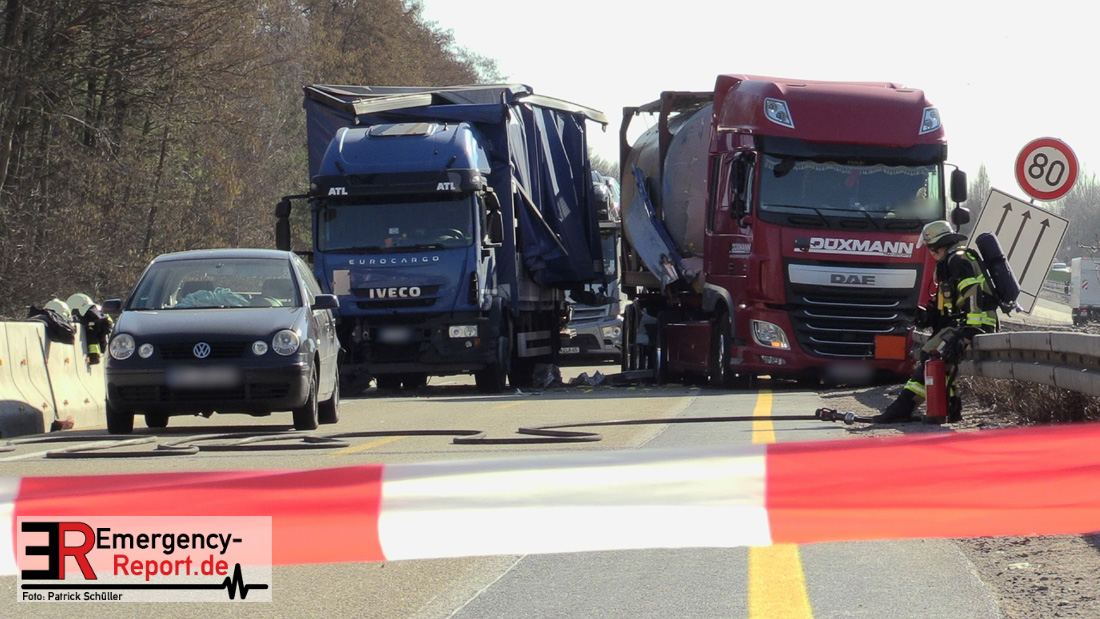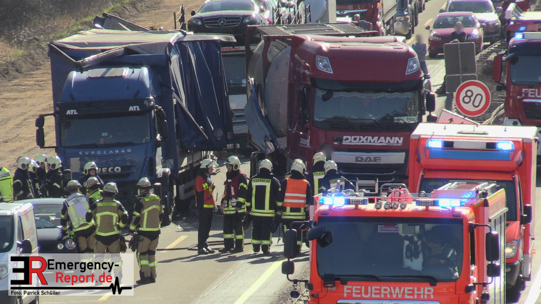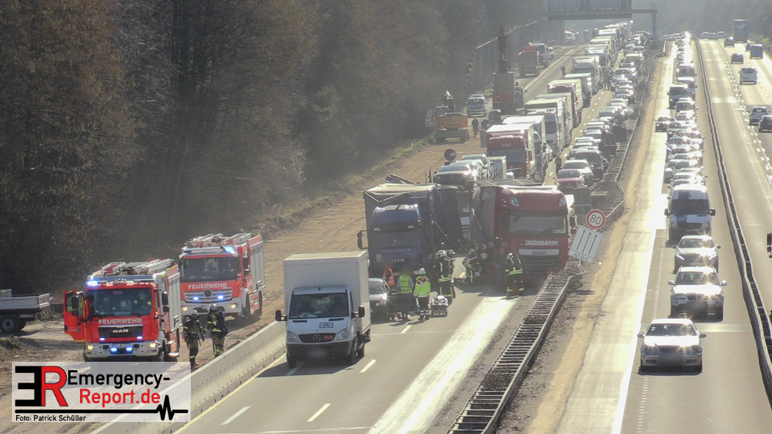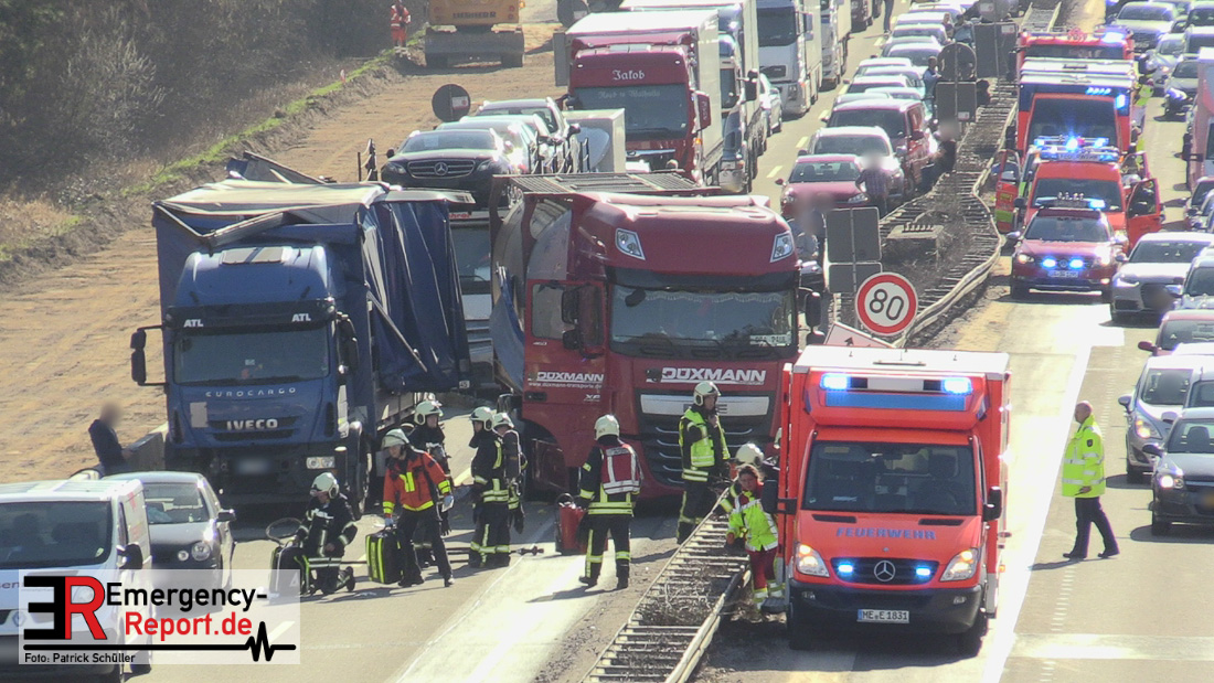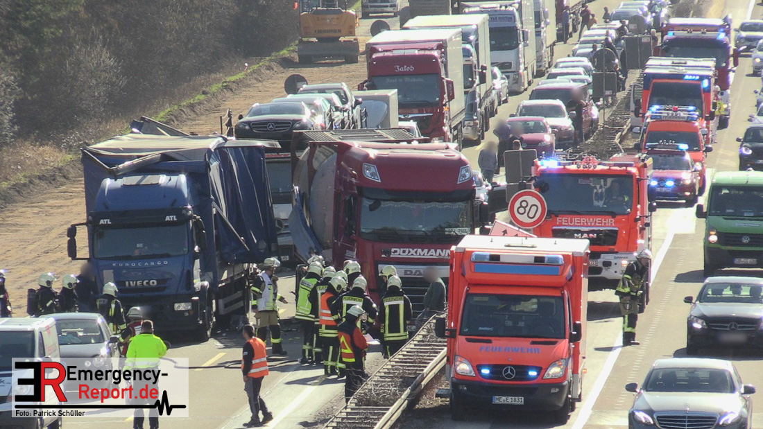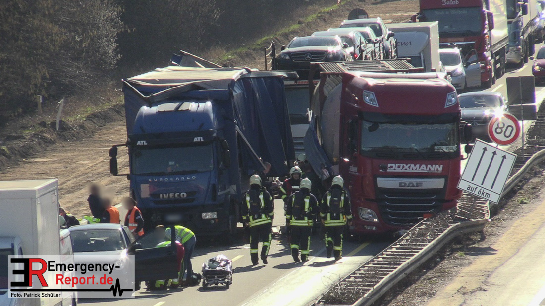 Nach derzeitigem Erkenntnisstand befuhr ein Lkw-Fahrer mit seinem 16-Tonner aus Italien die A 3 und fuhr im Baustellenbereich aus bislang ungeklärter Ursache auf einen Pkw (VW Polo) auf. Der Fahrer des Pkw wurde dadurch schwer verletzt. Lebensgefahr besteht nicht. Der Pkw wurde durch den Aufprall auf einen Kleintransporter geschoben, wobei leichter Sachschaden entstand. Ein nachfolgender Lkw mit Gefahrgut versuchte noch auszuweichen, kollidierte aber mit dem verunfallten Lkw. Die Aufräum- und Bergungsarbeiten dauern möglicherweise bis in die Abendstunden an.