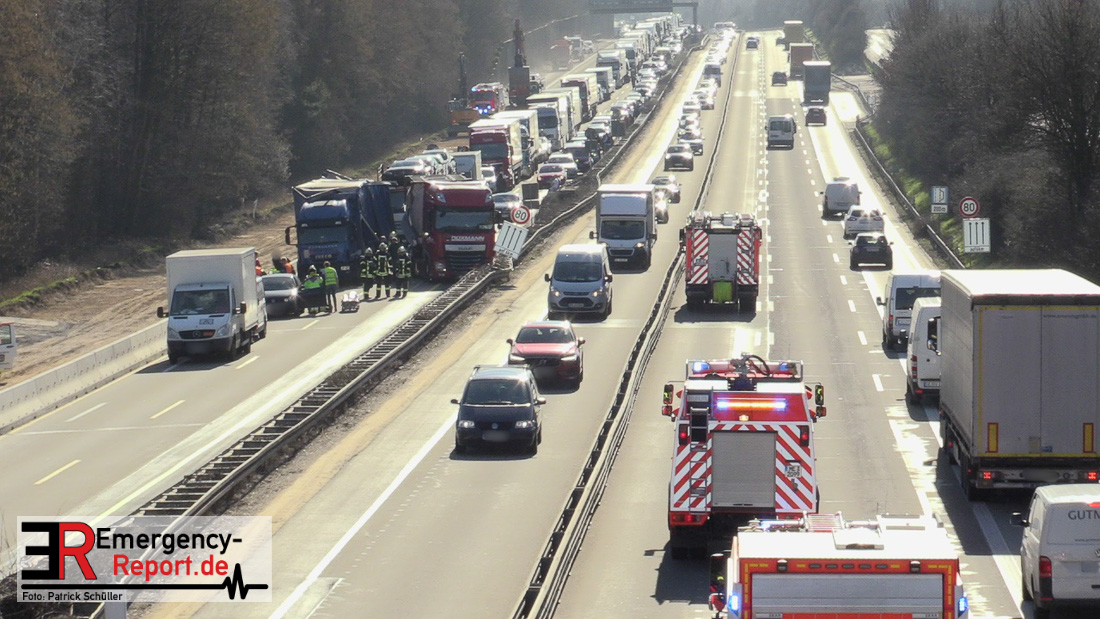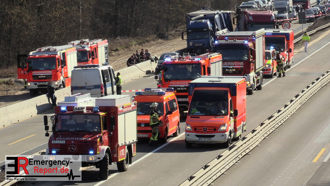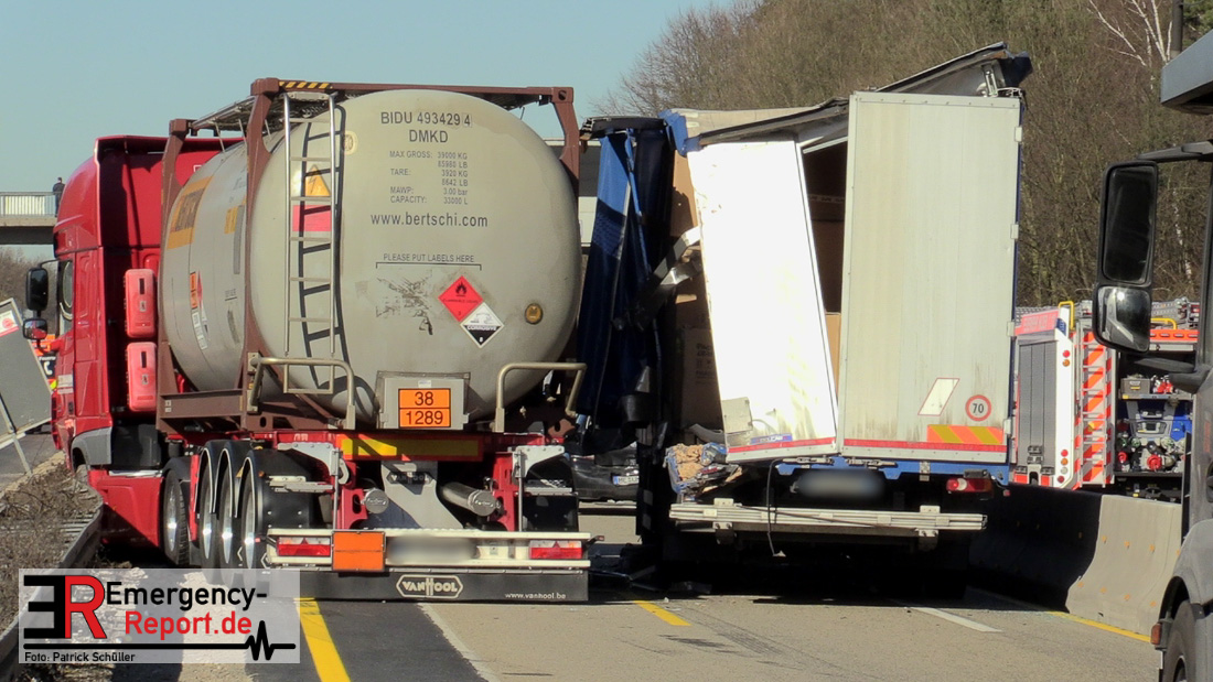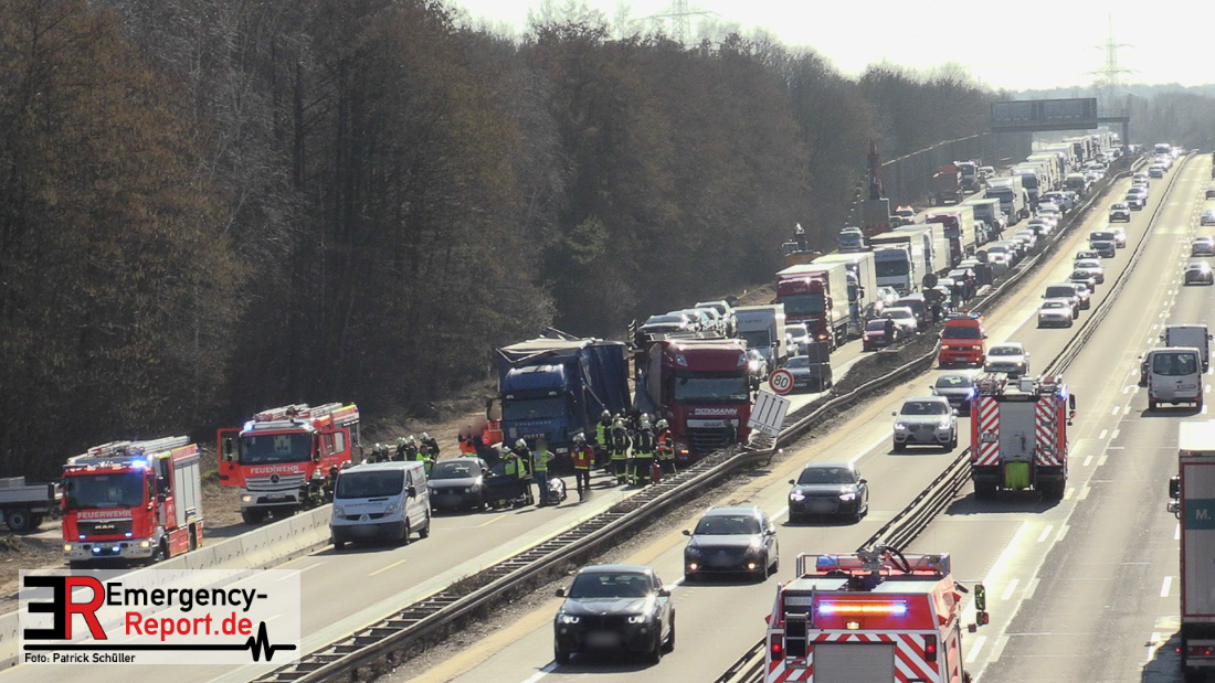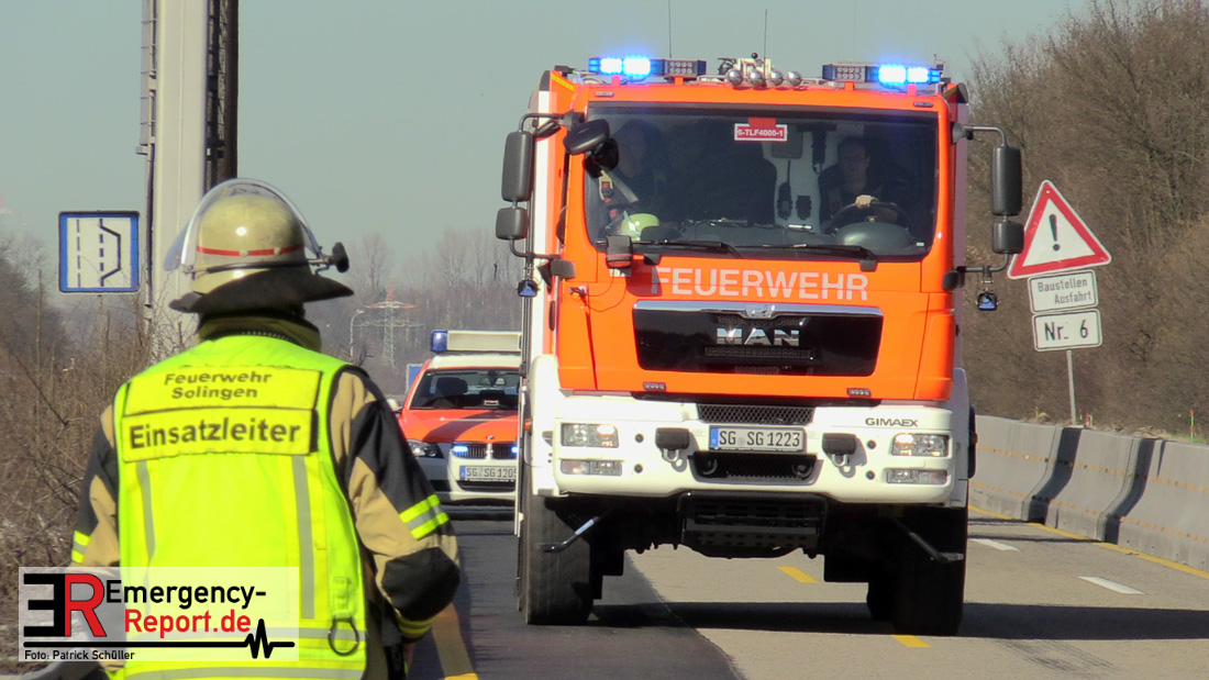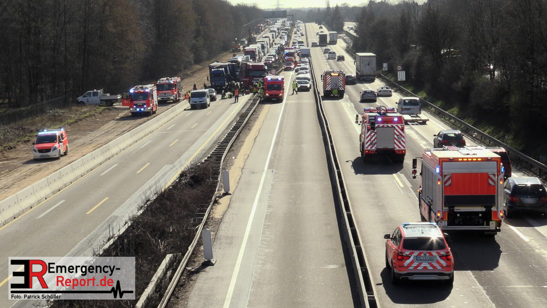 Am Mittag kam es gegen 11:25 Uhr auf der A3 in Fahrtrichtung Oberhausen, kurz vor dem Autobahnkreuz Hilden, zu einem schweren LKW-Unfall. Bis in die Abendstunden kam es durch diesen Unfall sowohl auf der A3 in Fahrtrichtung Oberhausen, als auch auf den umliegenden Ausweichstrecken zu größeren Verkehrsbehinderungen. Auch am späten Abend (Stand 21:45 Uhr) befand sich die Feuerwehr Solingen, unterstützt durch Kräfte der Werkfeuerwehr aus dem Chemiepark Marl, noch auf der Autobahn im Einsatz.