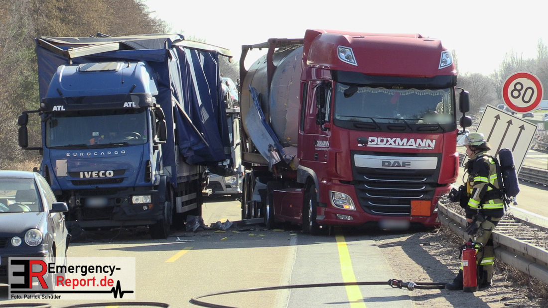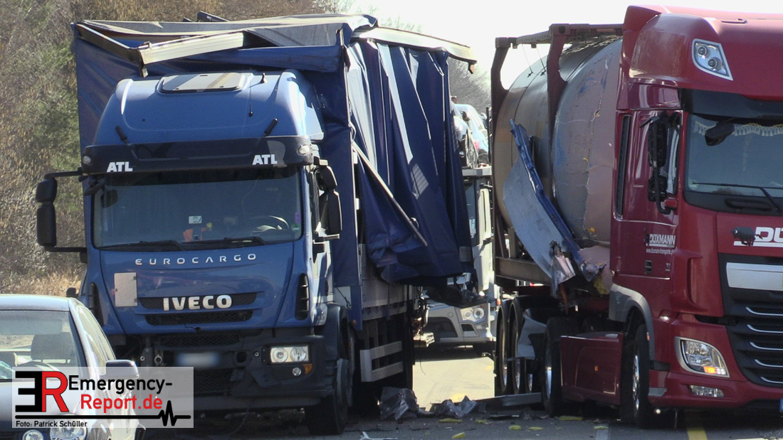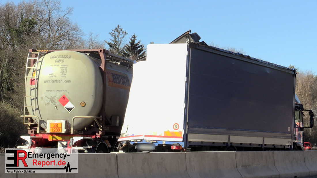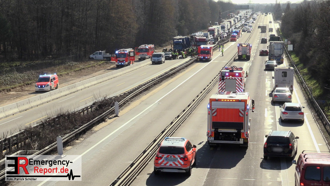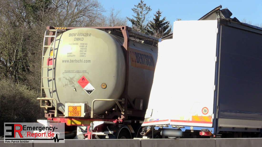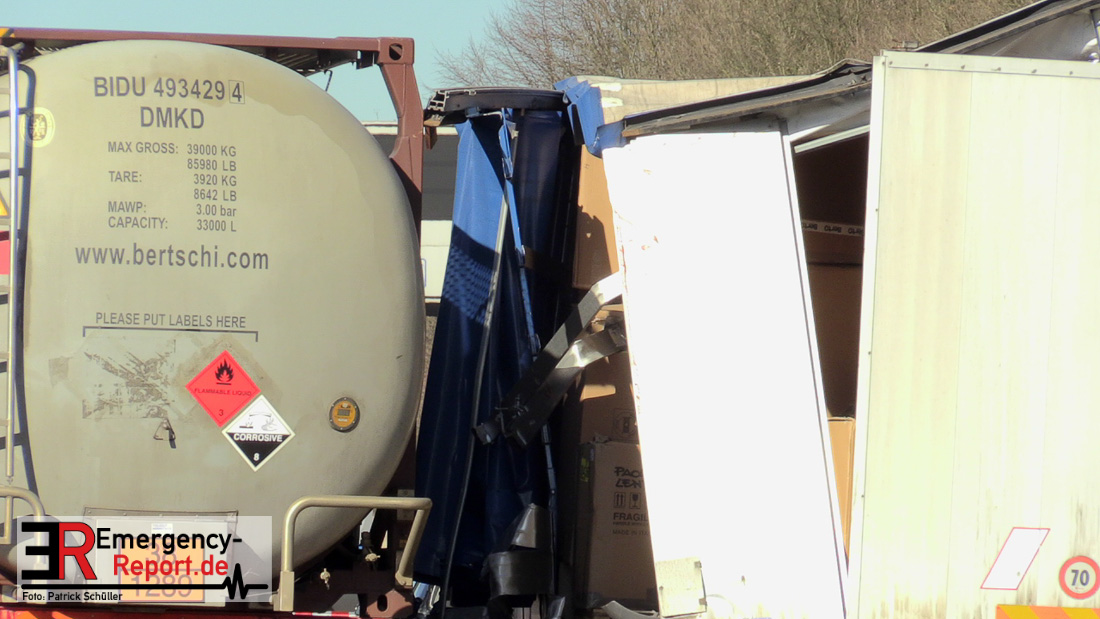 Am Mittag kam es gegen 11:25 Uhr auf der A3 in Fahrtrichtung Oberhausen, kurz vor dem Autobahnkreuz Hilden, zu einem schweren LKW-Unfall. Bis in die Abendstunden kam es durch diesen Unfall sowohl auf der A3 in Fahrtrichtung Oberhausen, als auch auf den umliegenden Ausweichstrecken zu größeren Verkehrsbehinderungen. Auch am späten Abend (Stand 21:45 Uhr) befand sich die Feuerwehr Solingen, unterstützt durch Kräfte der Werkfeuerwehr aus dem Chemiepark Marl, noch auf der Autobahn im Einsatz.