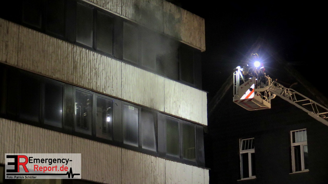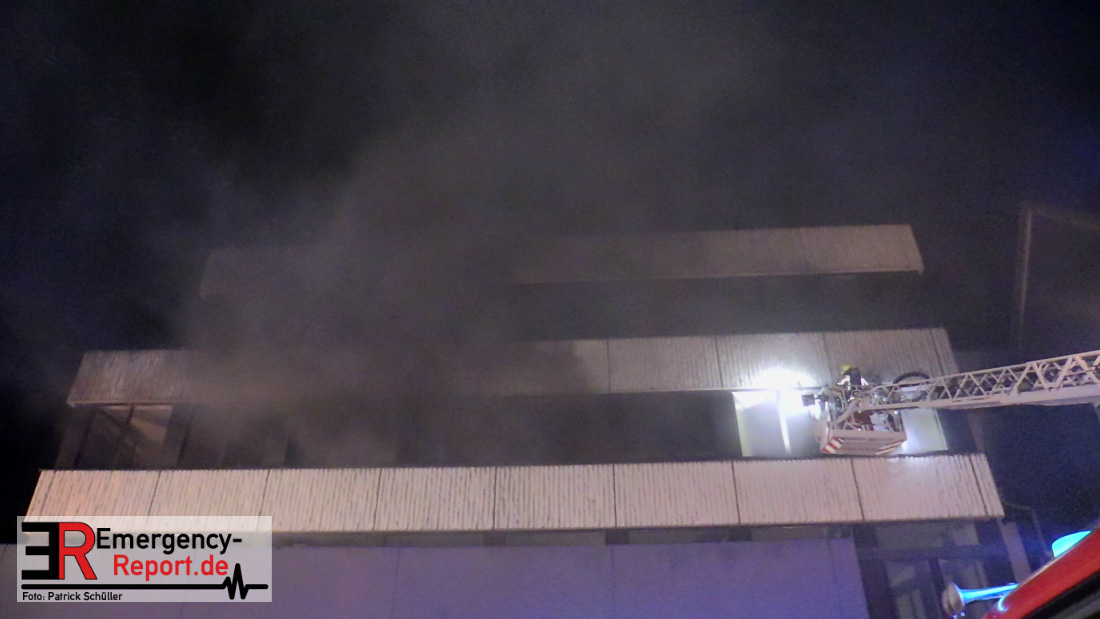 Um Mitternacht (27.03.2022) brannte es in einem leerstehenden Bürogebäude an der Mozartstraße. Da noch Menschen innerhalb des Firmenkomplexes vermutet wurden, heulten die Sirenen. Die oberen Etagen waren verraucht und Feuerschein zu sehen. Verletzt wurde niemand.