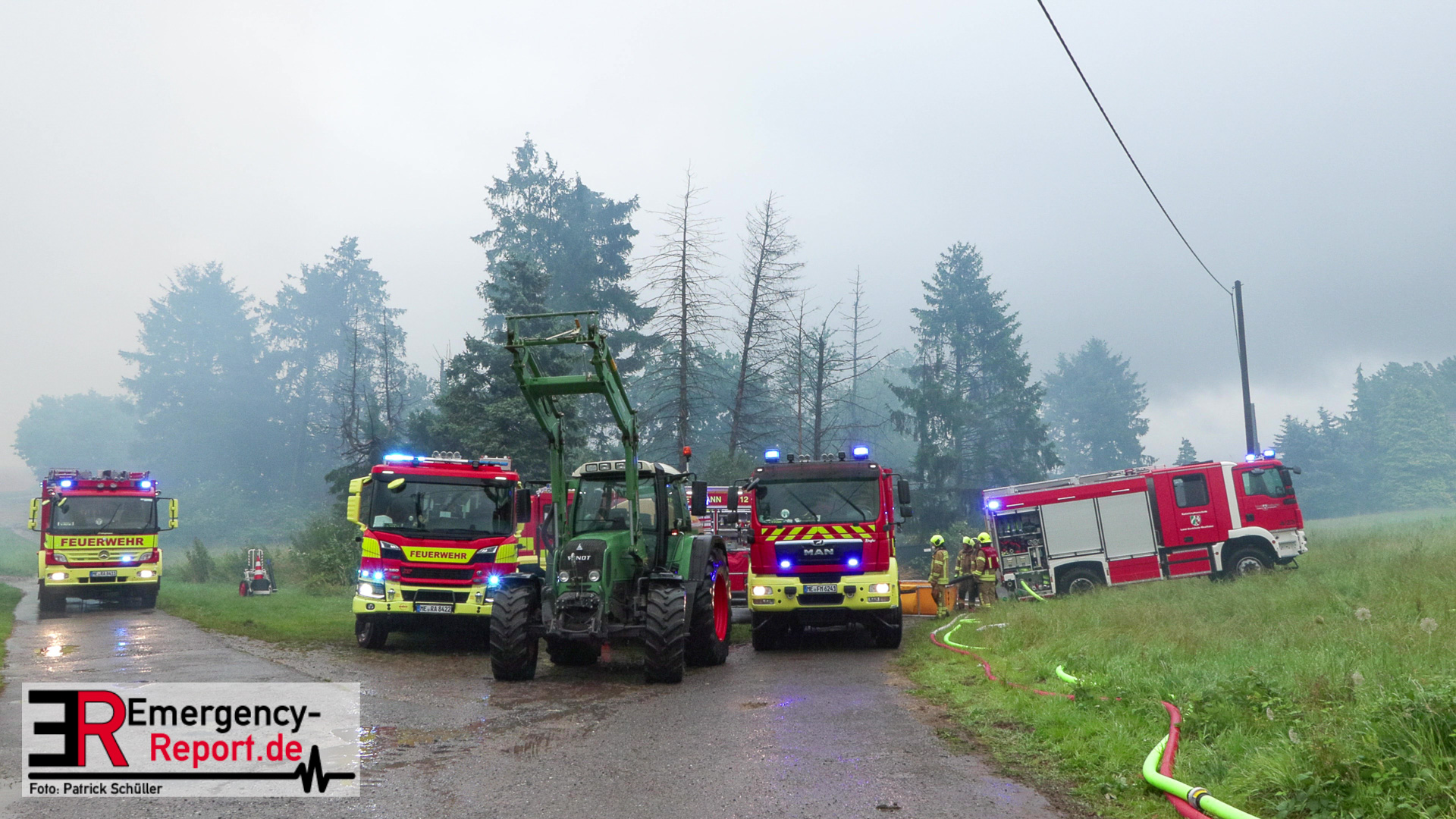 Auf der Anfahrt war bereits eine starke Rauchentwicklung sichtbar. Bei Eintreffen erster Einheiten brannte ein ca. 1000 m² großer Lagerhallenkomplex in umittelbarer Nähe eines Wohnhauses in voller Ausdehnung. Alle Bewohner hatten zu diesem Zeitpunkt das Gebäude bereits unverletzt verlassen.