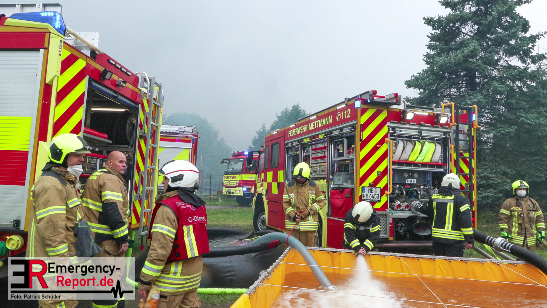 Aufgrund des vorgefundenen Ausmaßes lies der Einsatzleiter unverzüglich Vollalarm über Sirene für die Feuerwehr Mettmann ausgelösen sowie im weiteren Verlauf des Einsatzes Löscheinheiten aus Erkrath, Hilden, Langenfeld, Monheim, Ratingen, Velbert und Wülfrath zur überörtlichen Hilfeleistung anfordern.