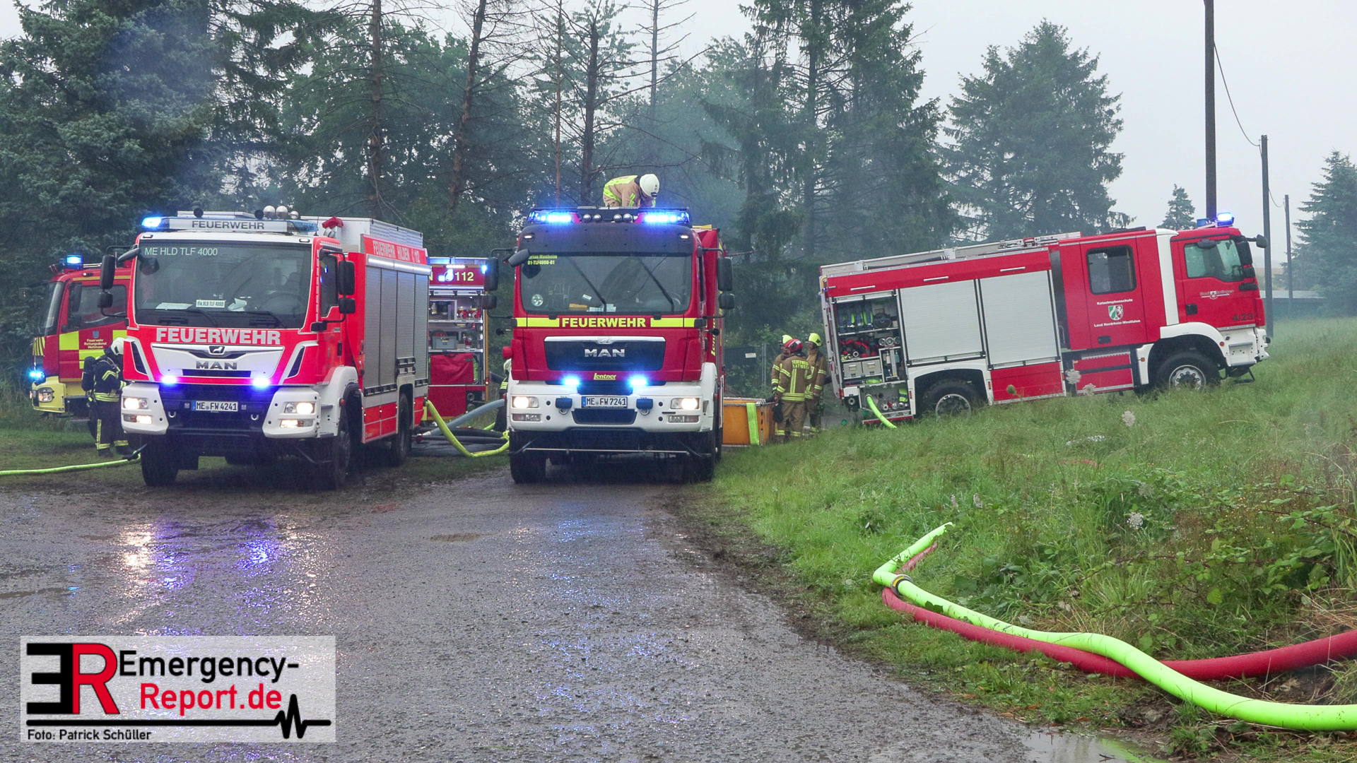 Aufgrund der örtlichen Lage der Einsatzstelle im Außenbereich Mettmanns an der schmalen Landstraße L156, gestaltete sich der Aufbau einer ausreichenden Wasserversorgung äußerst aufwendig. So musste aus dem Bereich Löffelbeckweg/Eschenkämpchenweg eine etwa 800 m lange doppelte Schlauchleitung verlegt werden. Von Ratinger Seite aus wurde ein Pendelverkehr mit mehreren Tanklöschfahrzeugen eingerichtet, um den Löschwasserbedarf zu decken.