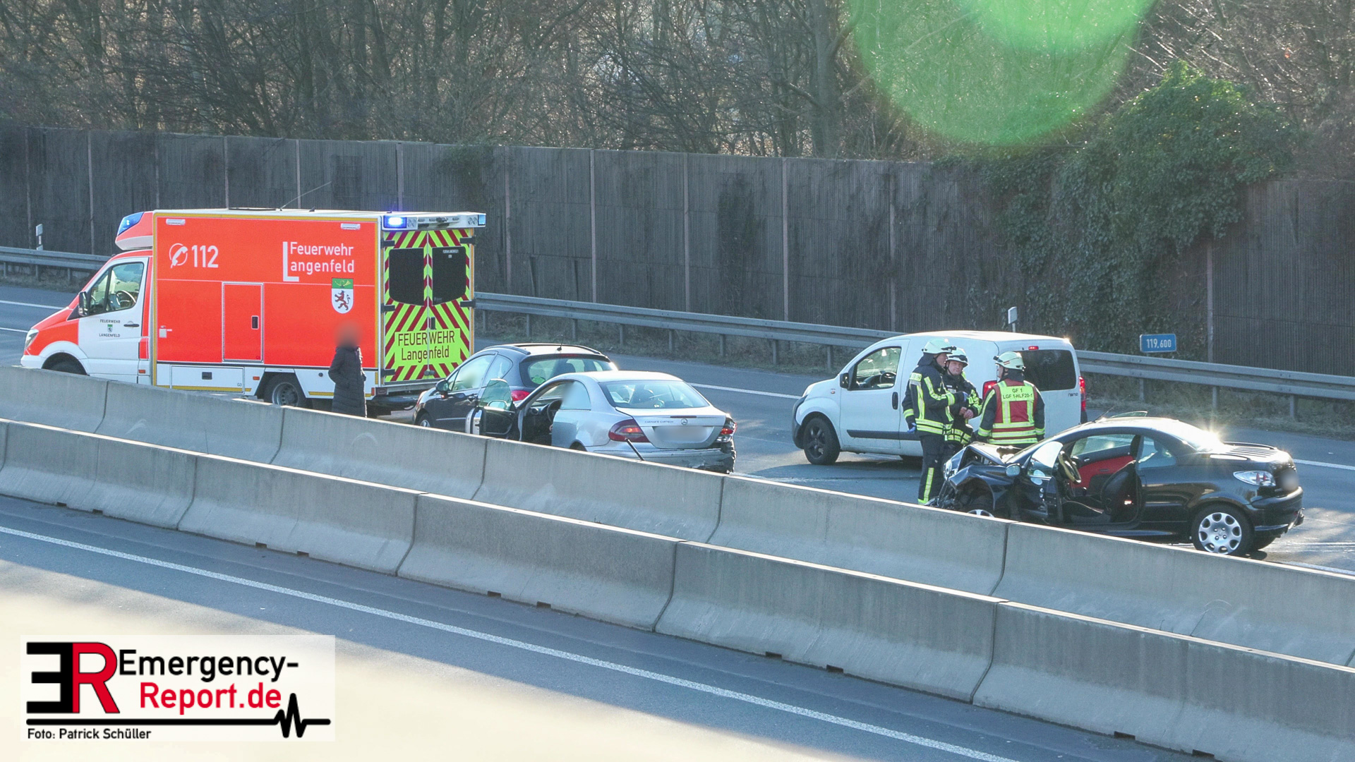 Die Feuerwehr Langenfeld wurde am Nachmittag des 28.01.2024 zu einem Verkehrsunfall, auf die A3 in Fahrtrichtung Köln, alarmiert. Bei Eintreffen der ersten Einsatzkräfte stellte sich heraus, dass es, in Höhe der Bergischen Landstraße, zu einem Auffahrunfall