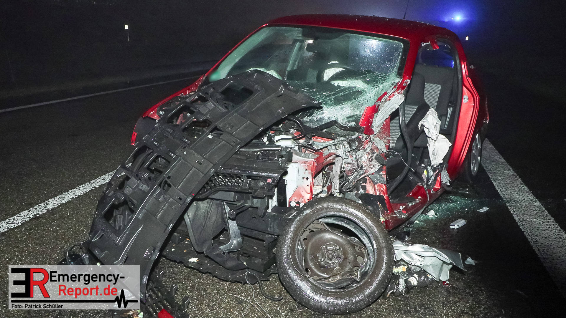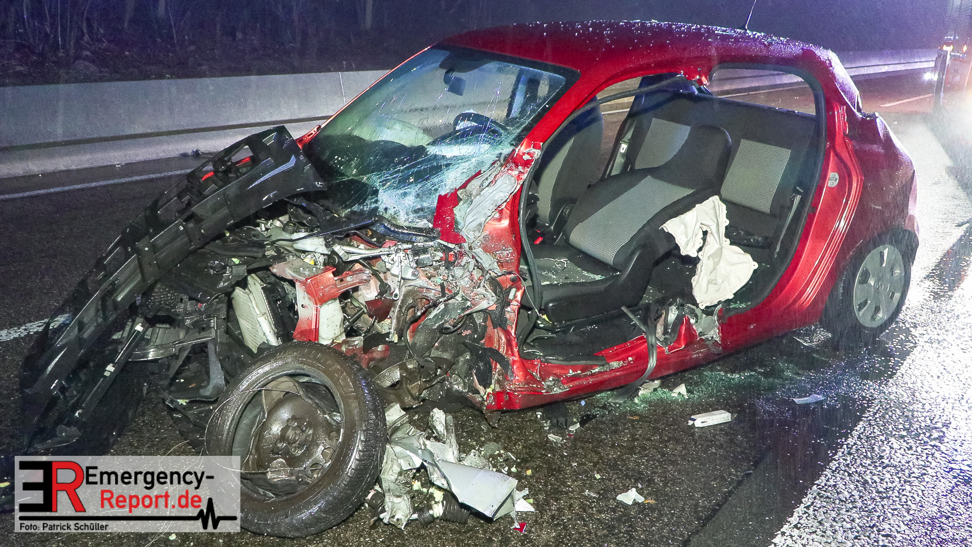 Beim Eintreffen der ersten Fahrzeuge bestätigte sich die Lage: Ein Frontalunfall zwischen zwei Pkw, vermutlich ausgelöst durch einen Falschfahrer.